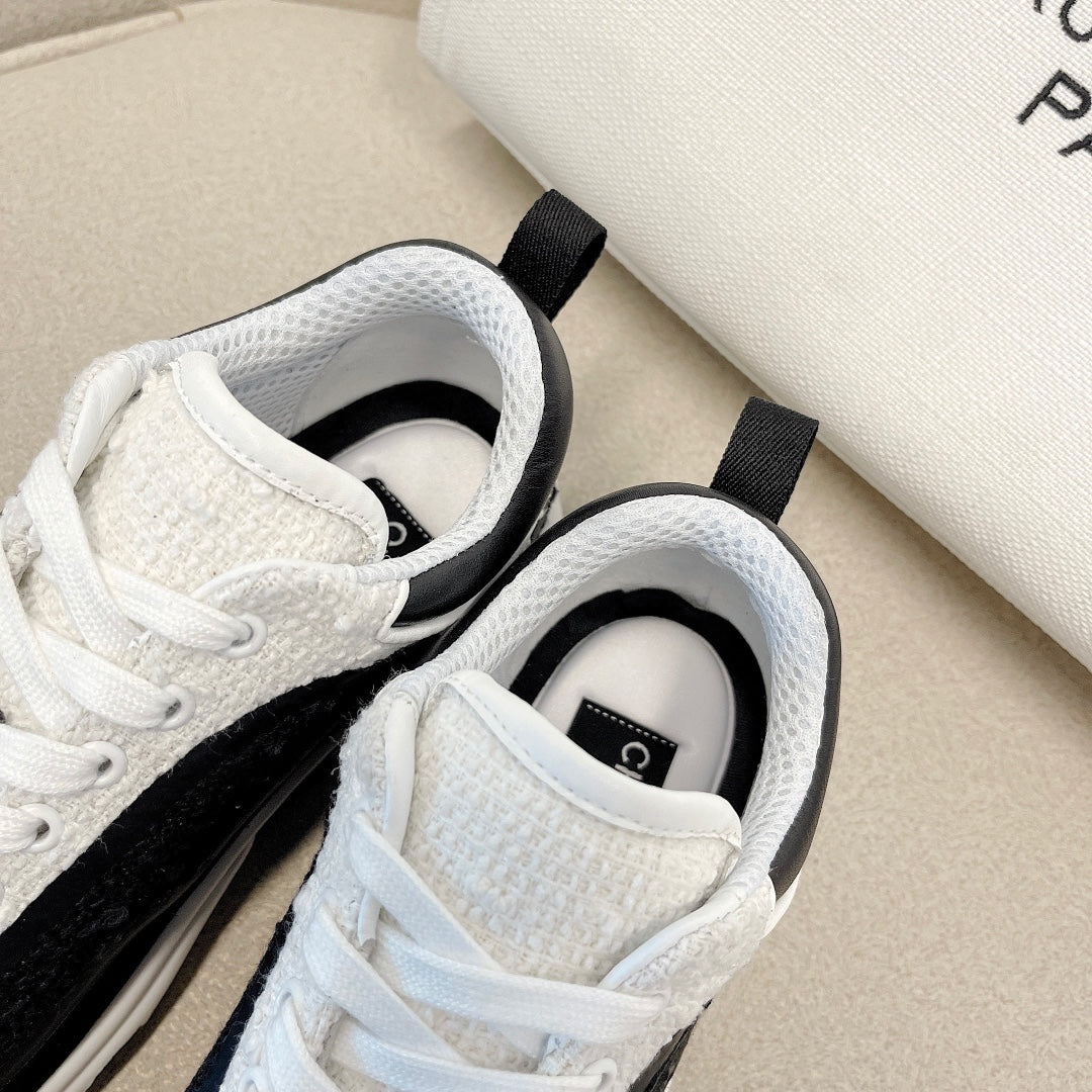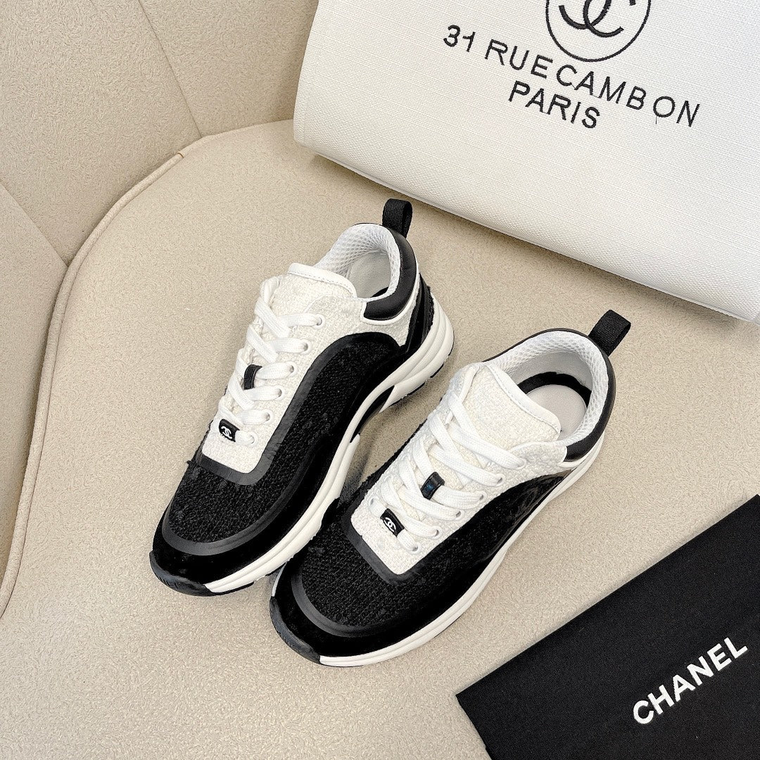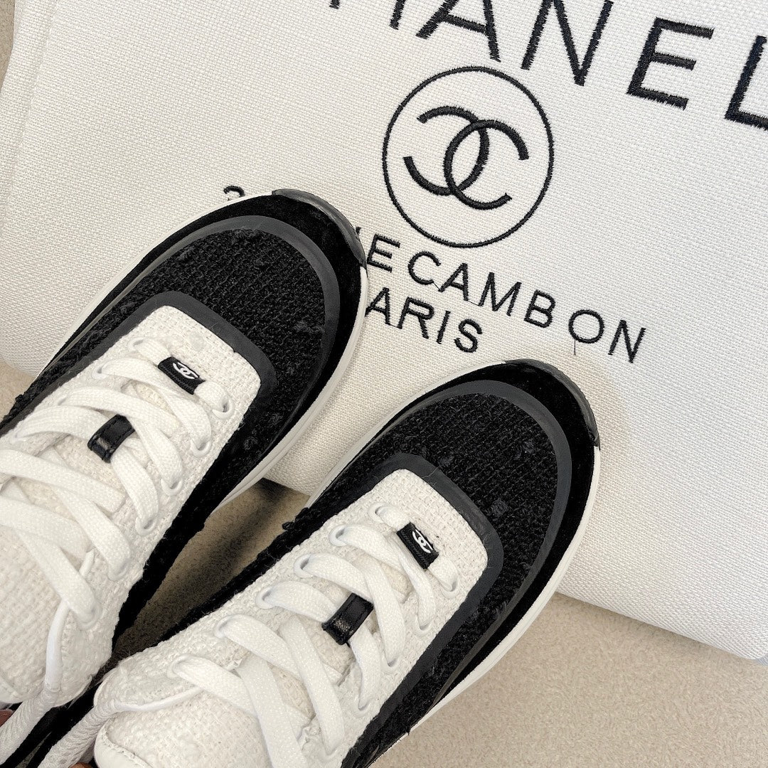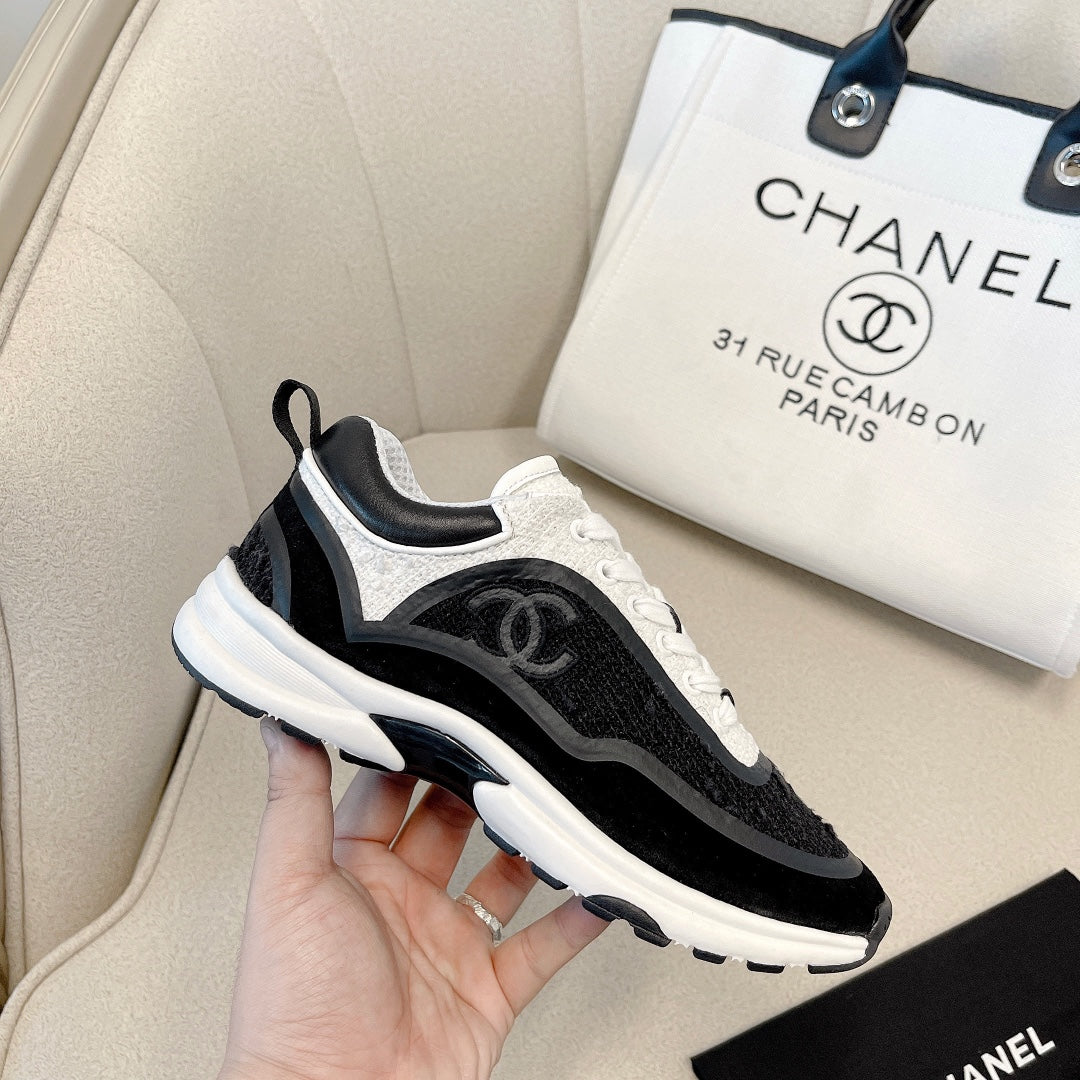 CC Low Top Sneakers Black & White Tweed Suede 527565