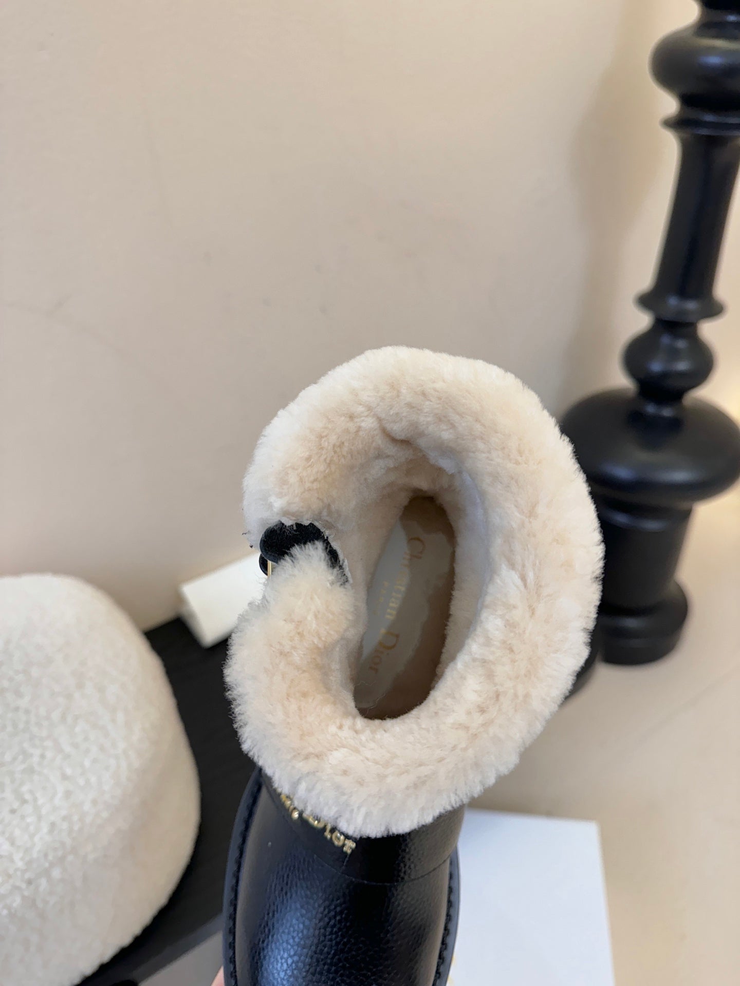 - Material: Grained Calfskin, Shearling
