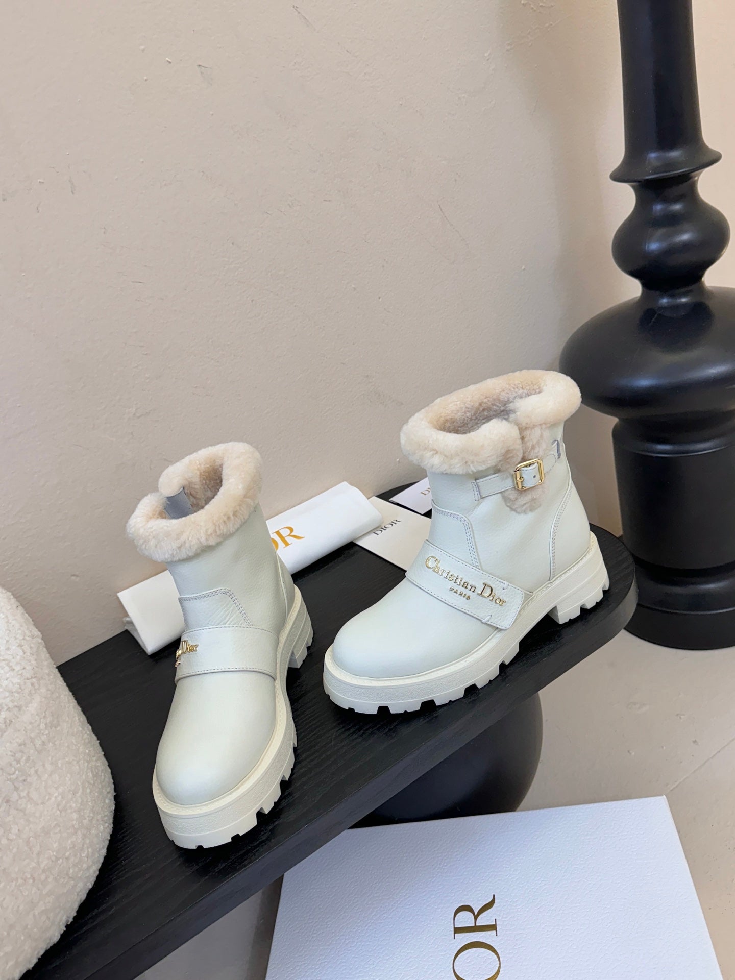 CD Alps D-Quest Ankle Boot White Grained Calfskin Shearling 530609
