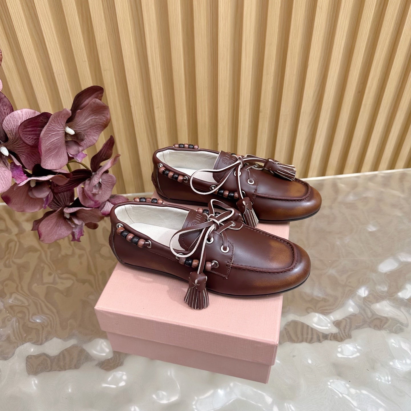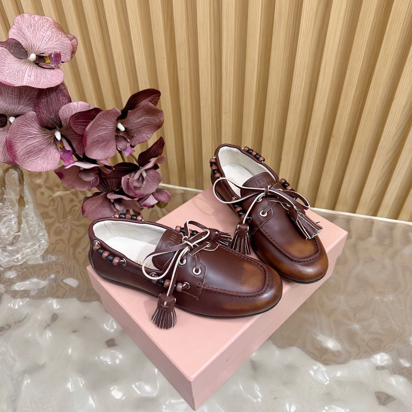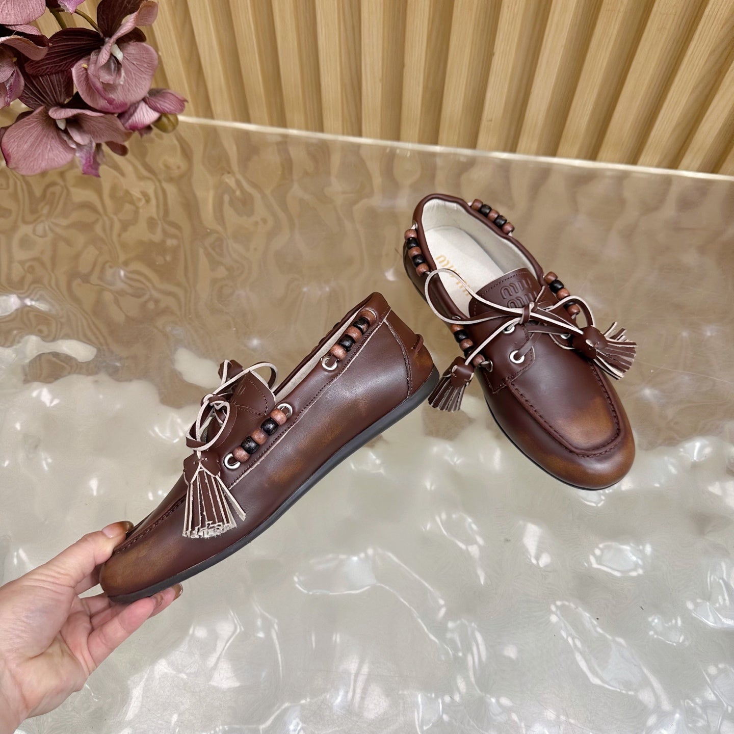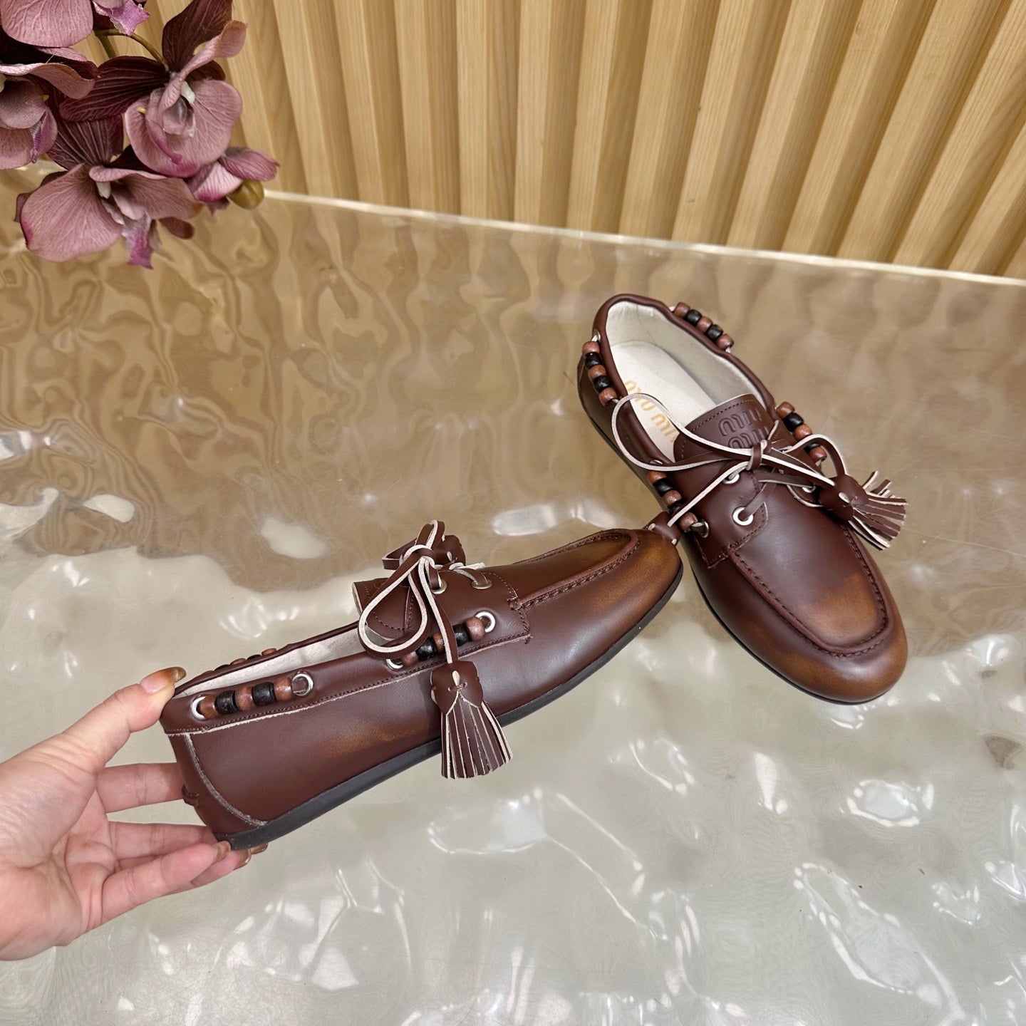 Miu Laces Eyelet Flat Loafer Deep Reddish Brown Sheepskin 498169