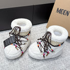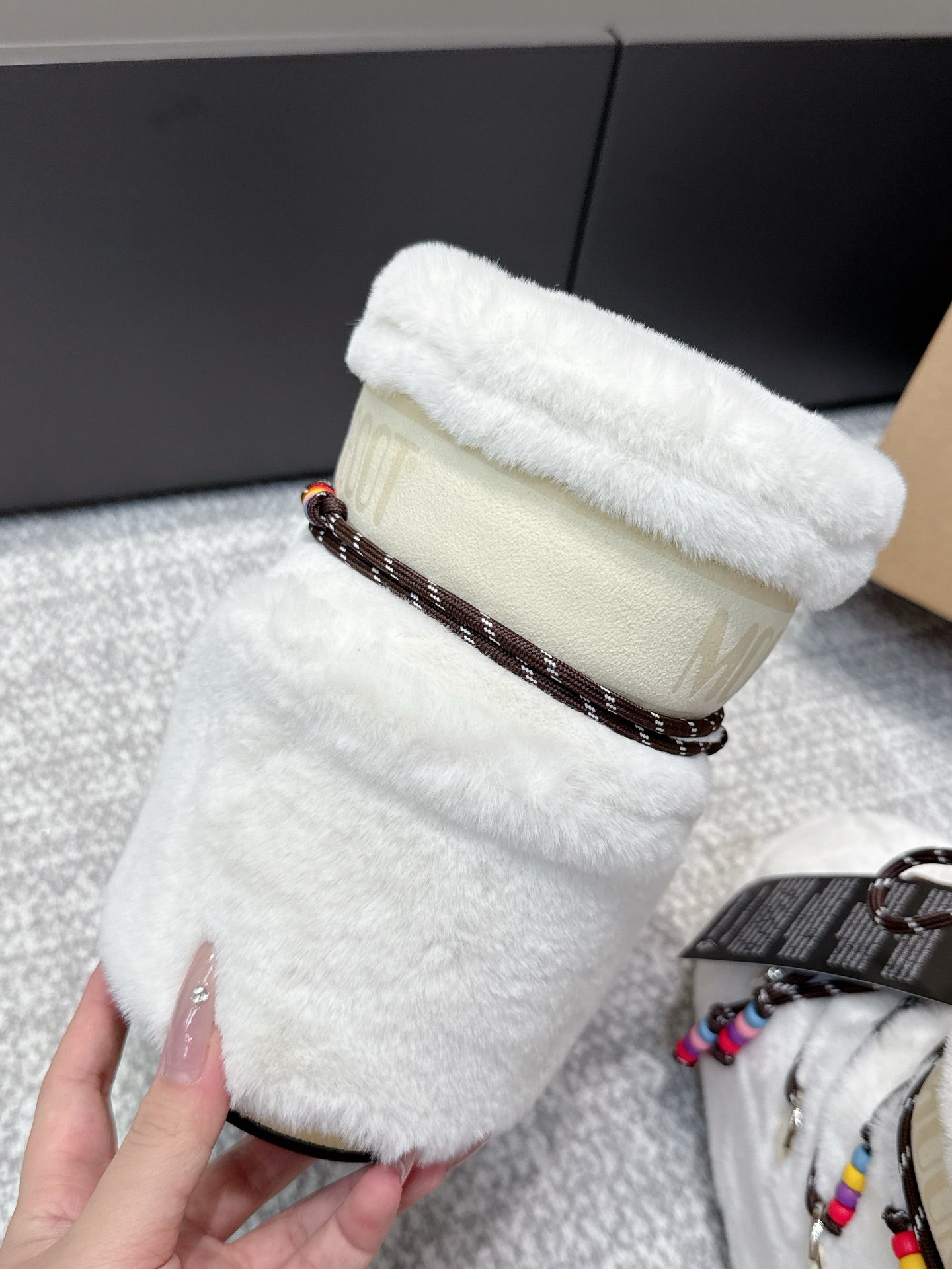 Moon Boot Icon Low Faux Fur White with Beaded Brown Laces 515590