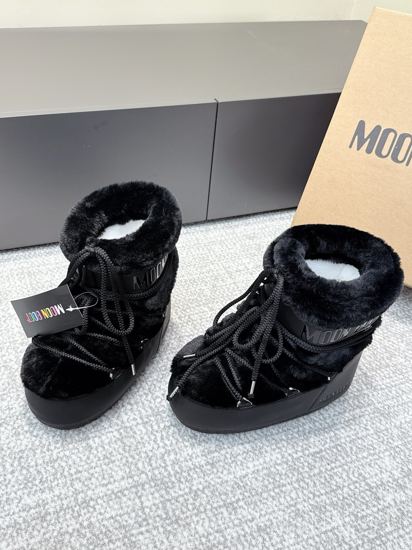 Moon Boot Icon Low Fur Black Leather Faux Fur 515592
