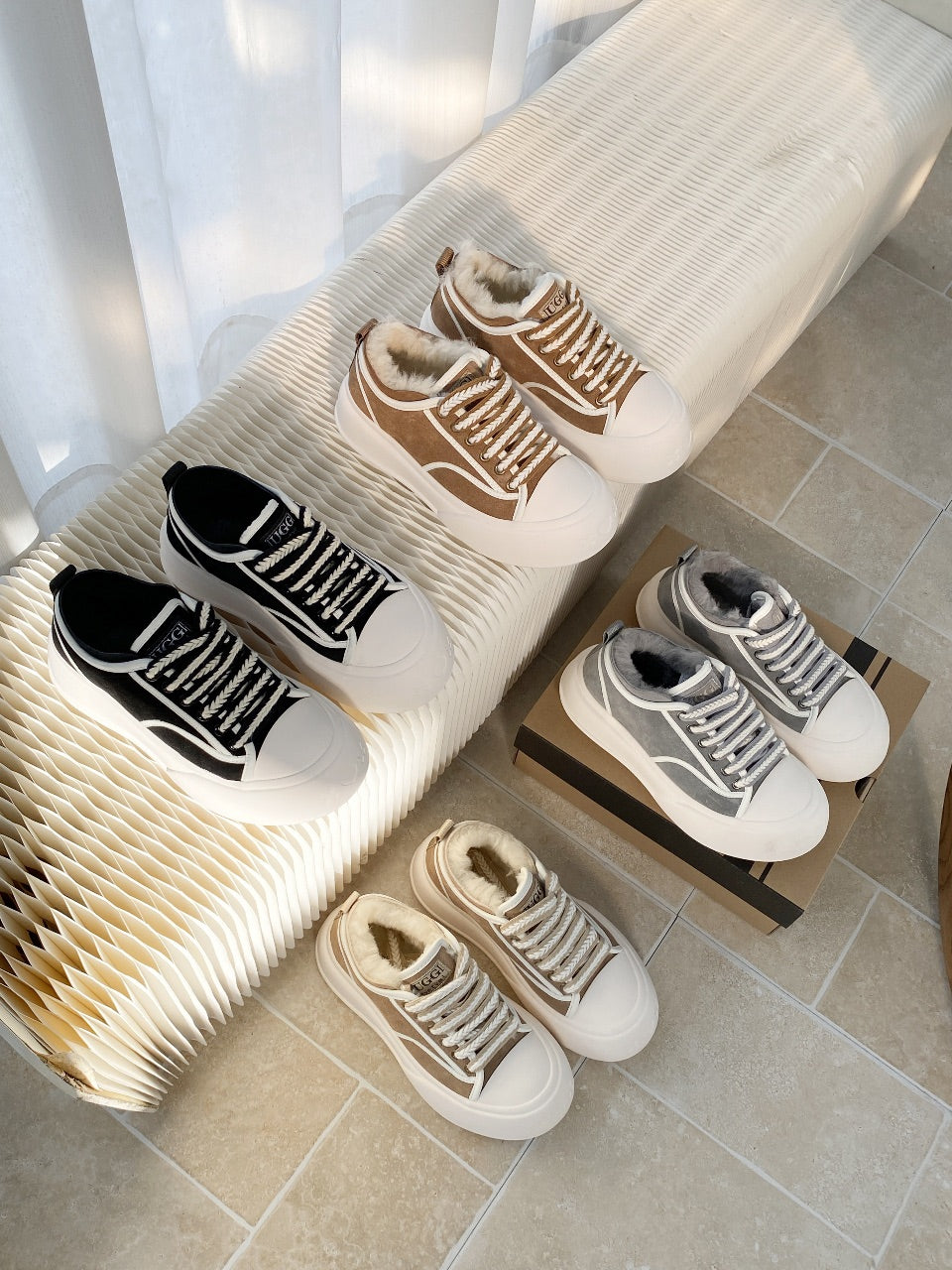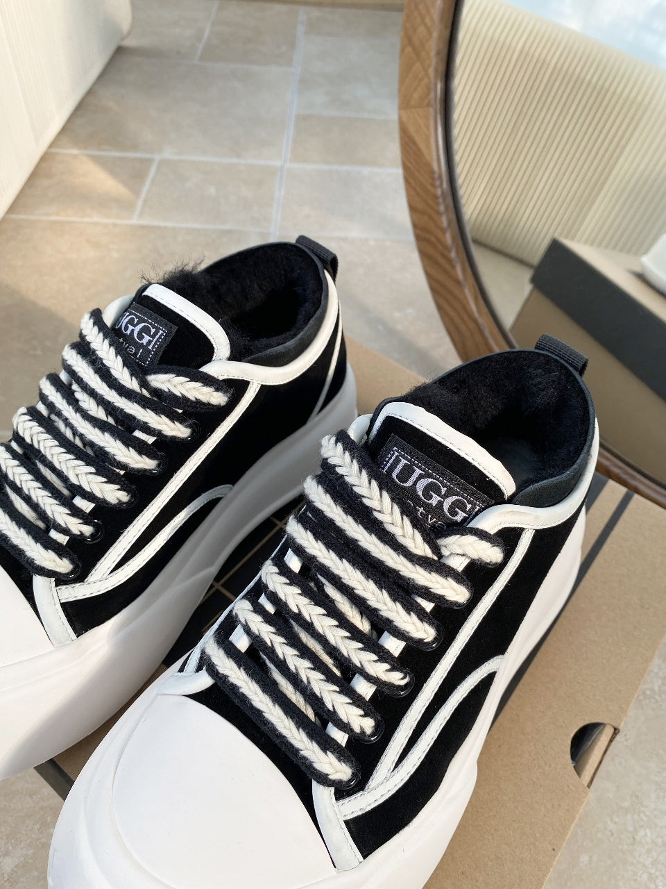 UGG Casual Sports Sneakers Black White Suede Wool Rubber 512825