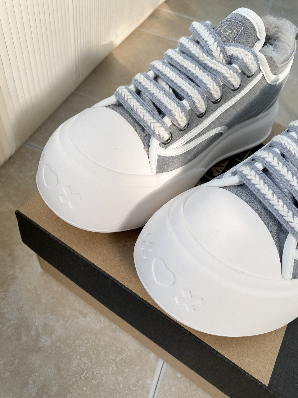 UGG Casual Sports Sneakers Grey White Suede Wool Rubber 512823