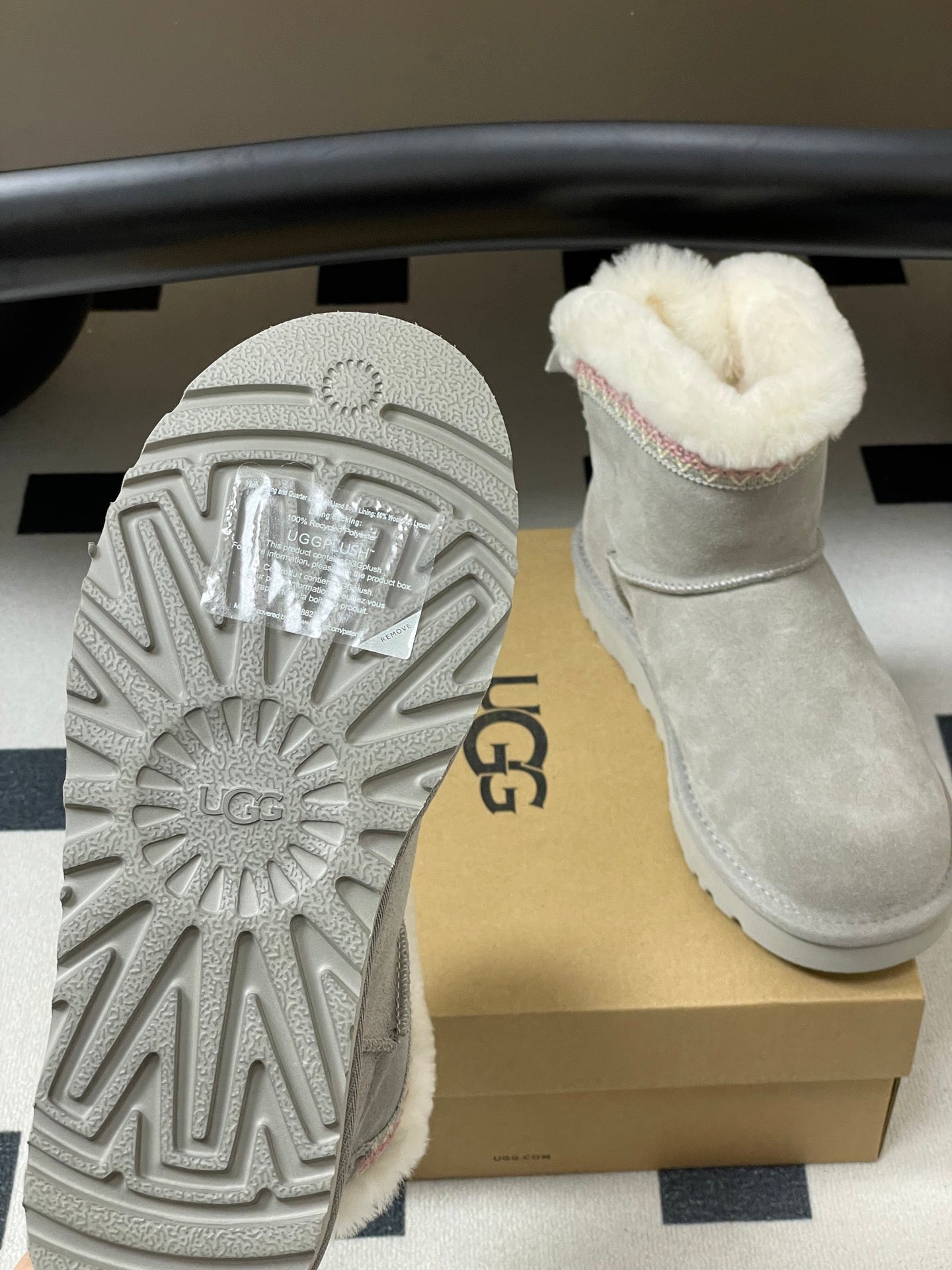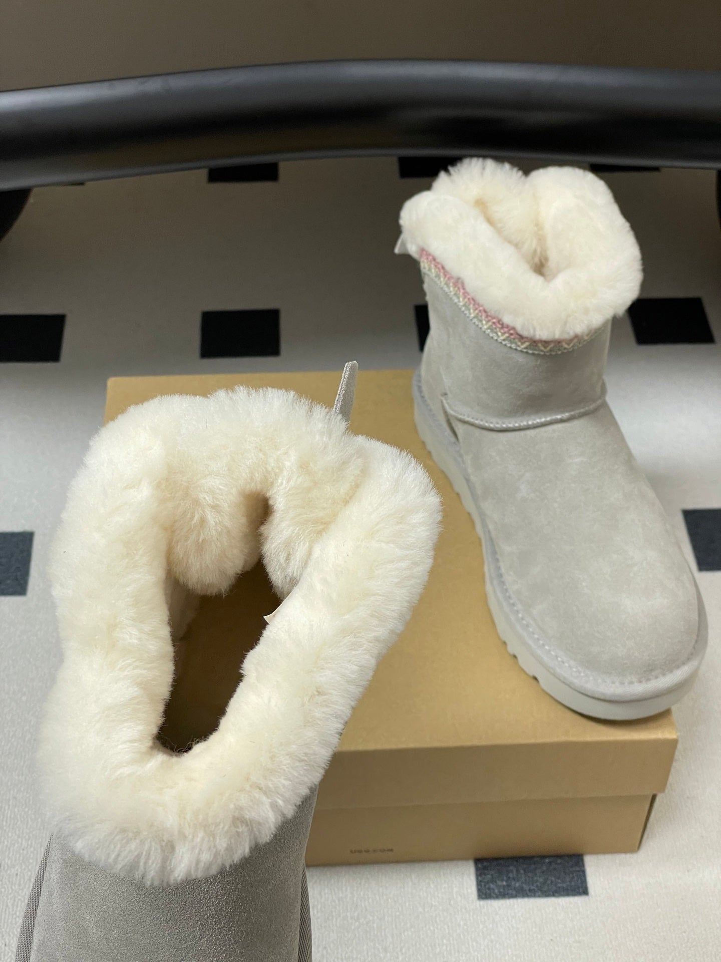 UGG Classic Mini Taslyn Boot Grey White Wool Suede 522215