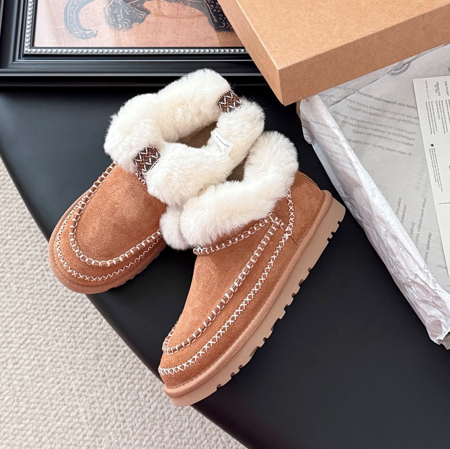 UGG Classic Ultra Mini Alpine Boots Brown White Wool Suede 508053