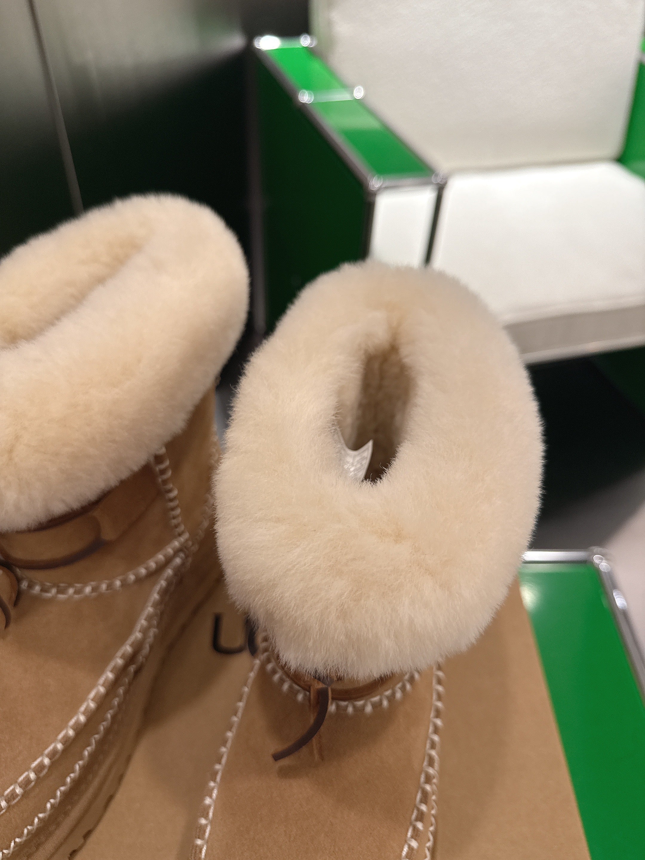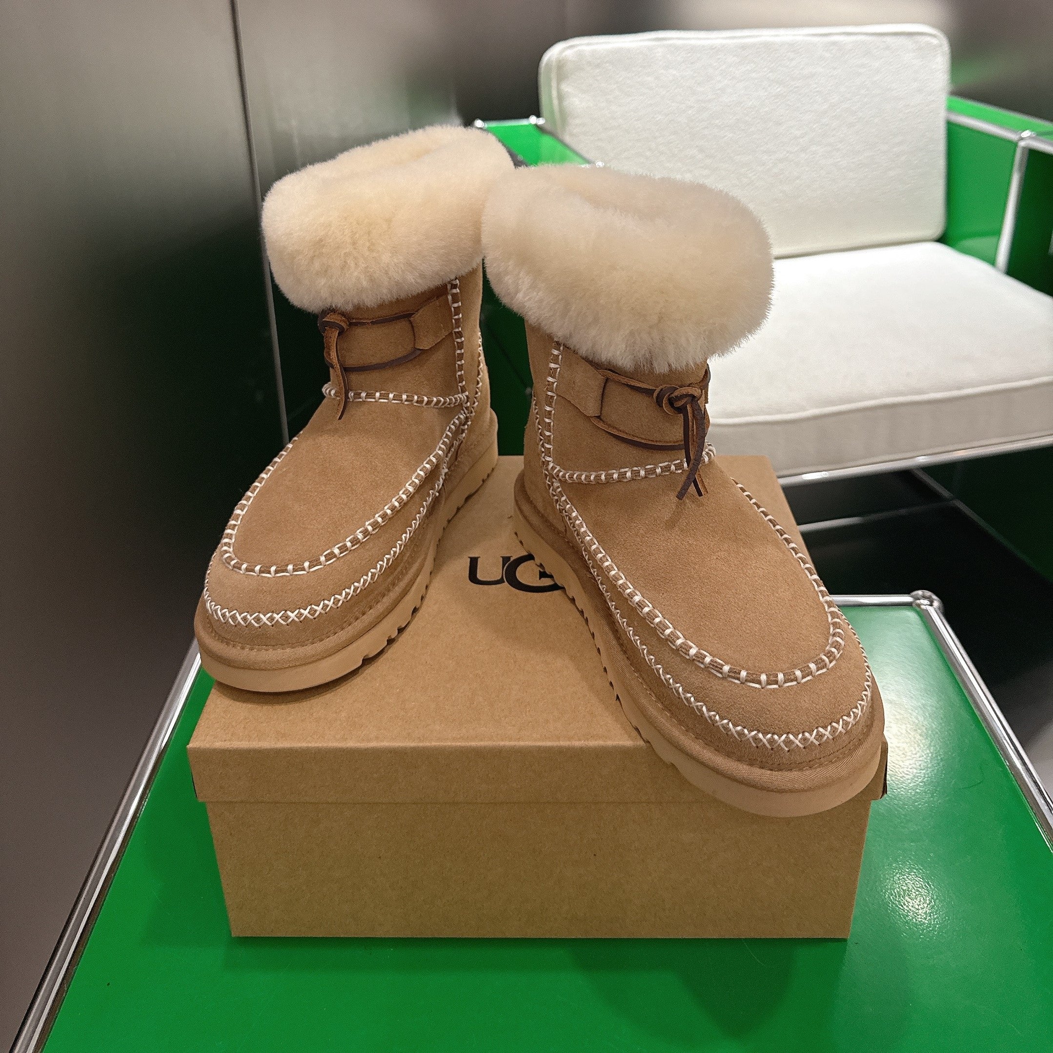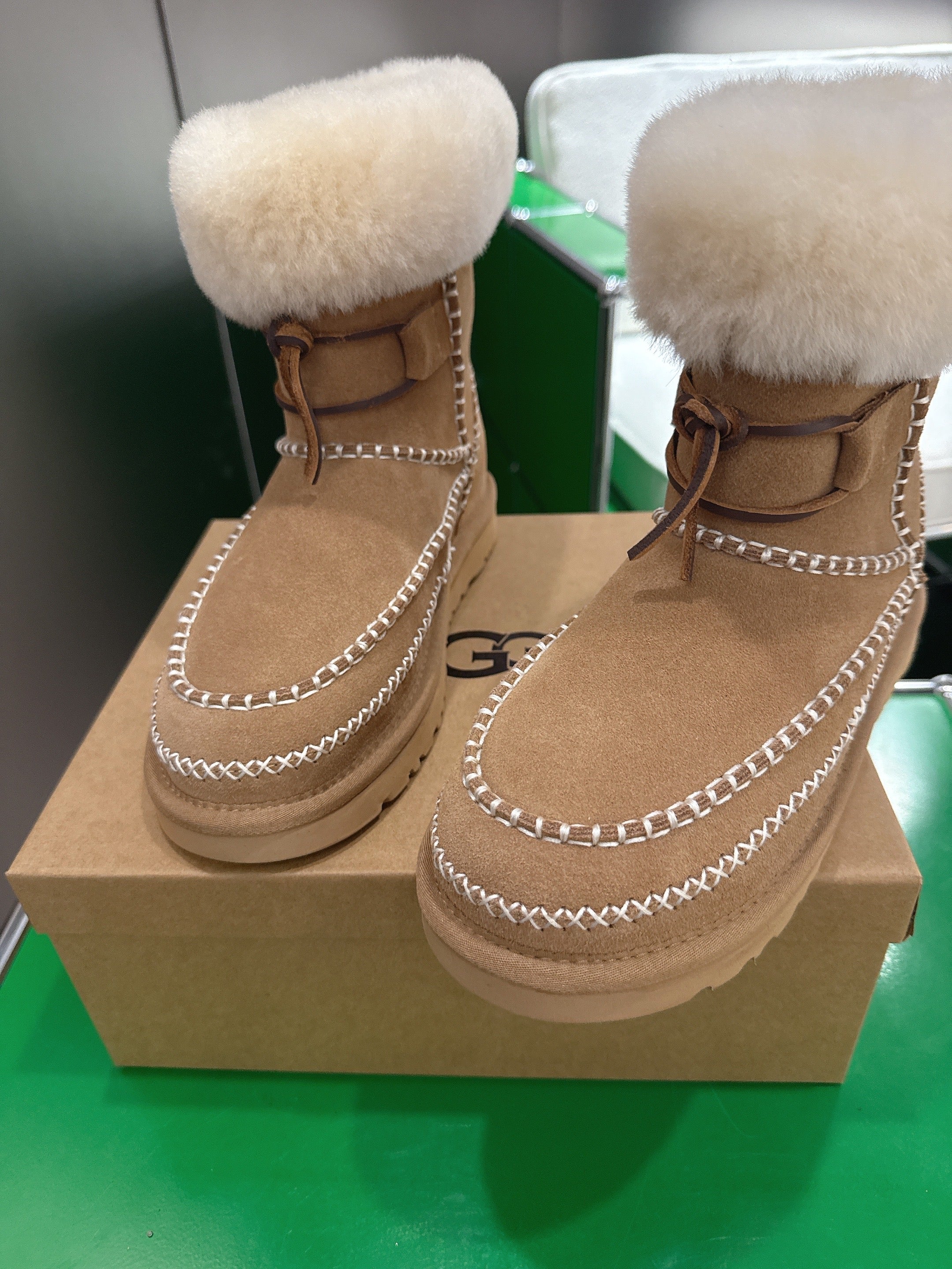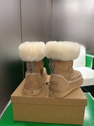 UGG Classic Ultra Mini Alpine Caramel Boots Brown White Wool Suede 507683
