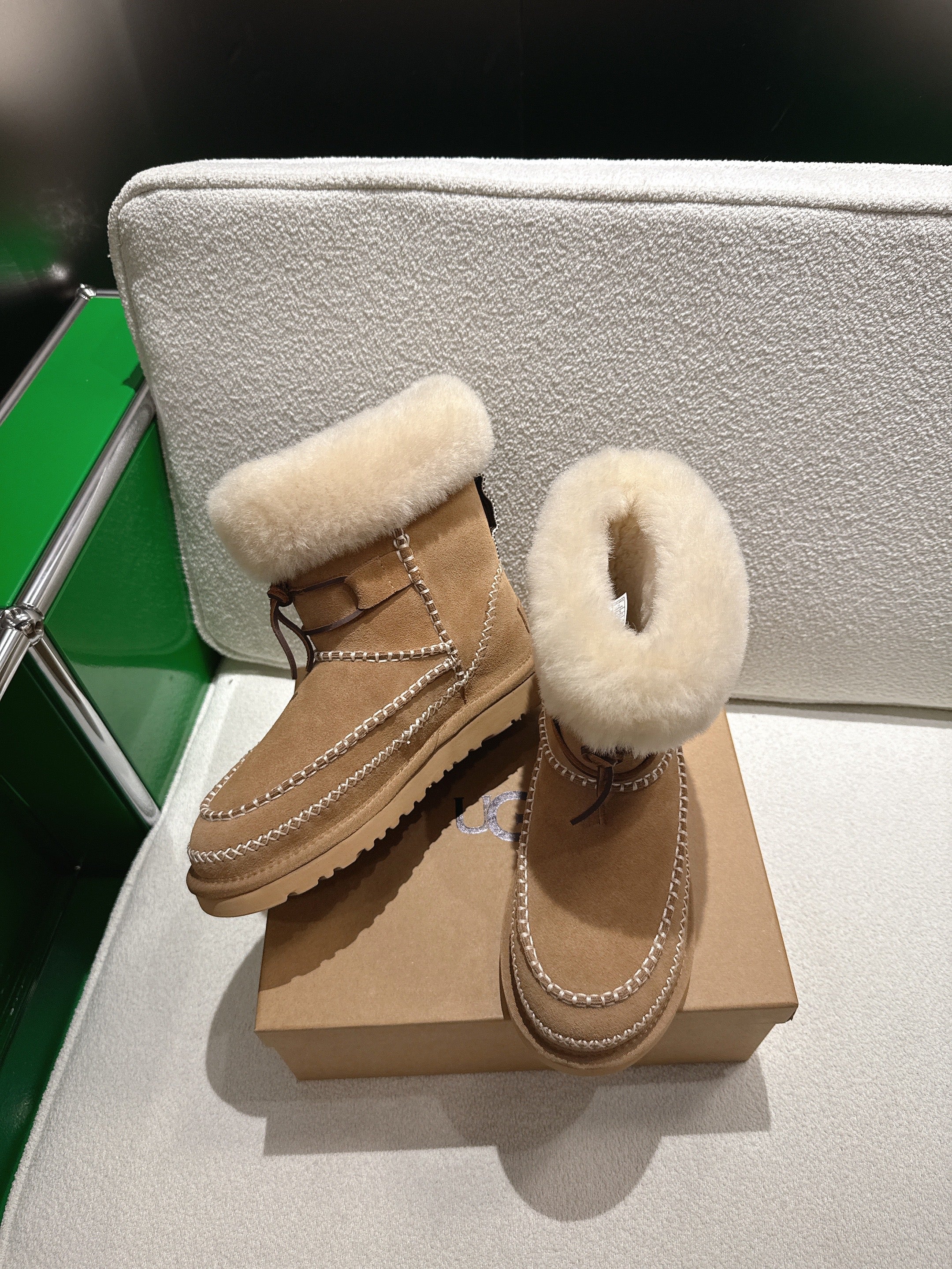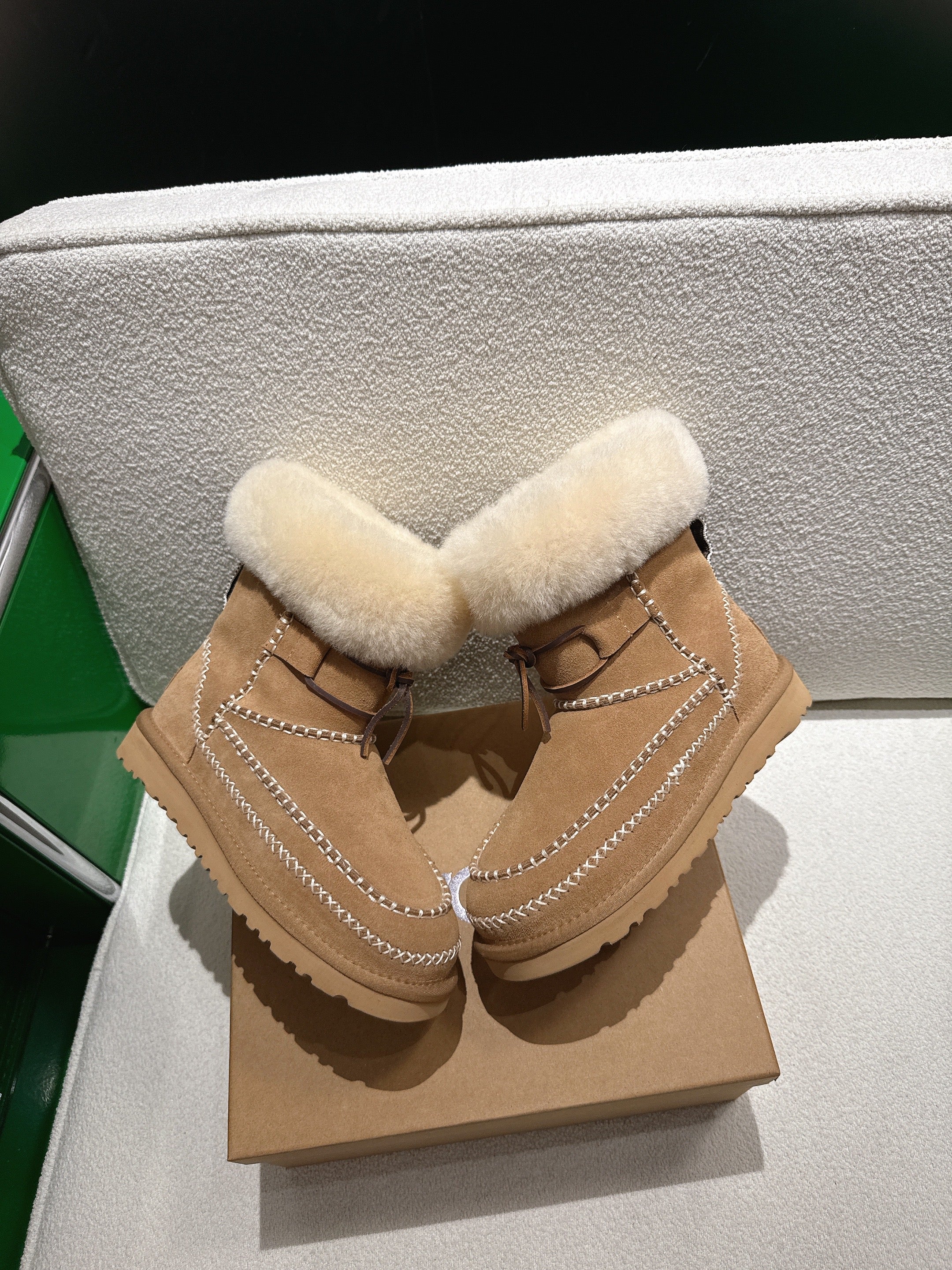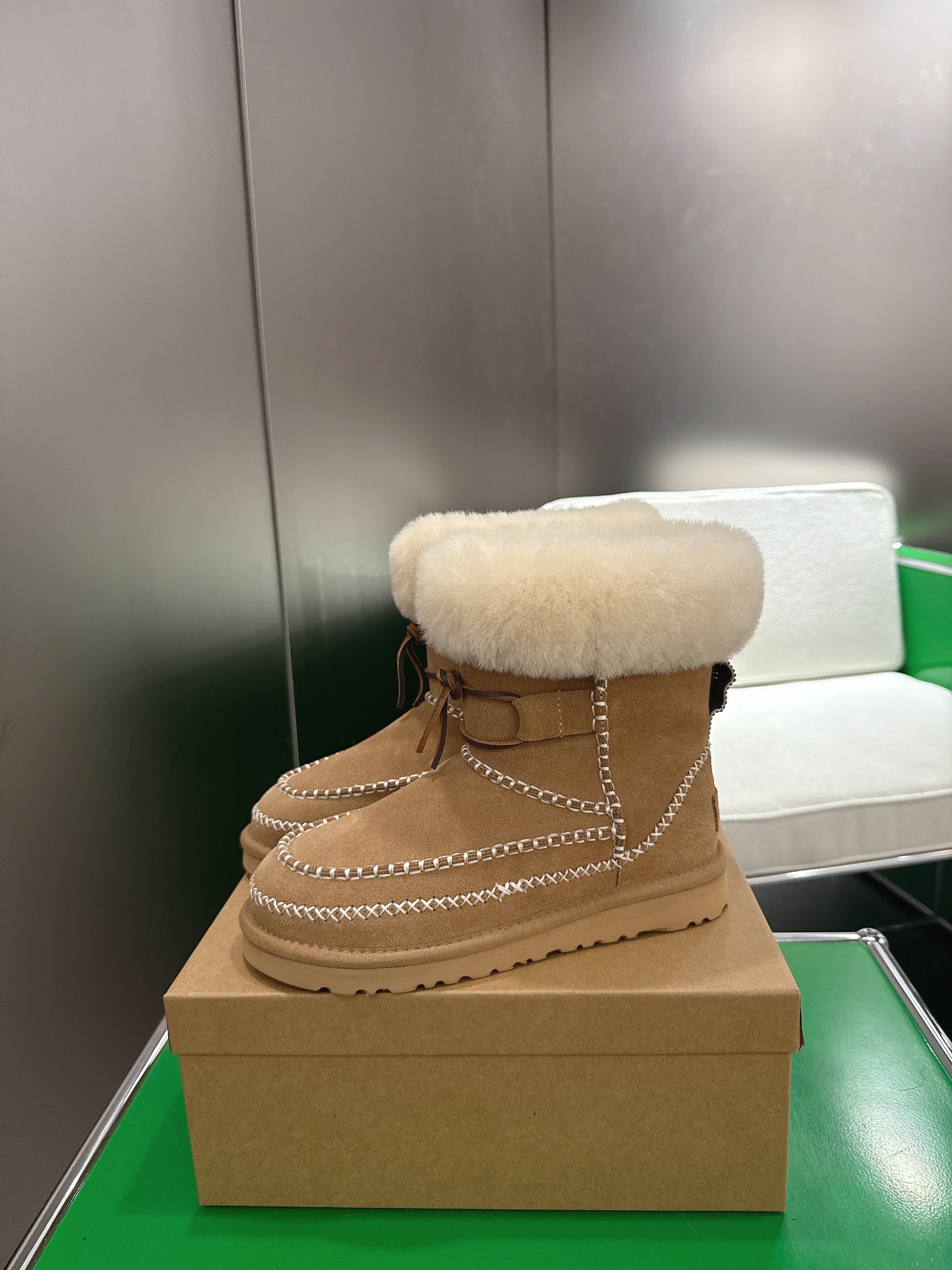 UGG Classic Ultra Mini Alpine Caramel Boots Brown White Wool Suede 507683