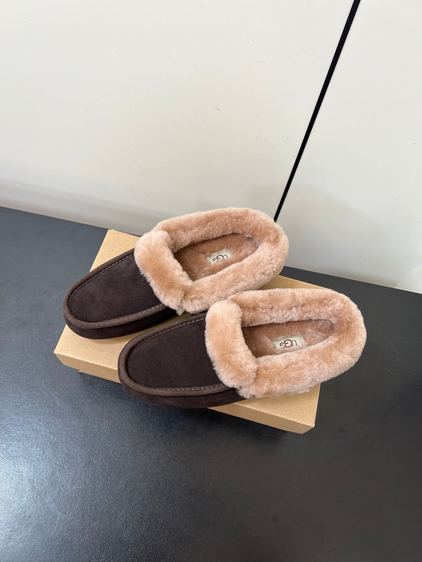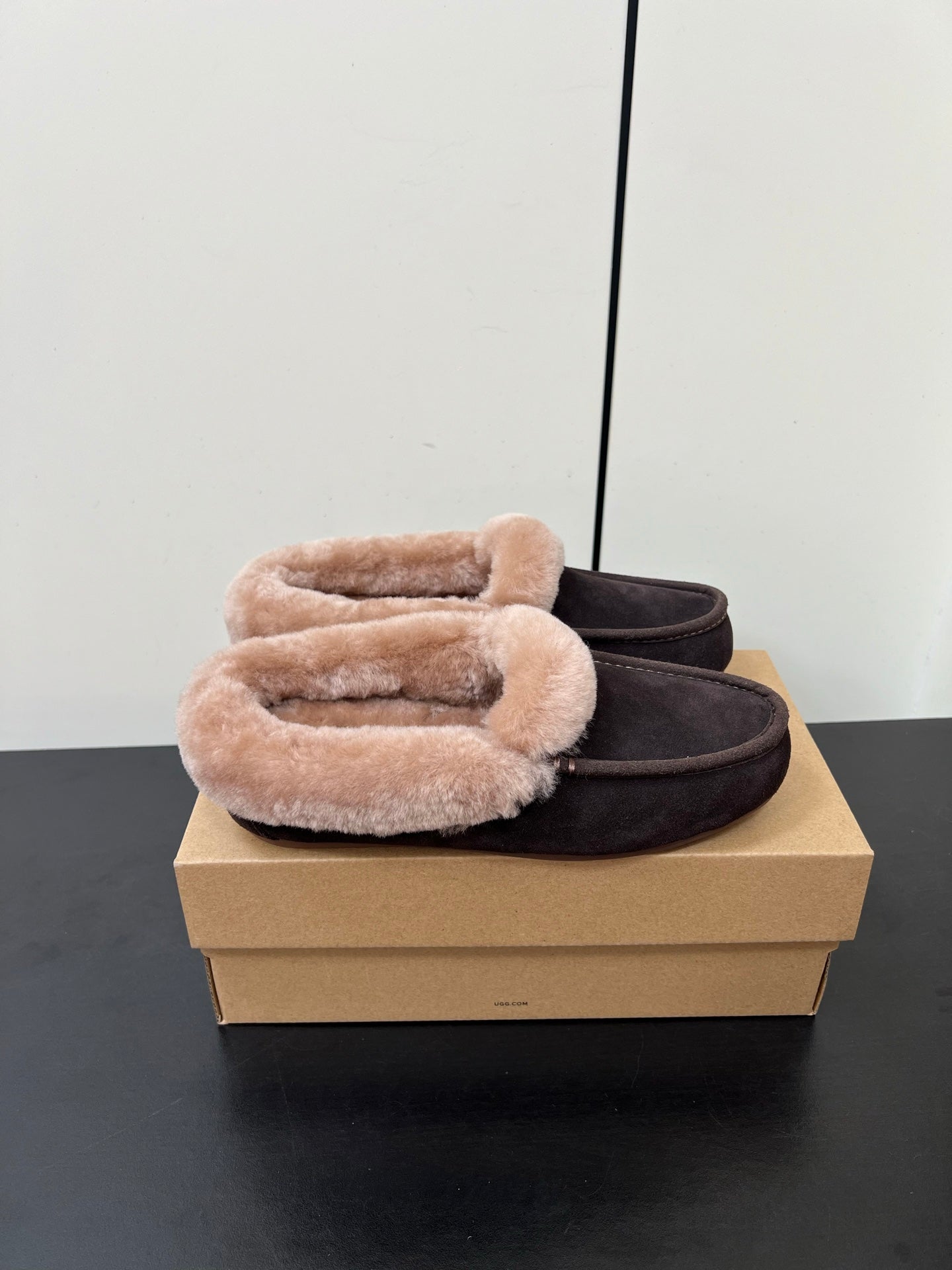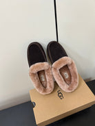 UGG Oil Jiji Slip-On Loafers Dark Burgundy Fur Suede 519524