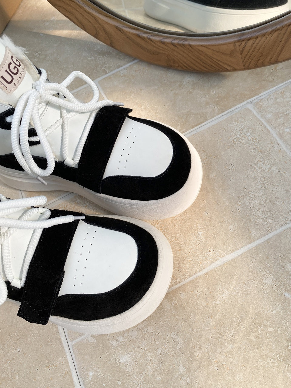 UGG Tasman-inspired Platform Boots Black White Suede 512831