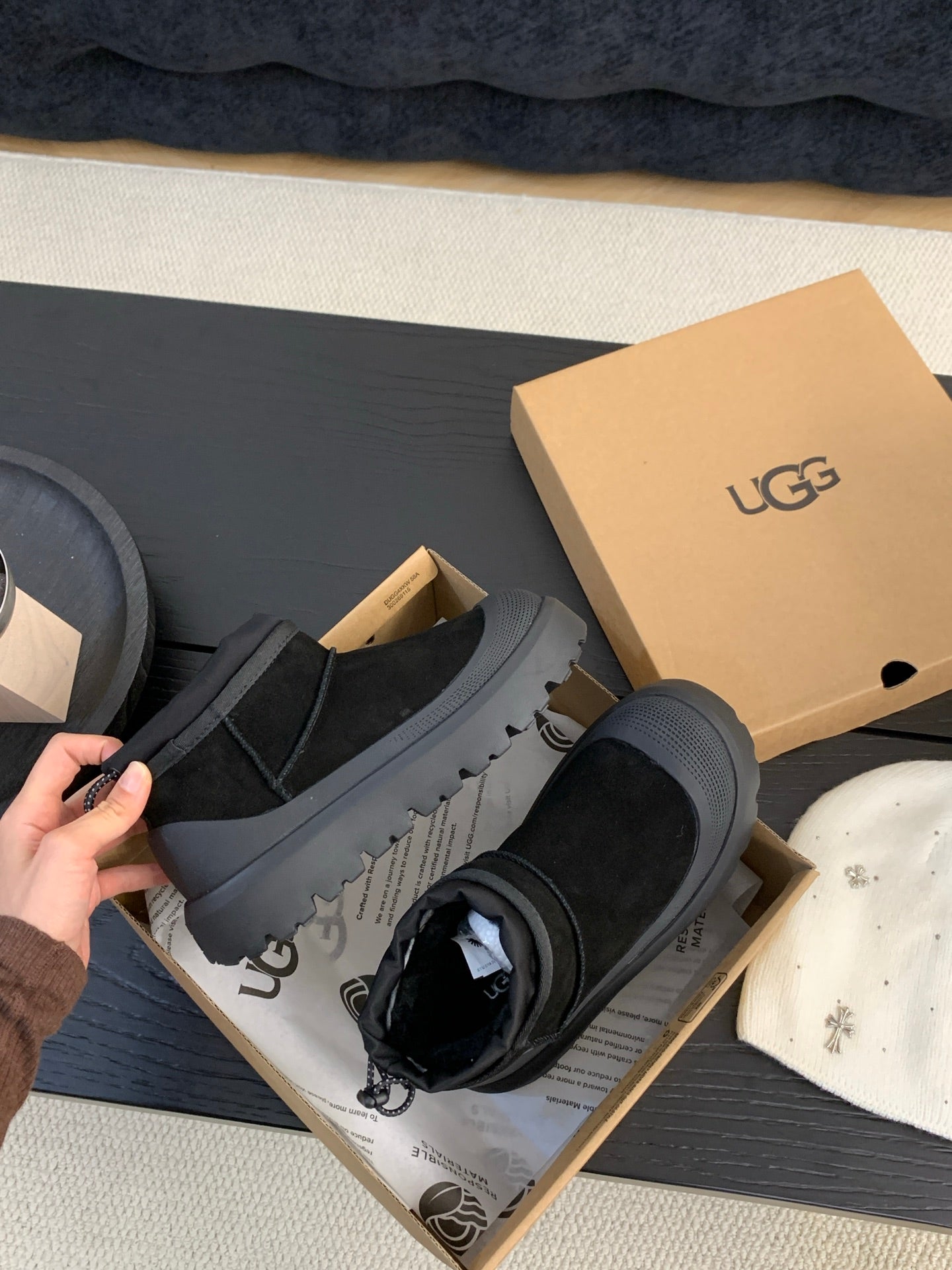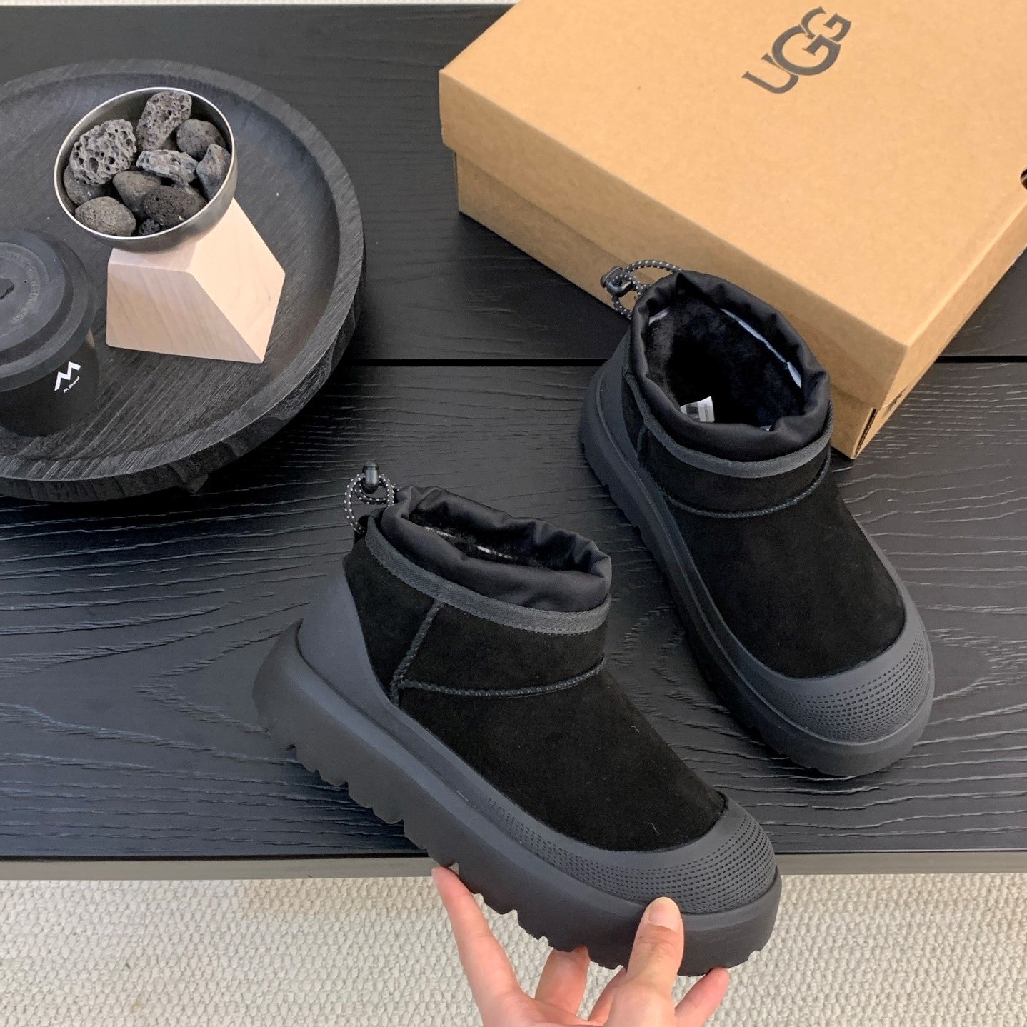 UGG Ultra Mini Ankle Boots Black Suede Rubber 512899