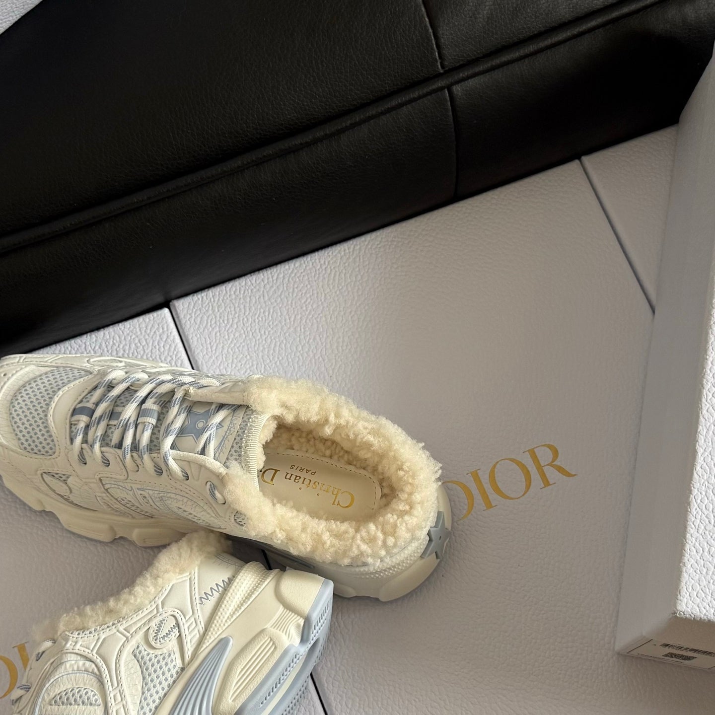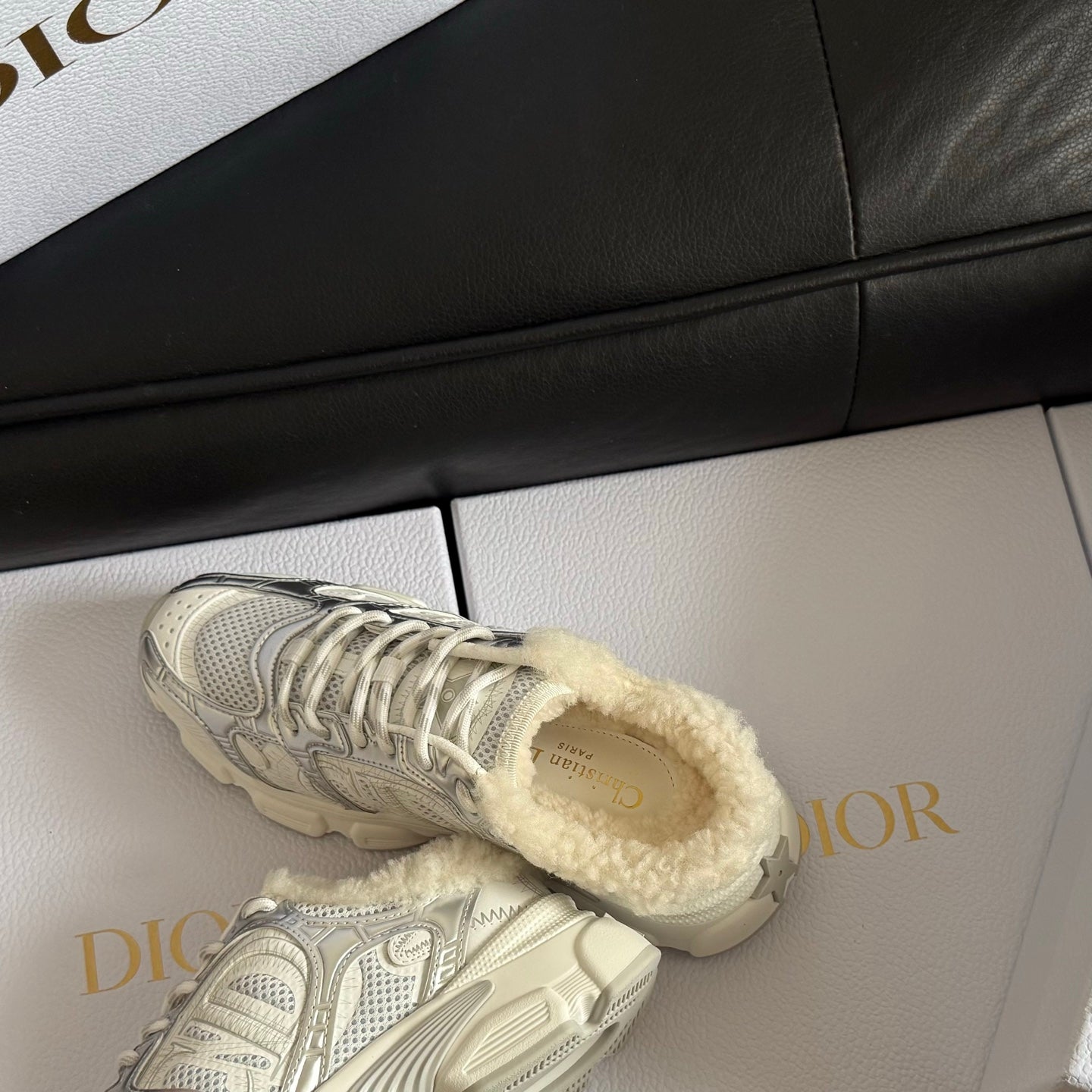 Dior 25 Chrono Sneakers Light Beige Fur Calfskin 530323