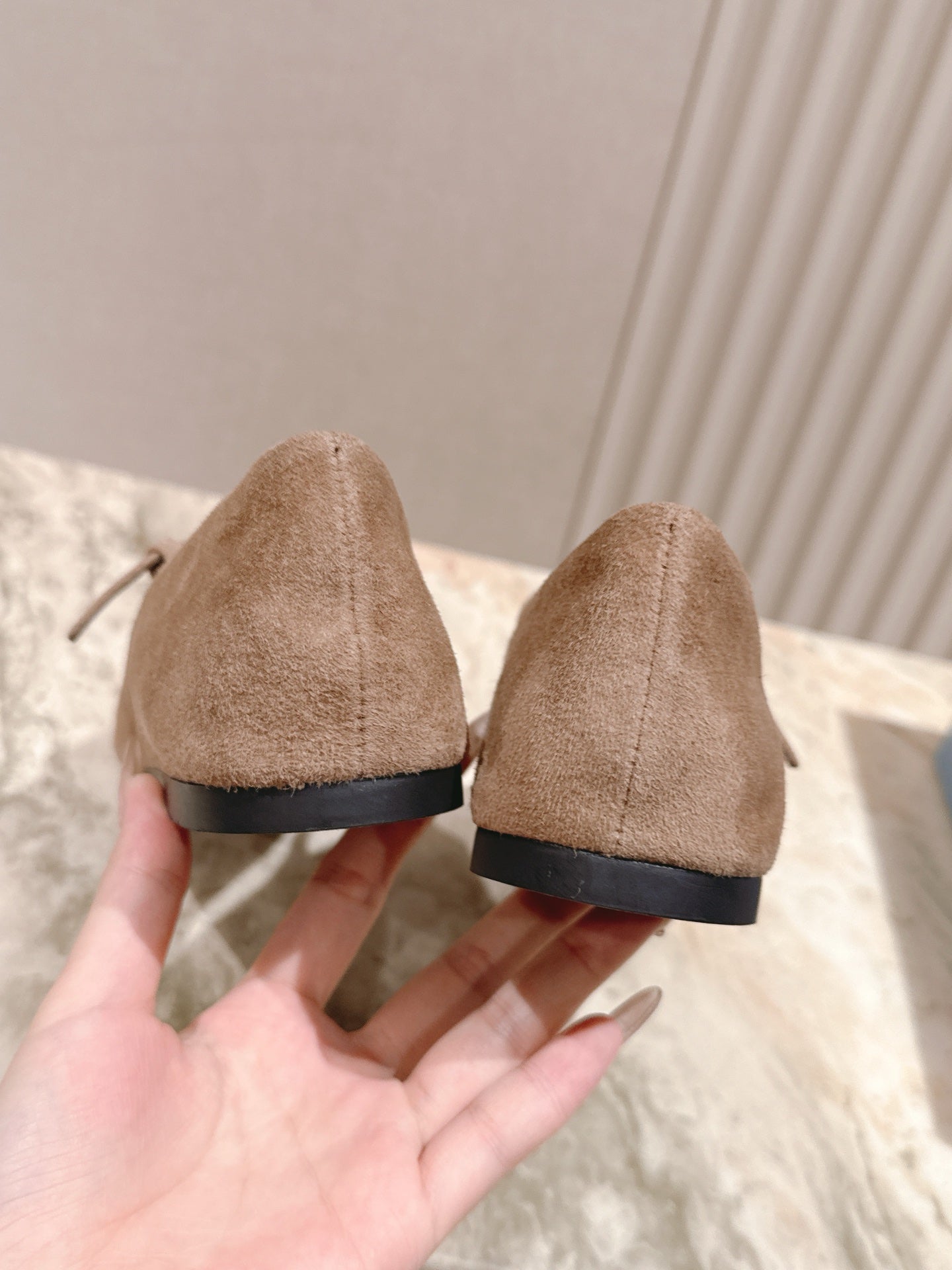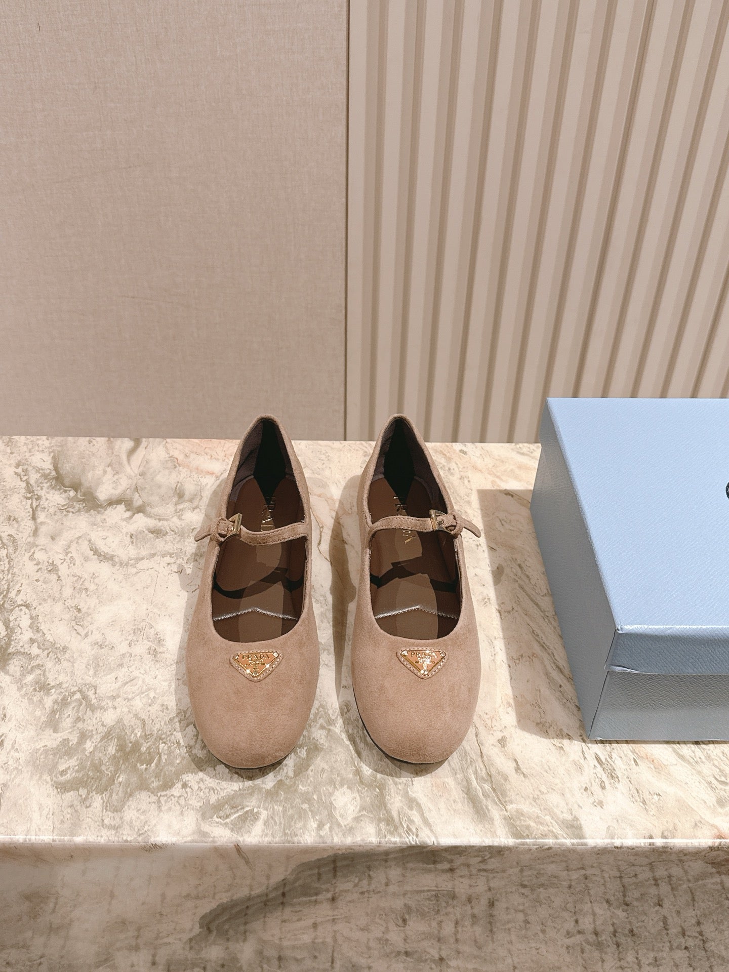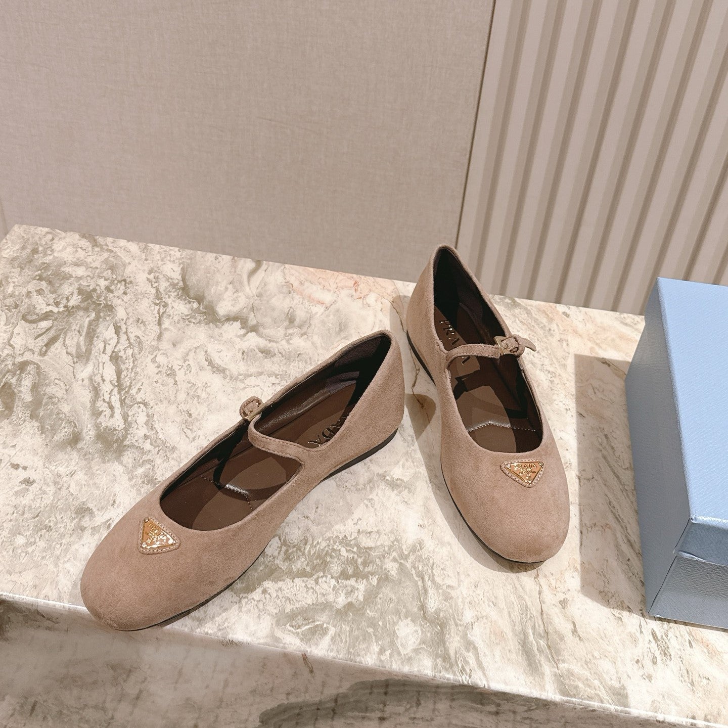 PRA 25s Ballet Flats with Small Buckle Light Brown Suede 449707