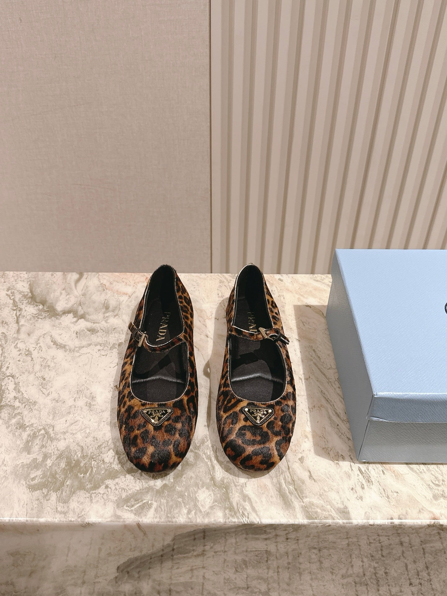 PRA 25s Ballet Flats with Small Buckle Leopard Printed Calf-hair 449706