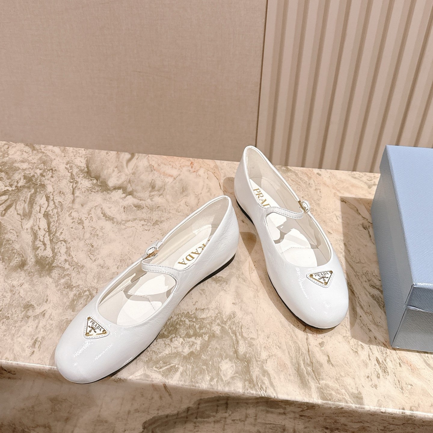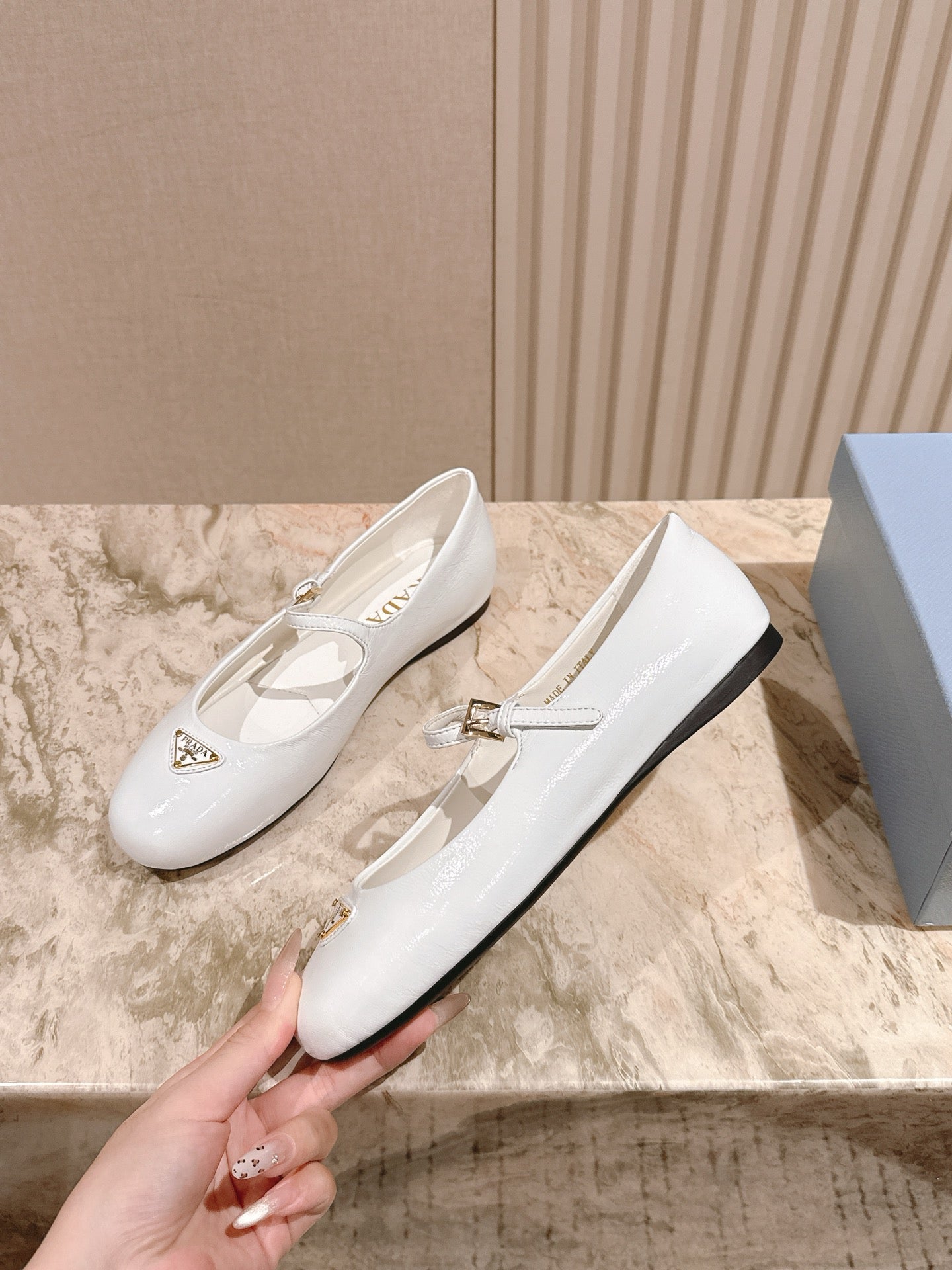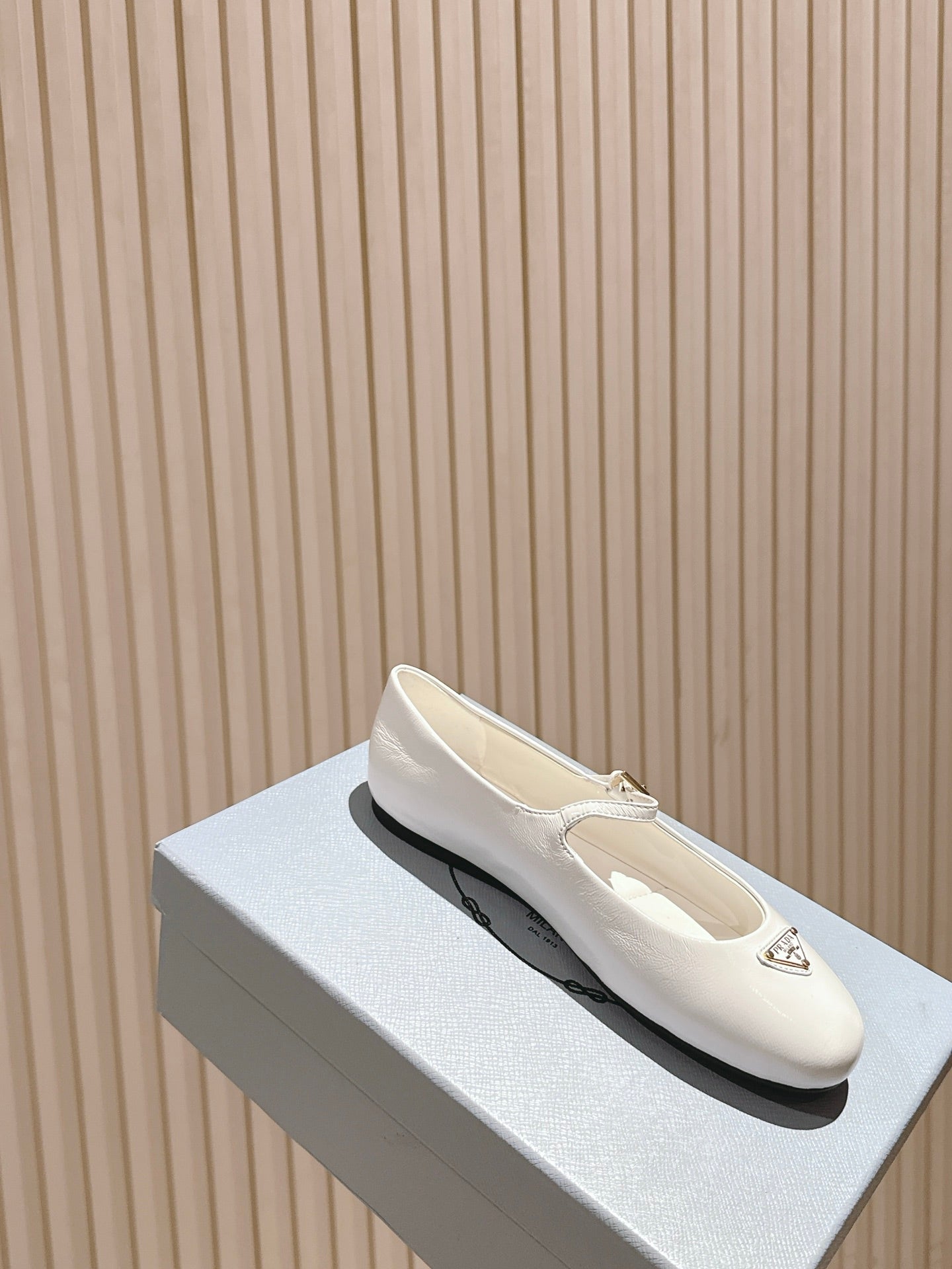 PRA 25s Ballet Flats with Small Buckle White Cowhide 449711