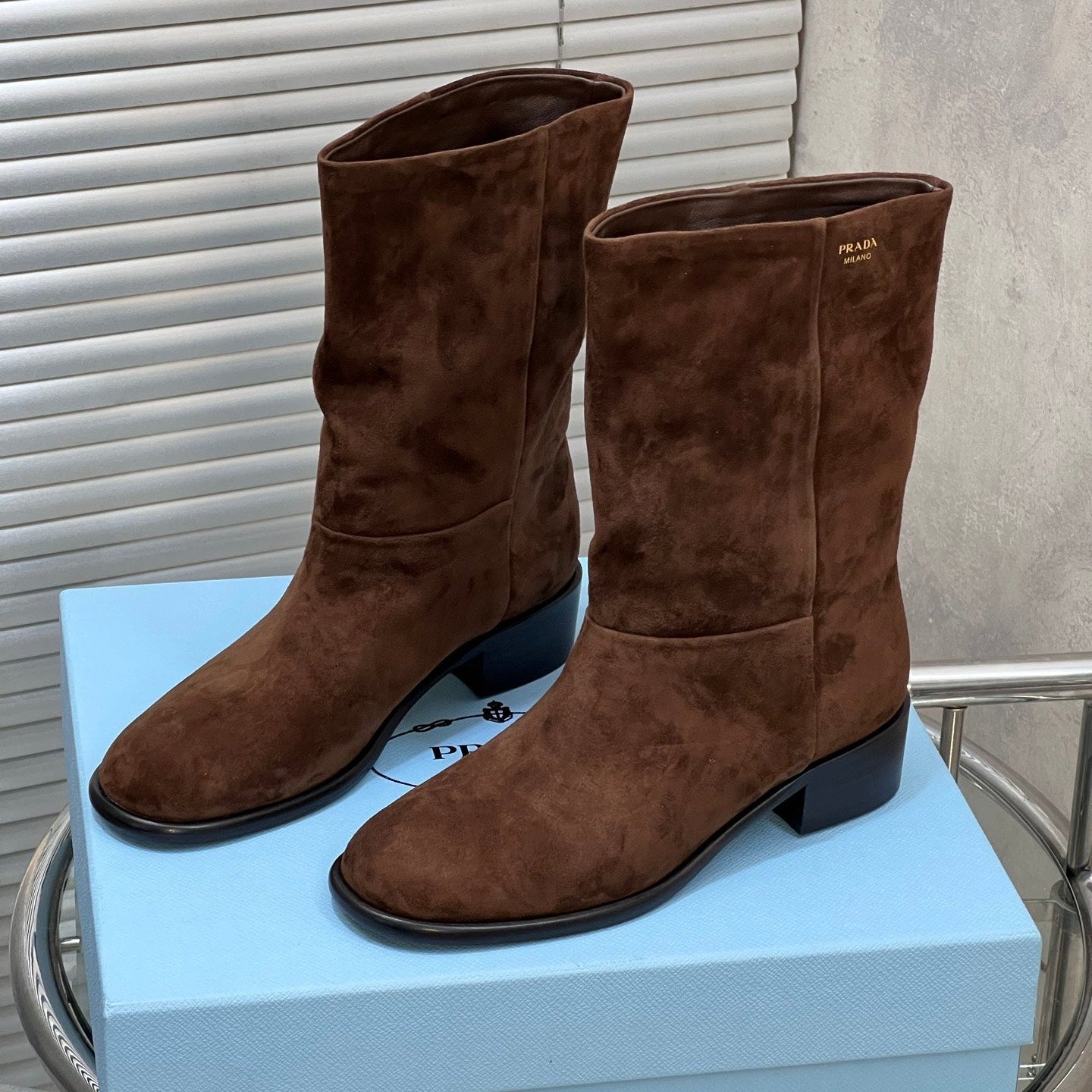 Prada 25 Boot Brown Suede Sheepskin 499844