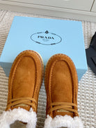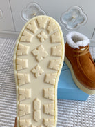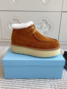 Prada Chukka Boots Caramel Suede White Shearing 564162