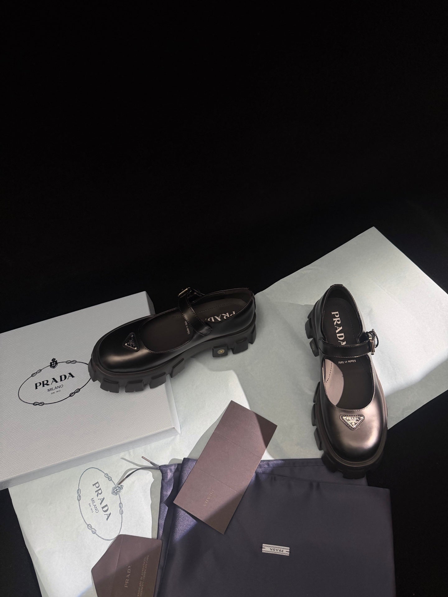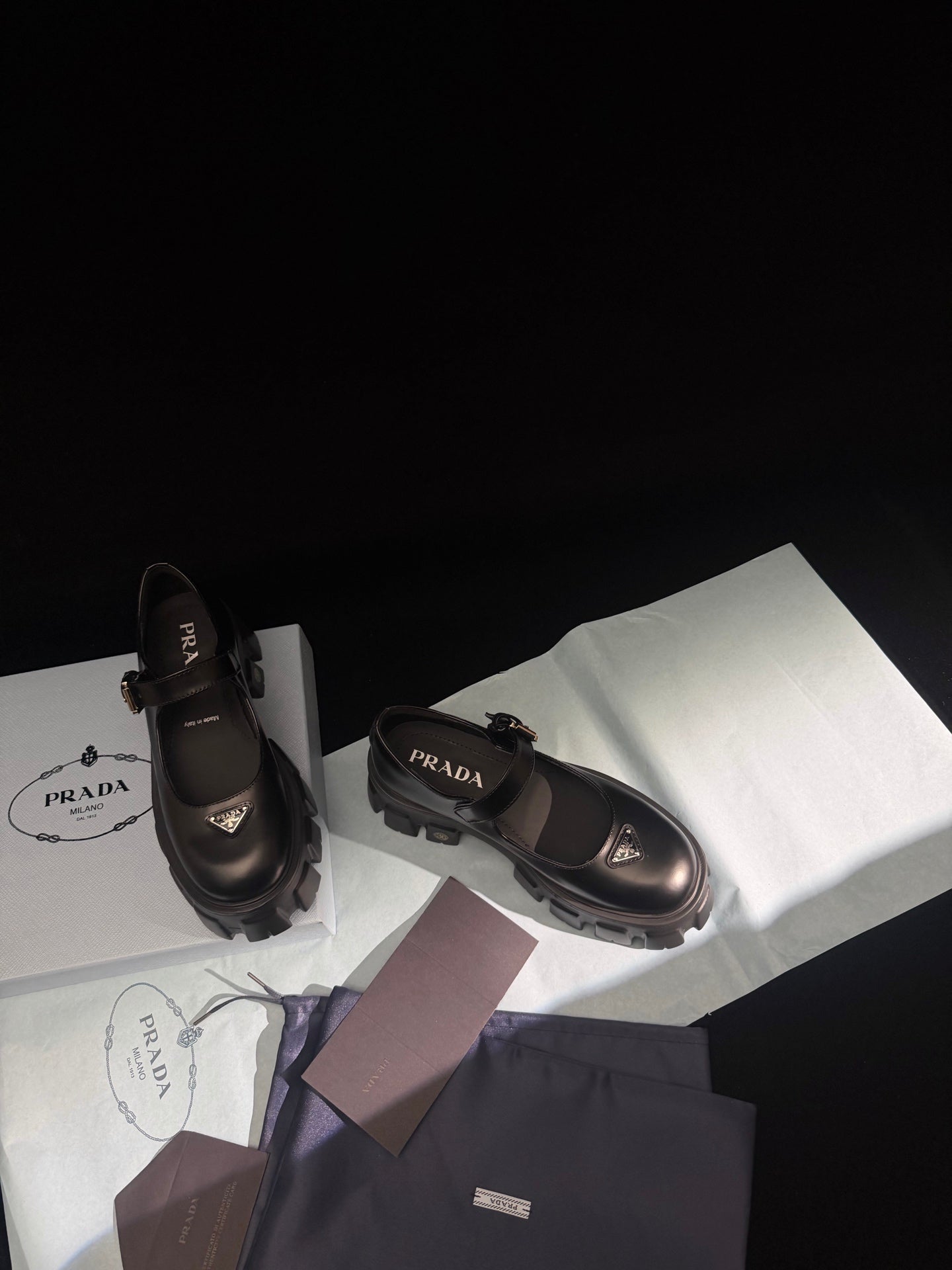 Prada Brushed Monolith Mary Janes Loafer Black Leather 606064