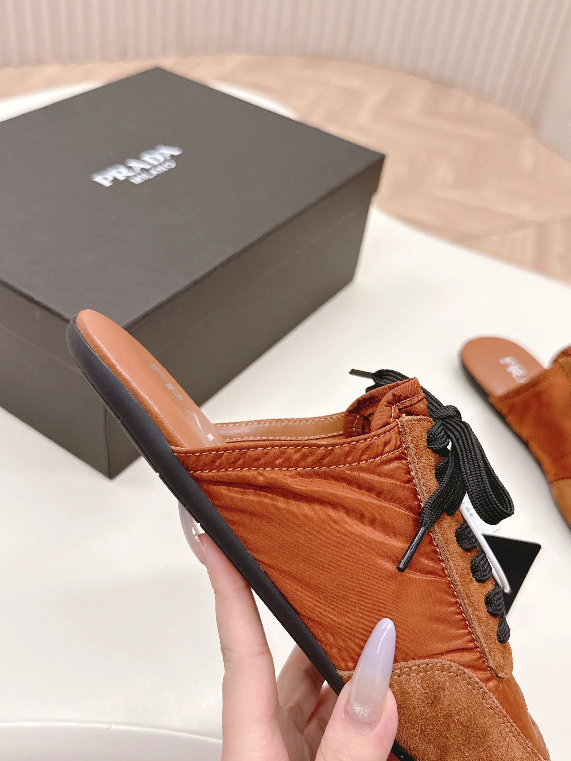 PRA 26S Mule Sneaker Camel Brown Suede Canvas 600607