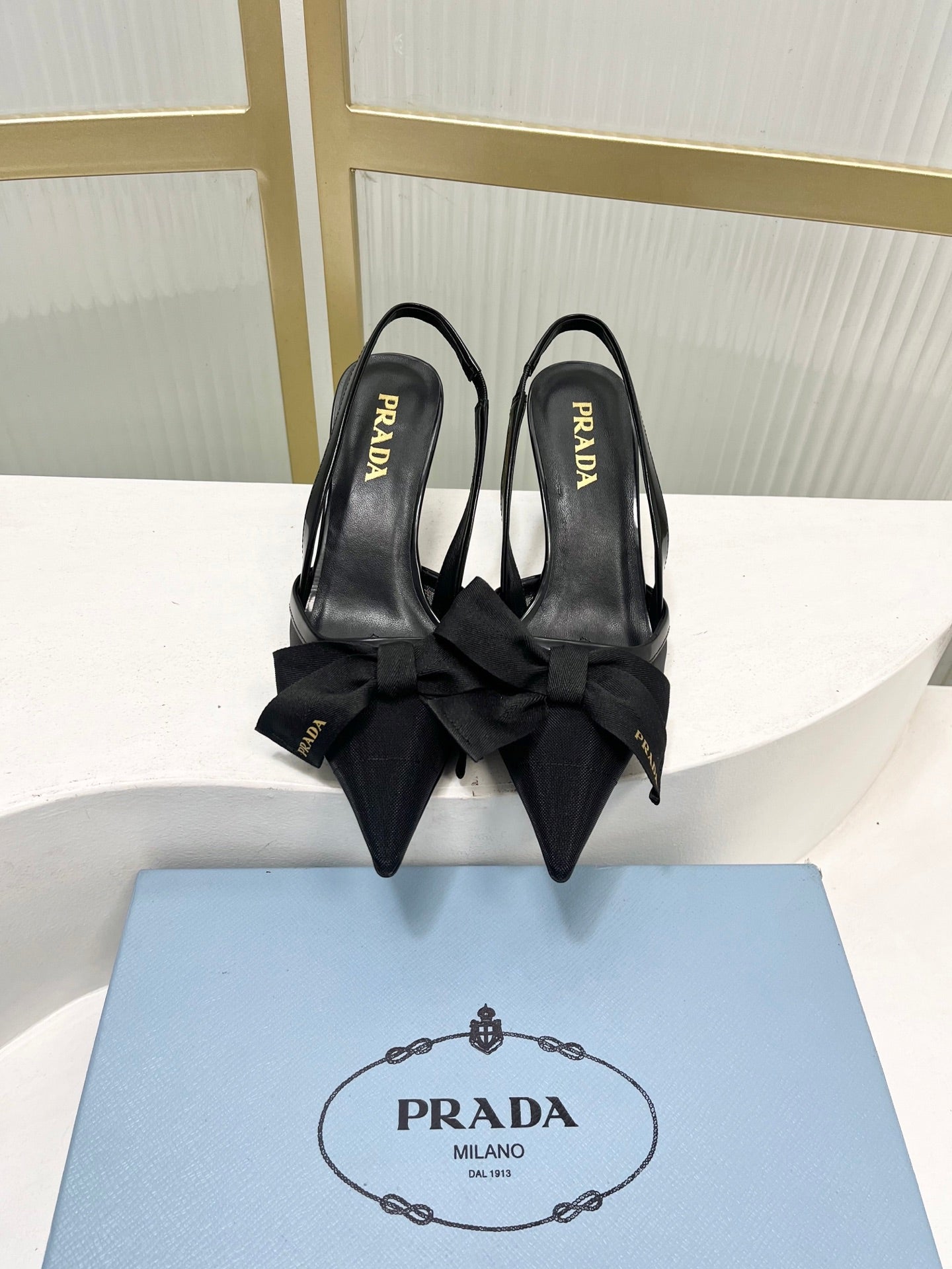 Prada Mesh Stiletto Sandals 7.5 Black Sheepskin 606008