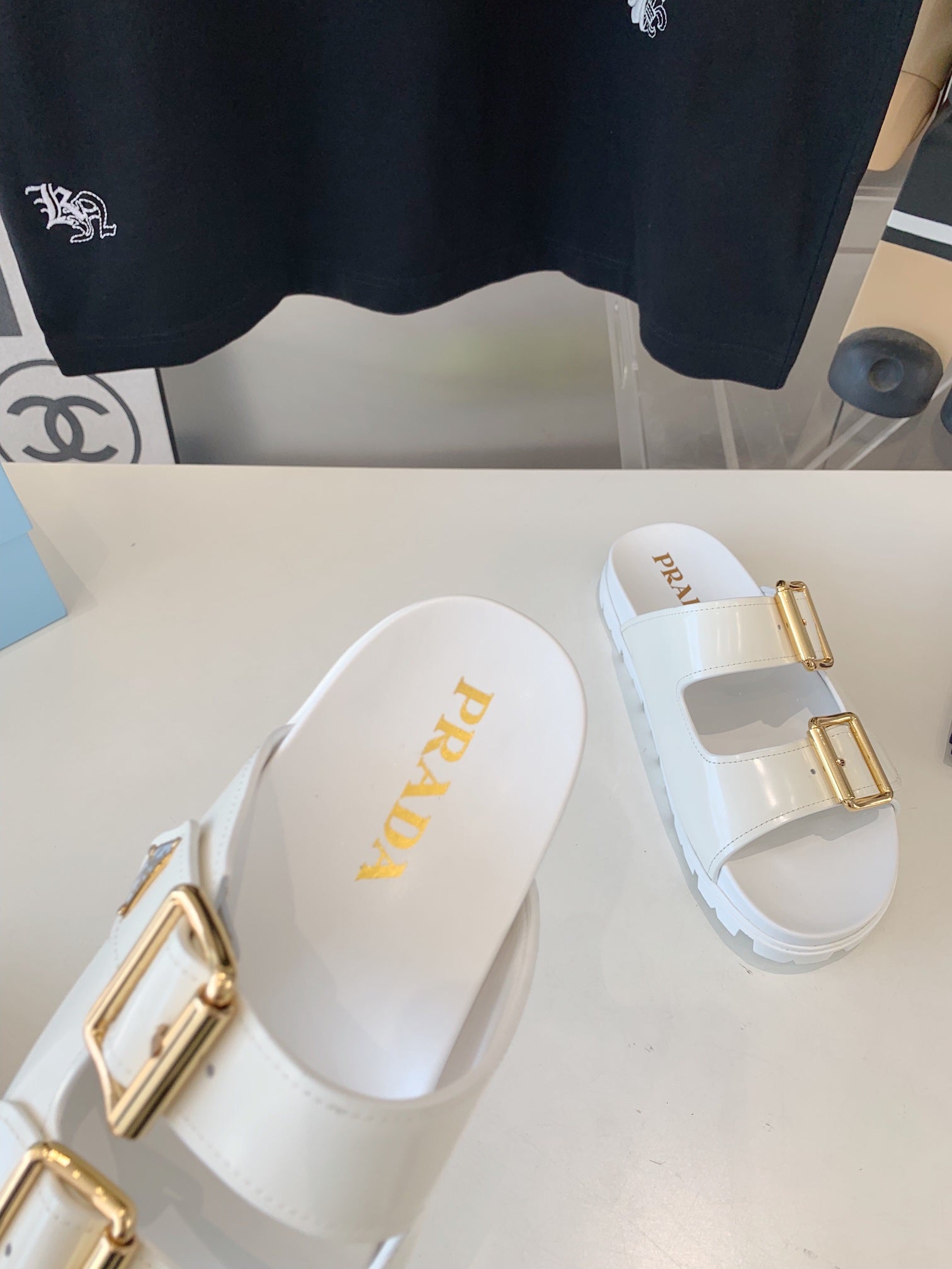 PRA STRAP SLIDES SANDALS WHITE LAMBSKIN