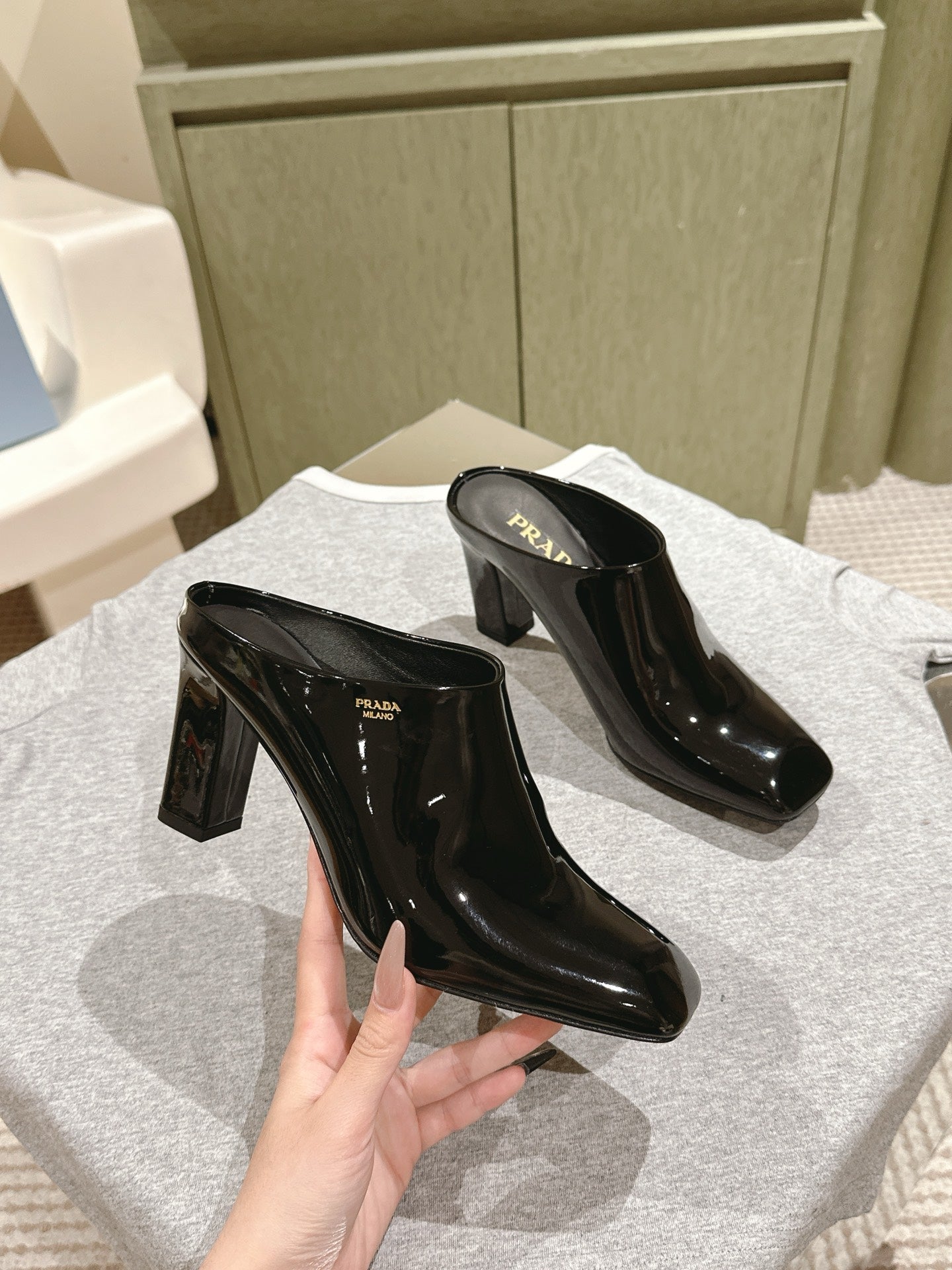 Prada Mules 85mm Black Patent Leather 449617