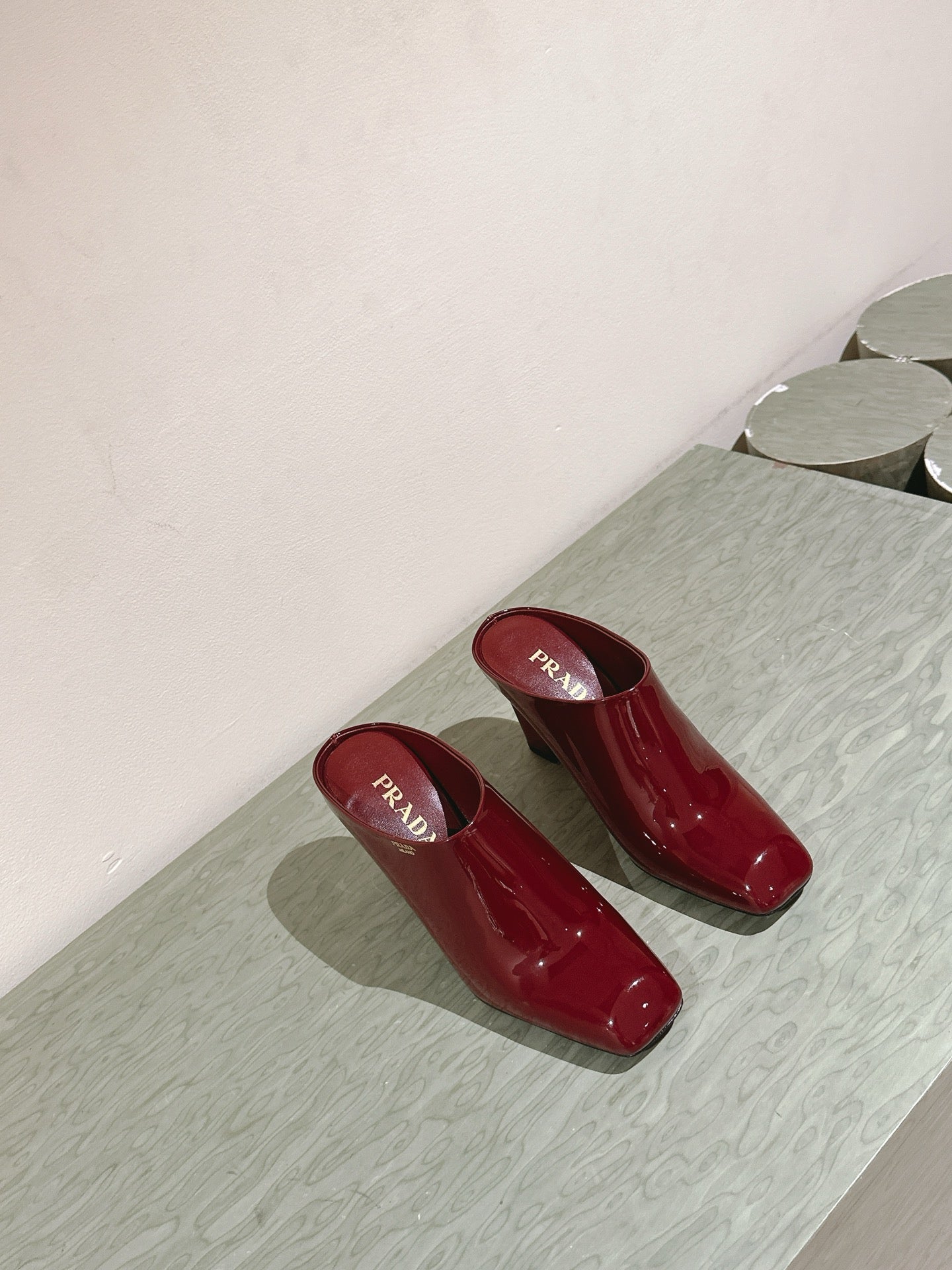 Prada Mules 85mm Burgundy Patent Leather 449618