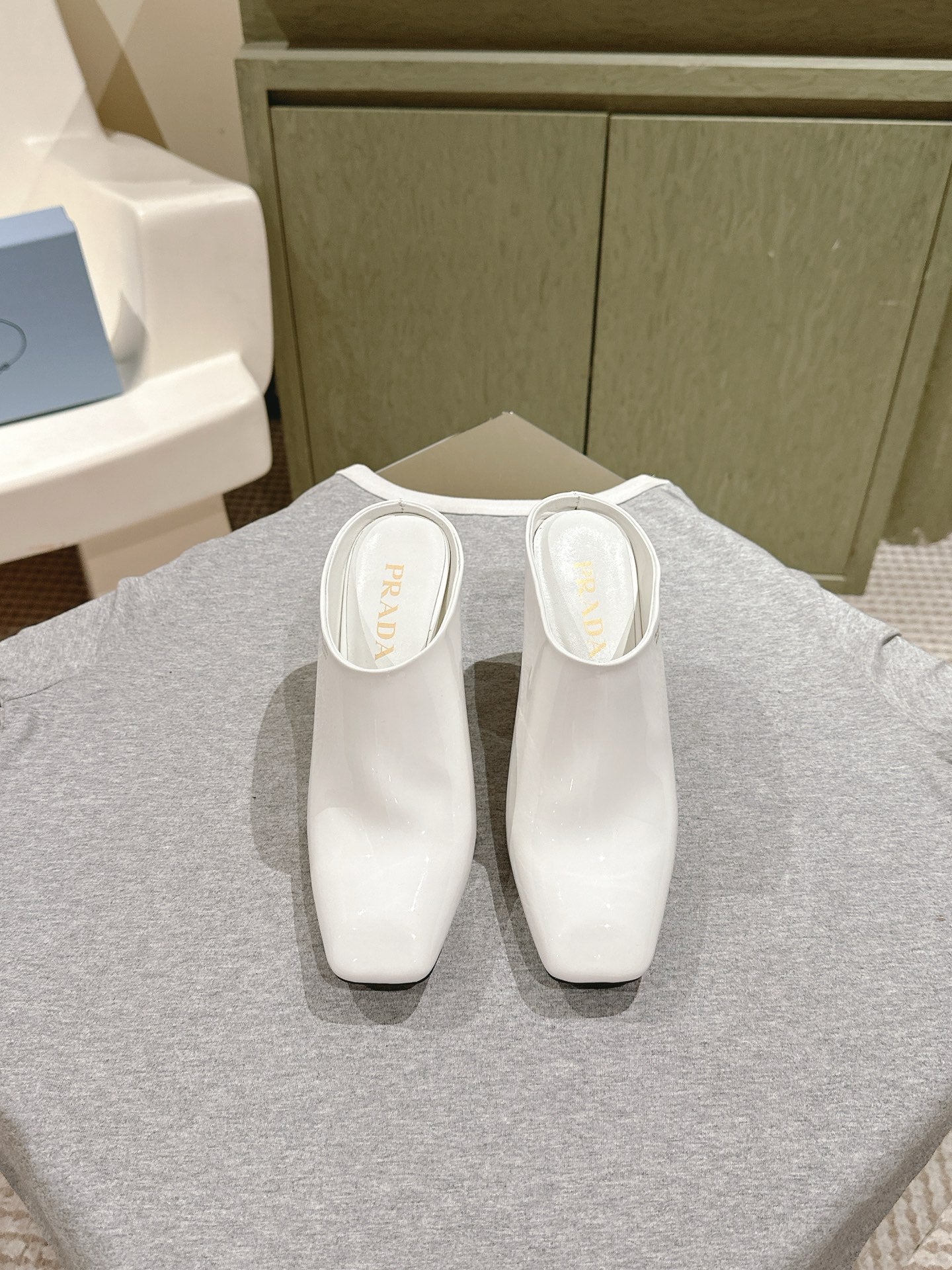 Prada Mules 85mm White Patent Leather 449619