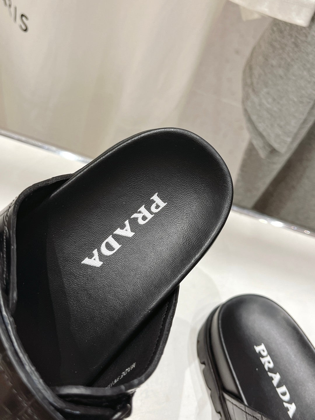 PRA STRAP SLIDES SANDALS BLACK LAMBSKIN