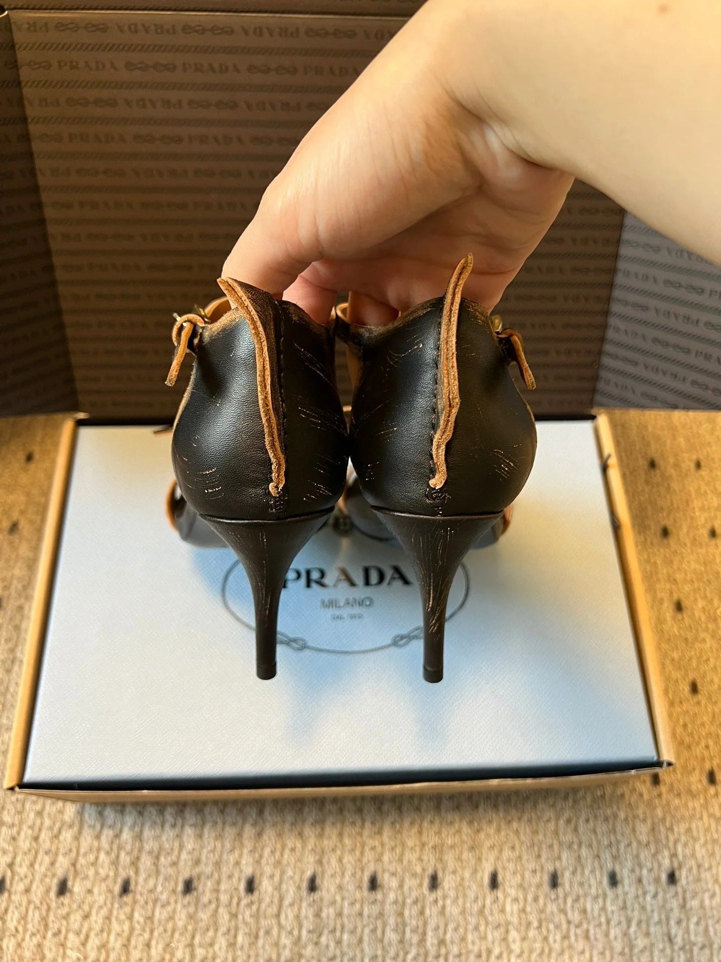 PRA 26S High-Heeled Sandals 75 Black Brown Cowhide 627444