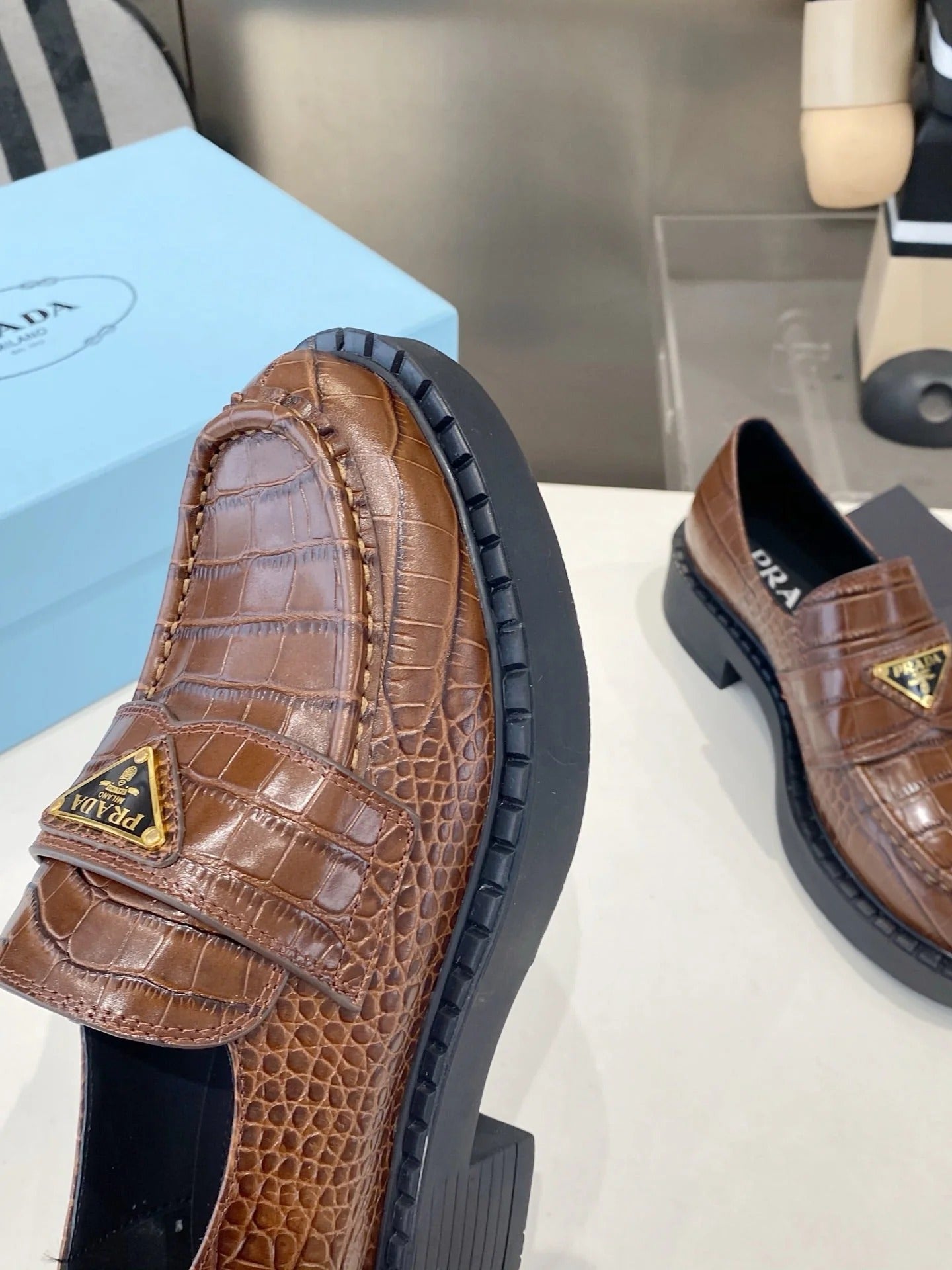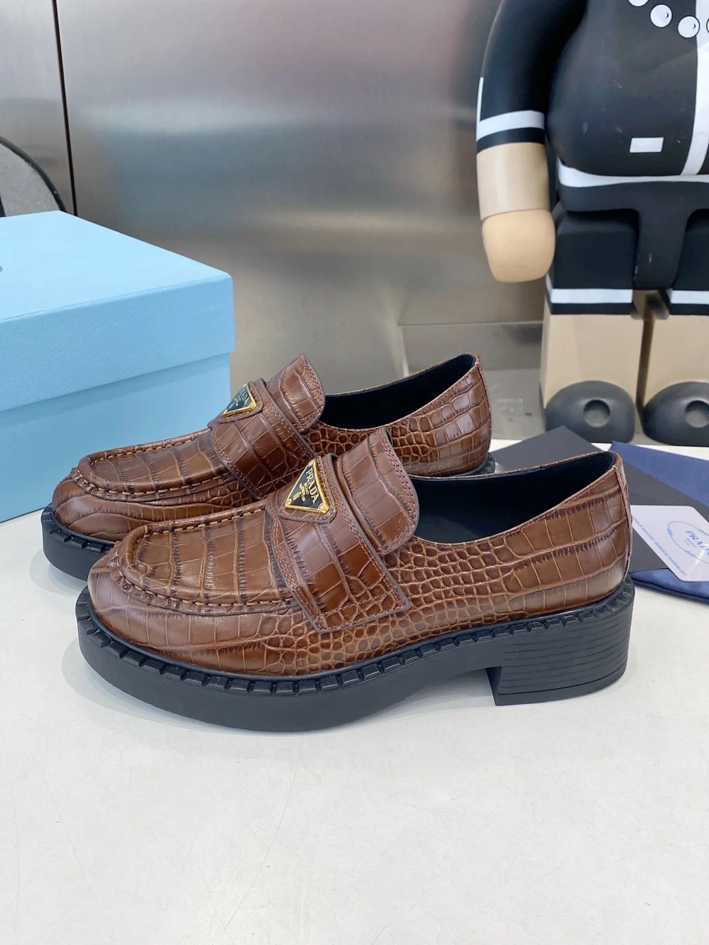 PRA 26S Platform Loafers Brown Crocodile Leather 628560