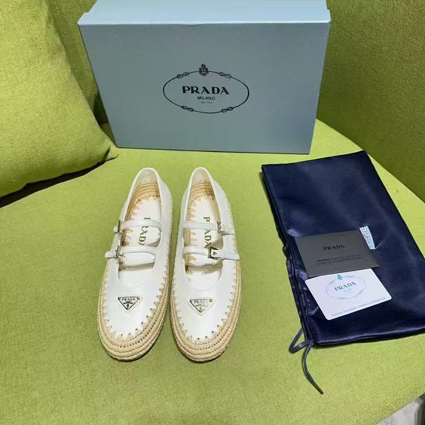 Pra Ballerinas Ivory Nappa Leather And Raffia