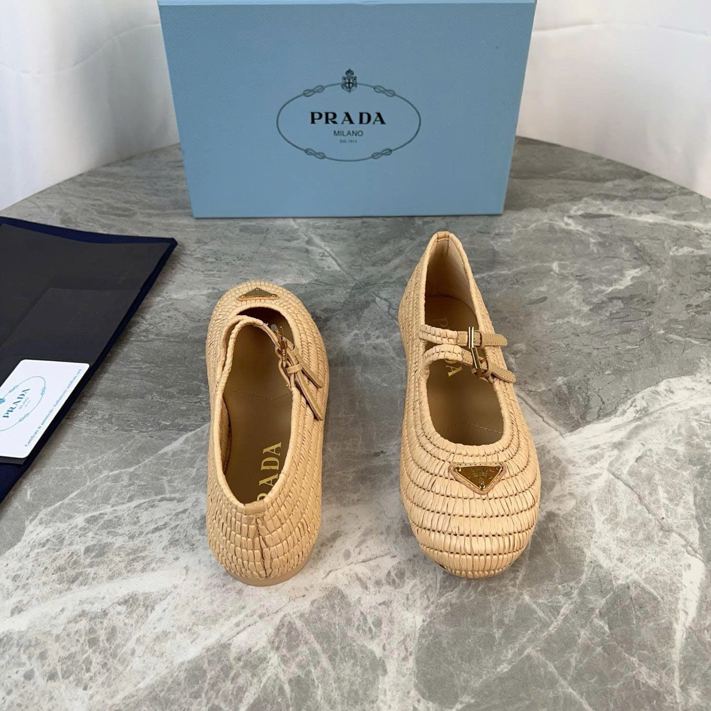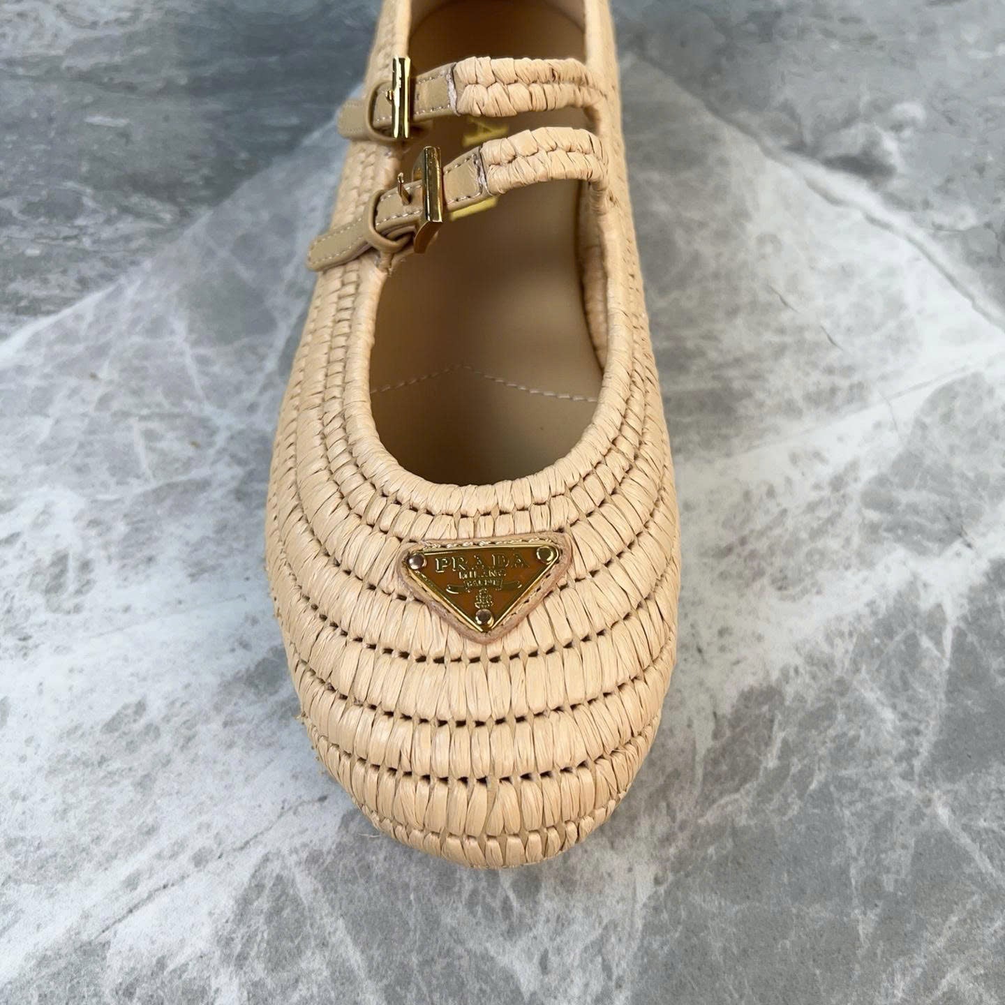 Pra Crochet Ballerinas Flats In Beige Raffia