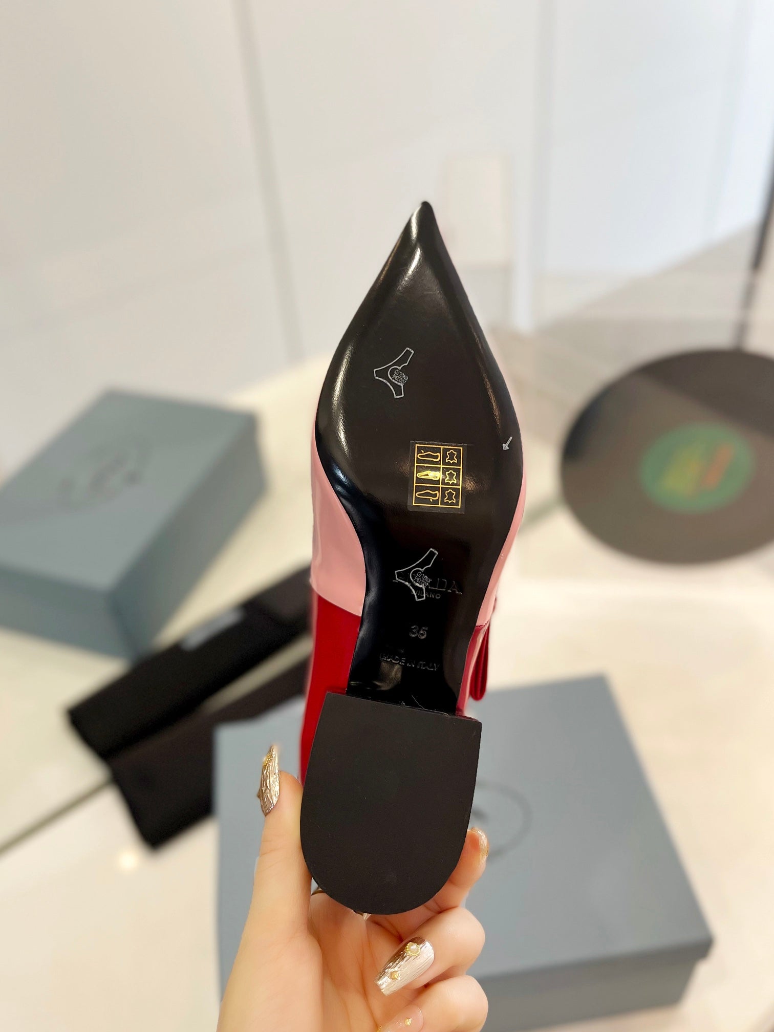 Pra Pump 45 Square Sole Pink Red Patent Leather