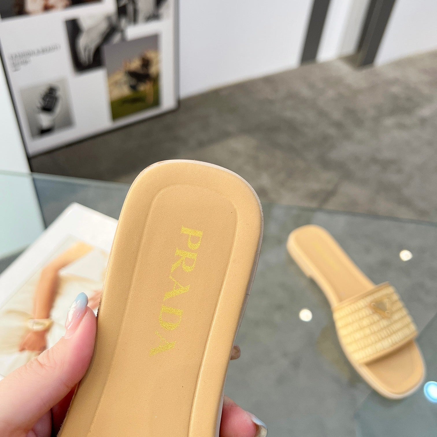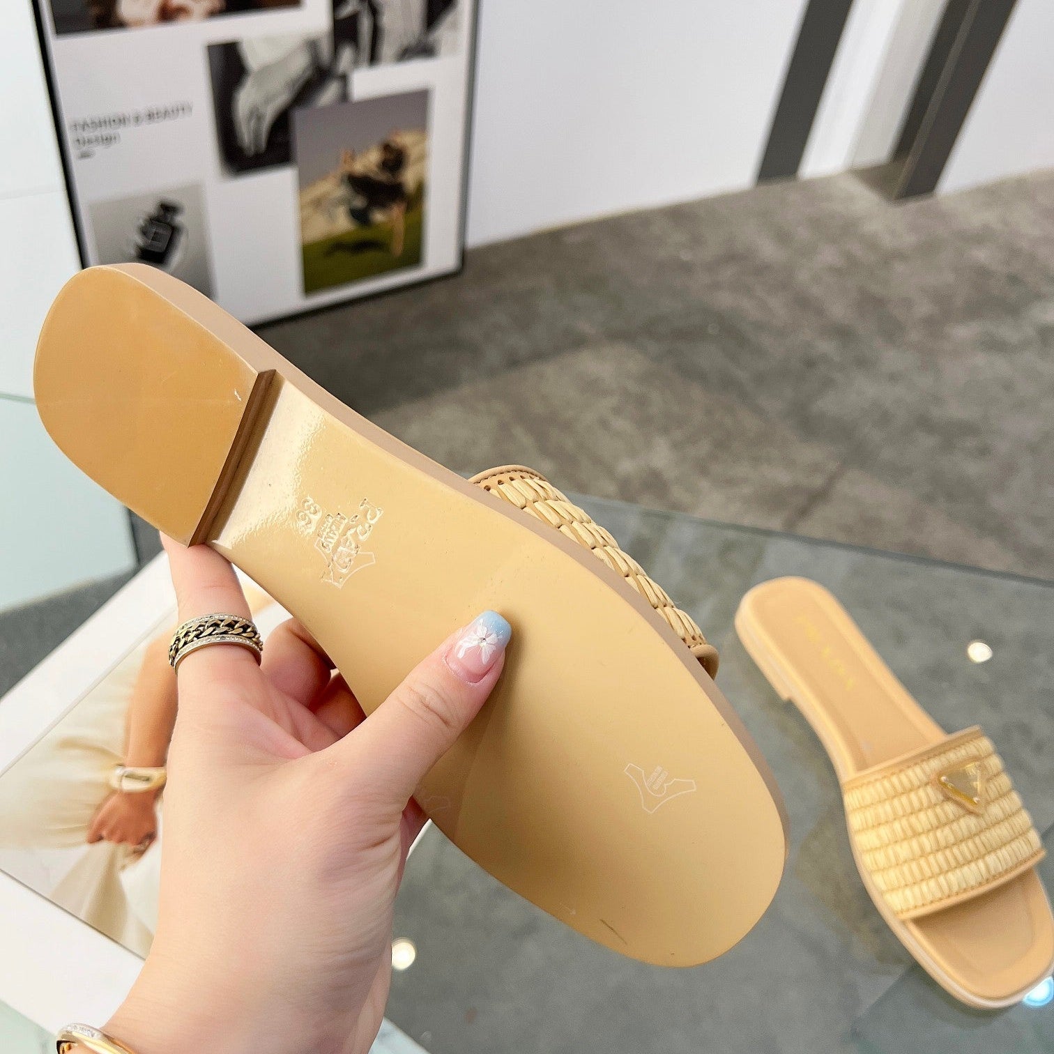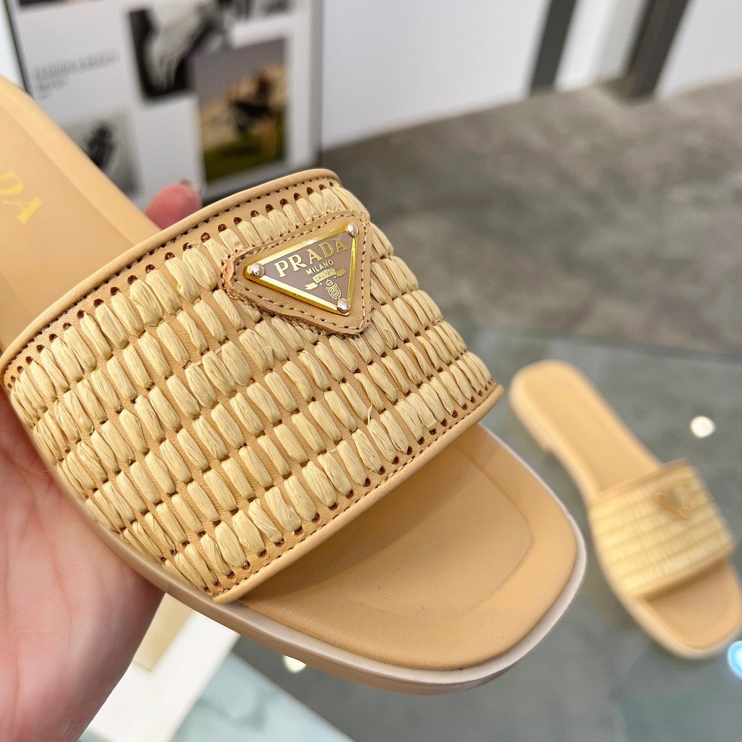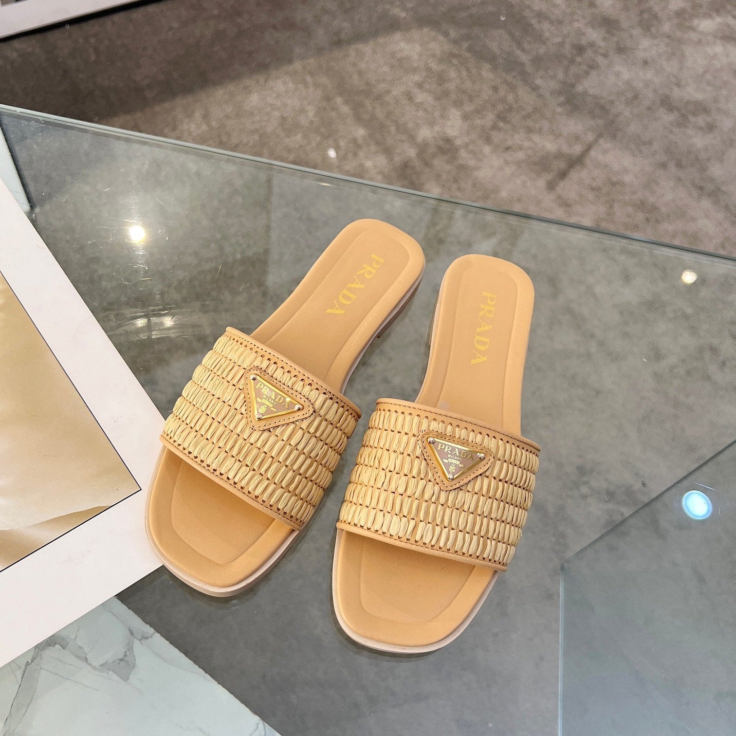 Prada 25 Slipper Beige Raffia Calfskin 177633