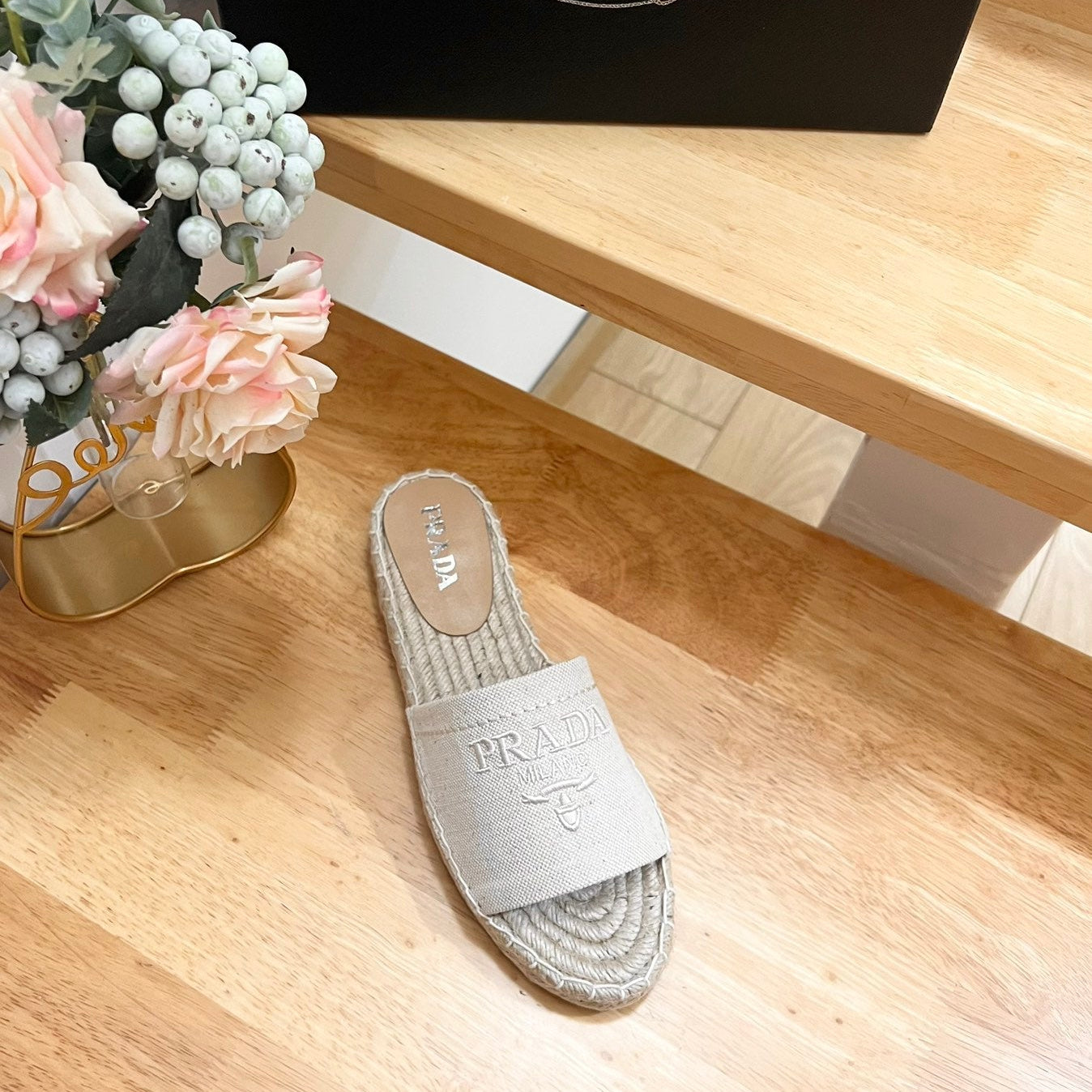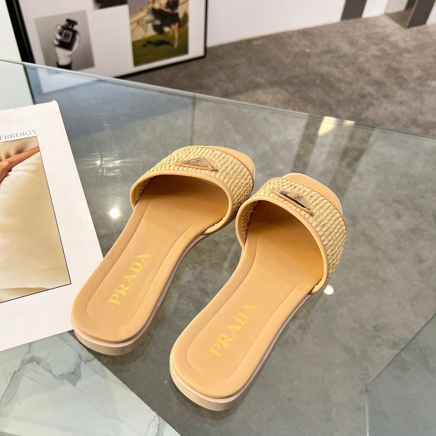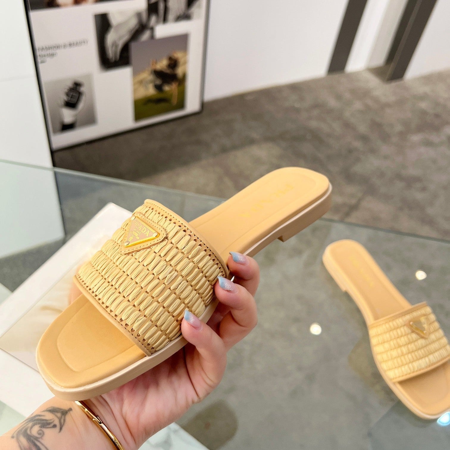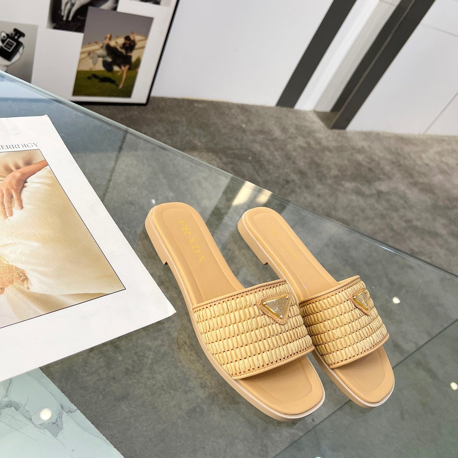 Prada 25 Slipper Beige Raffia Calfskin 177633