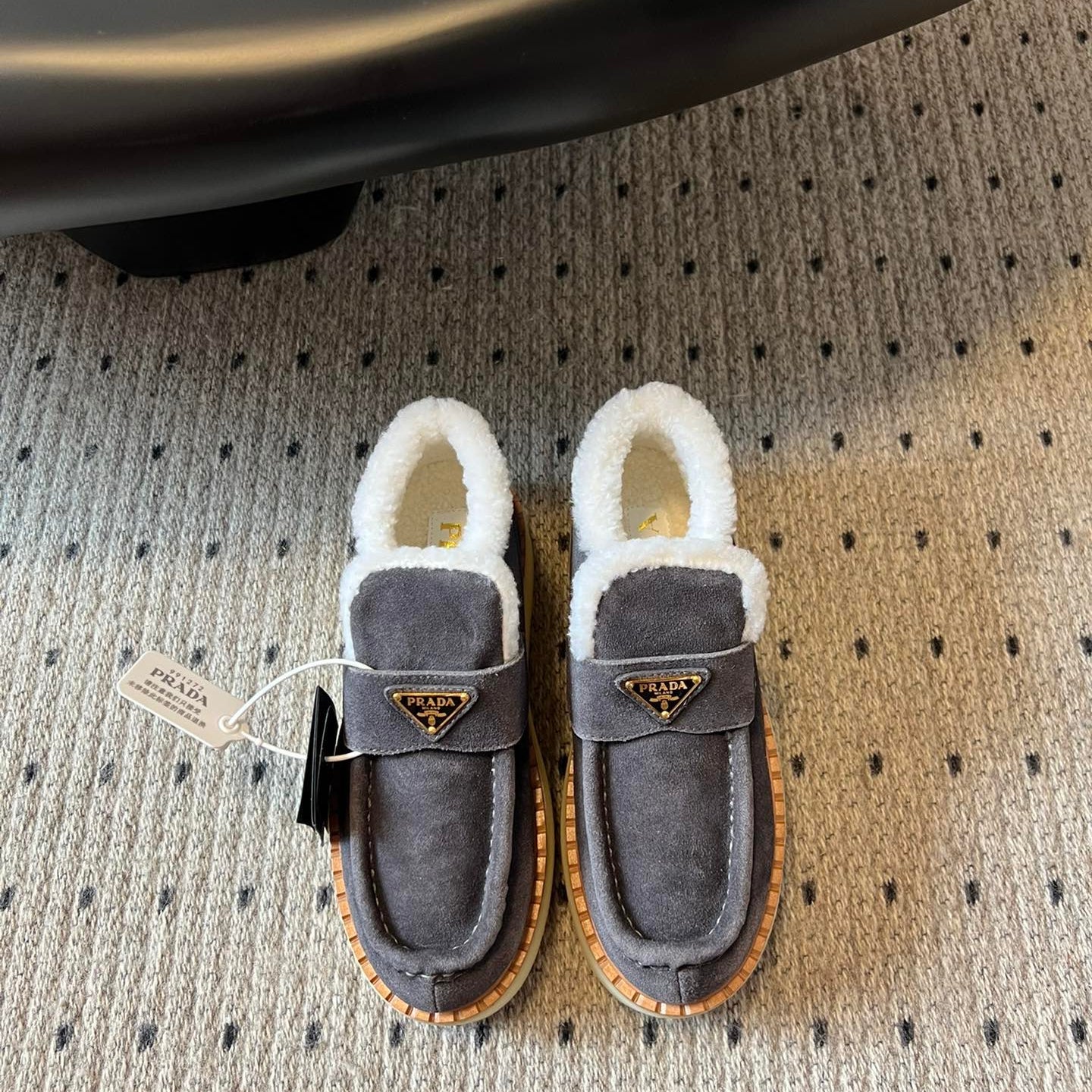 Prada 25s platform ankle boots dark gray suede and wool 538441