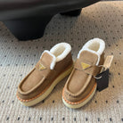 Prada 25s platform ankle boots light brown suede and wool 538440