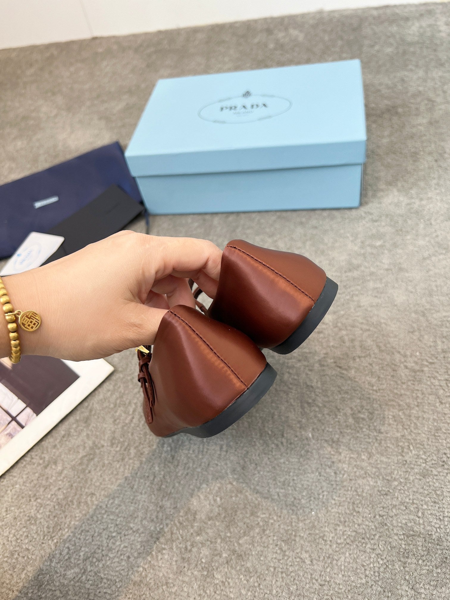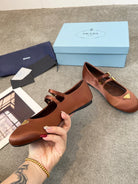 Prada 25th Double Strap Ballet Flats Brown Satin 564122