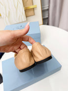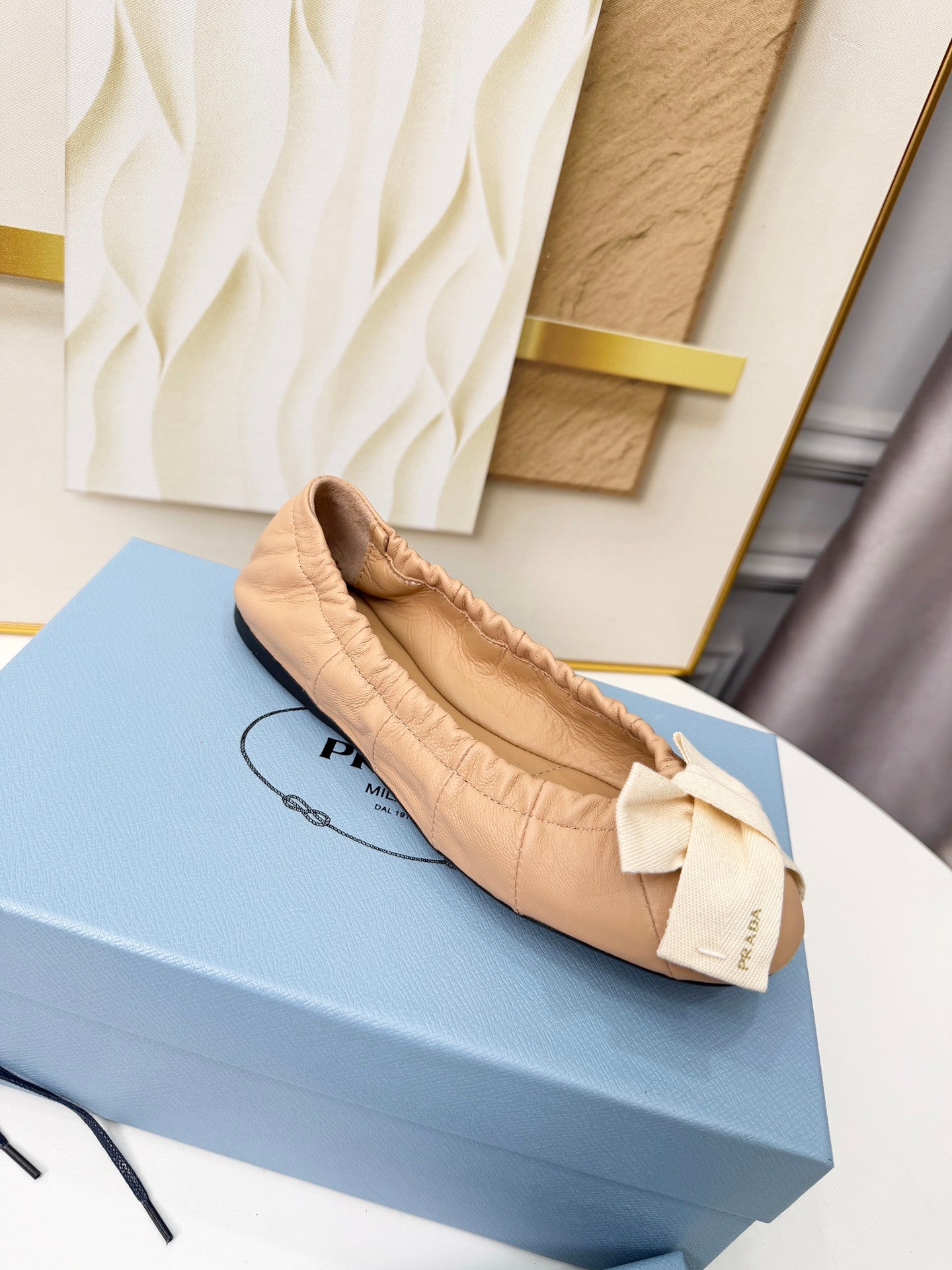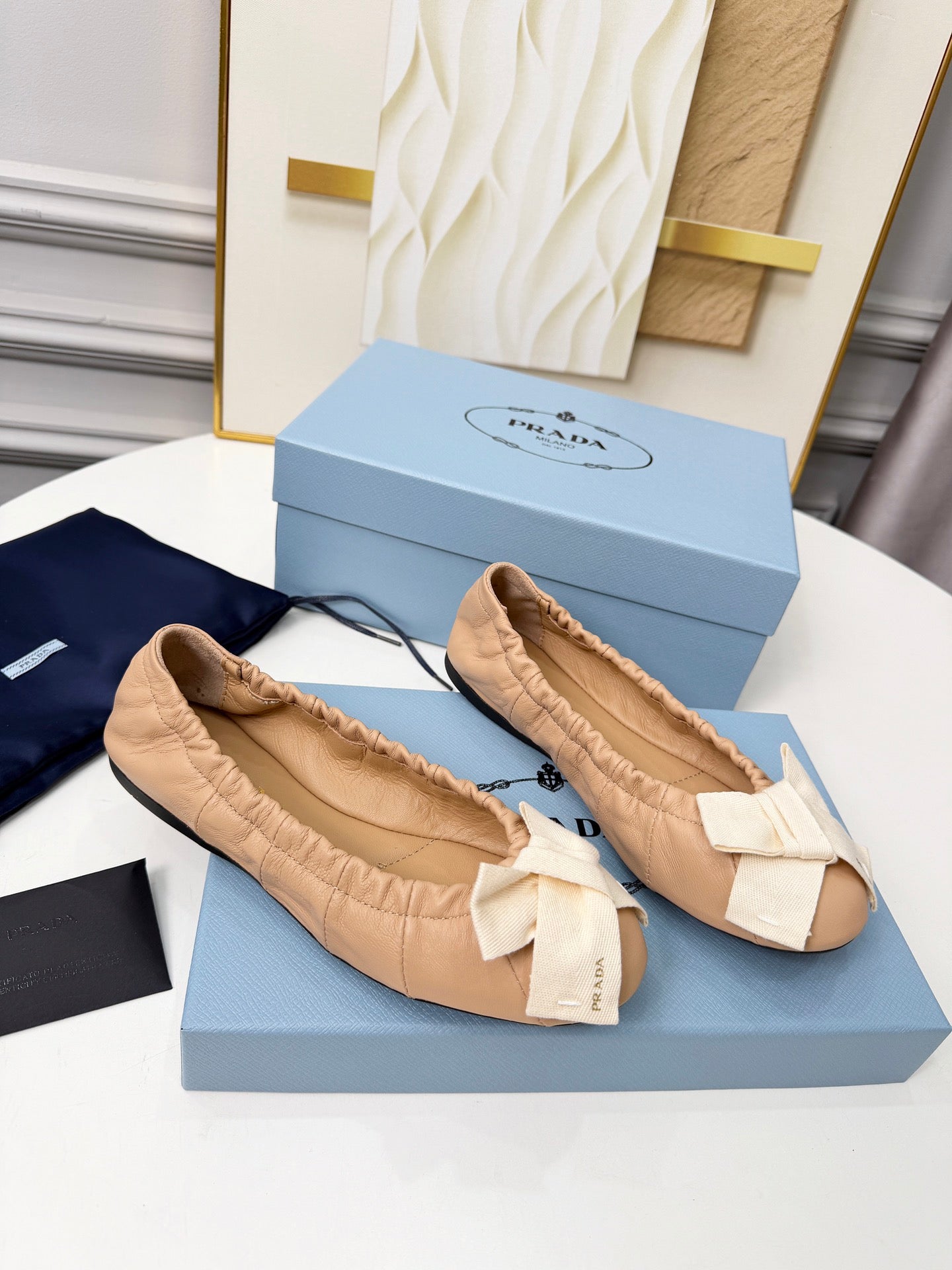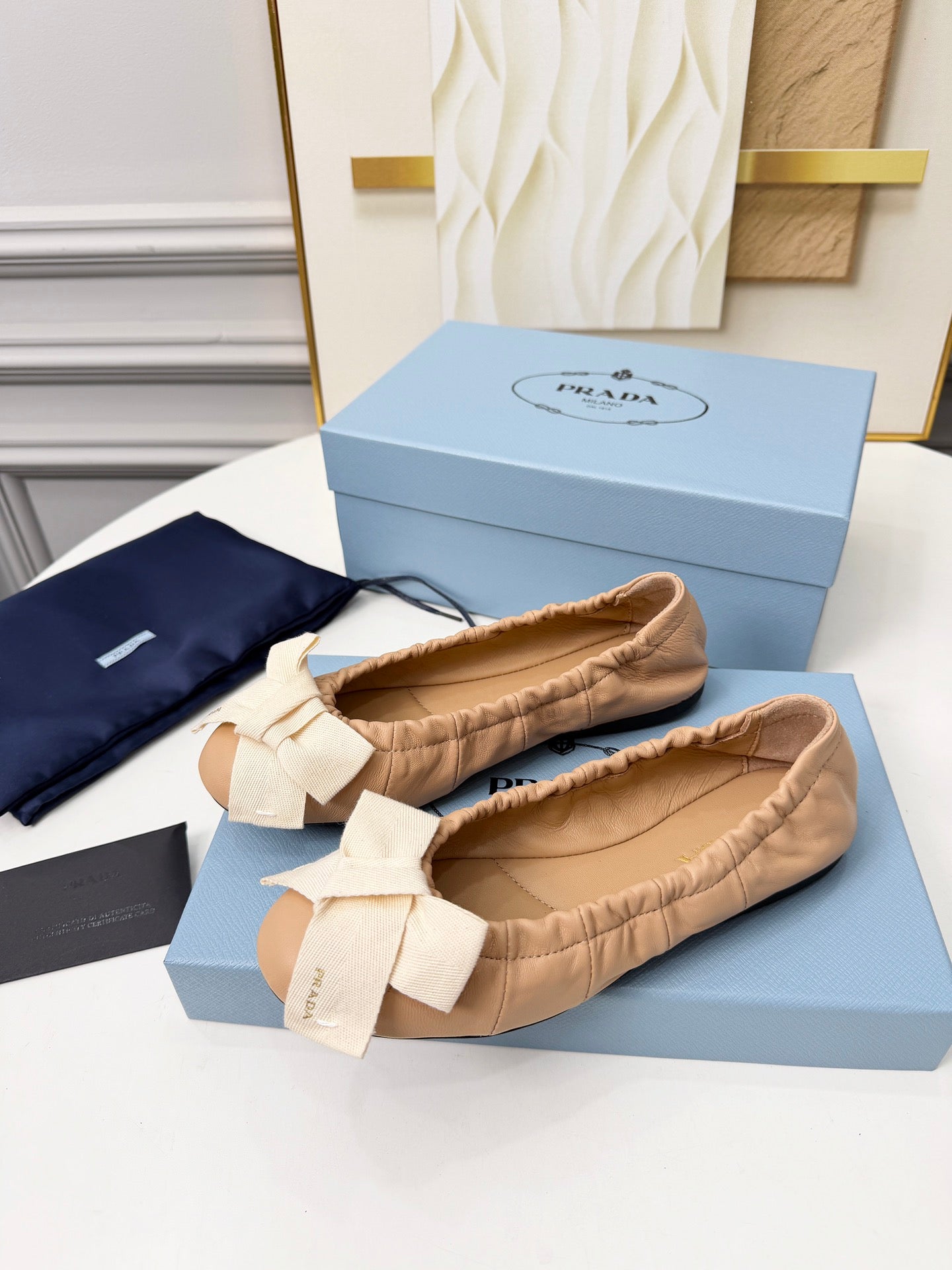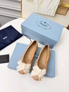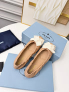 Prada 26s Bow Ballet Flats Beige White Sheepskin 624086