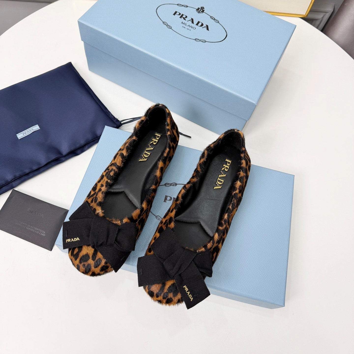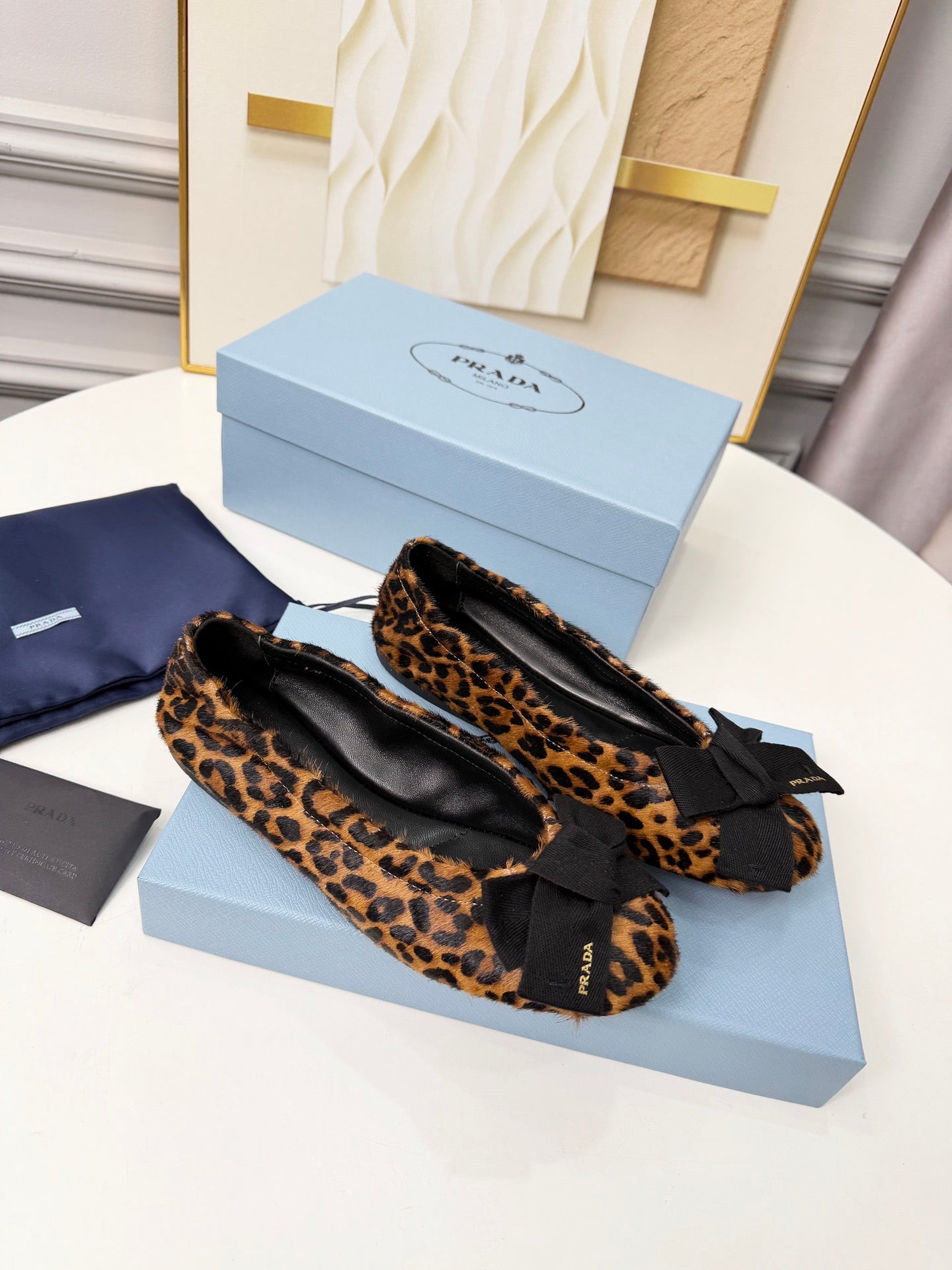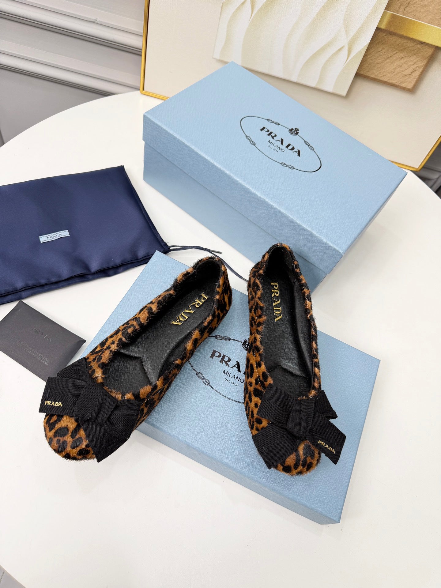 Prada 26s Bow Ballet Flats Leopard Horse Hair 624085