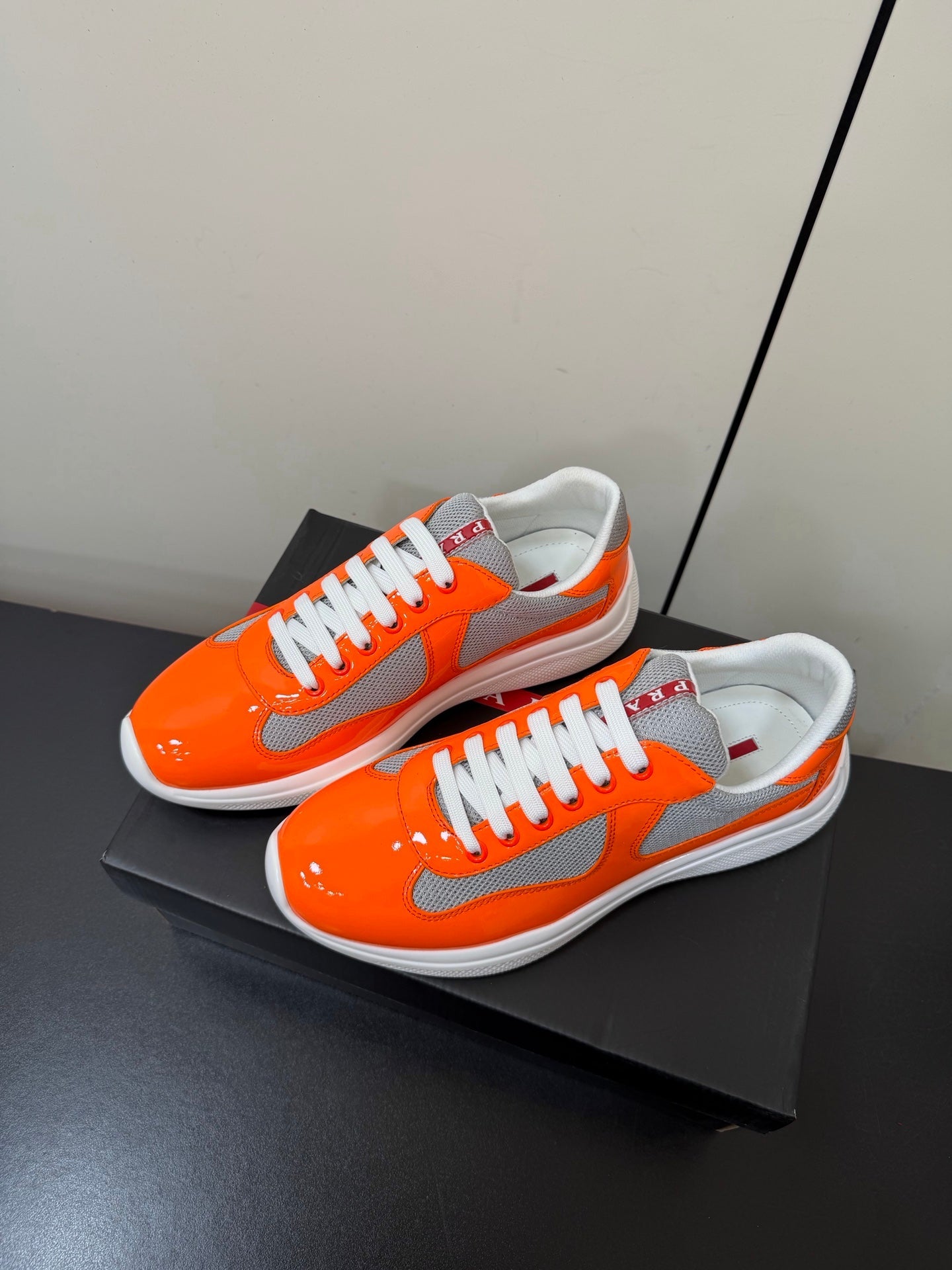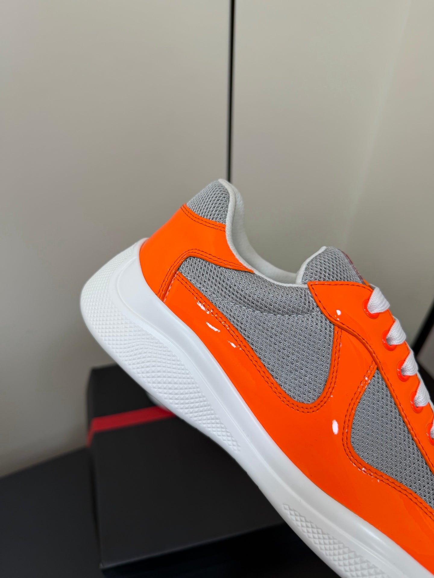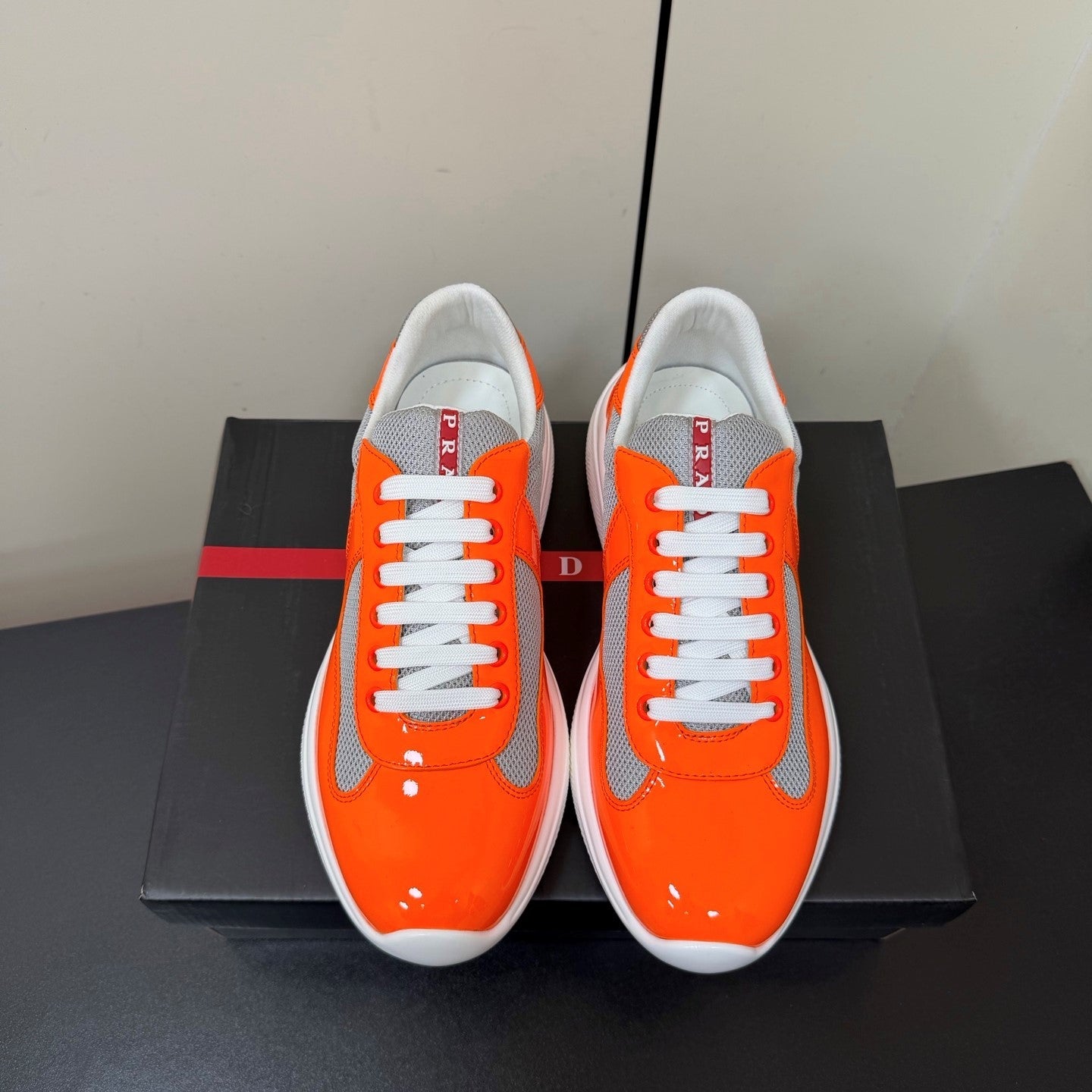 Prada America's Cup Sneaker Orange Patent Leather Mesh 618920
