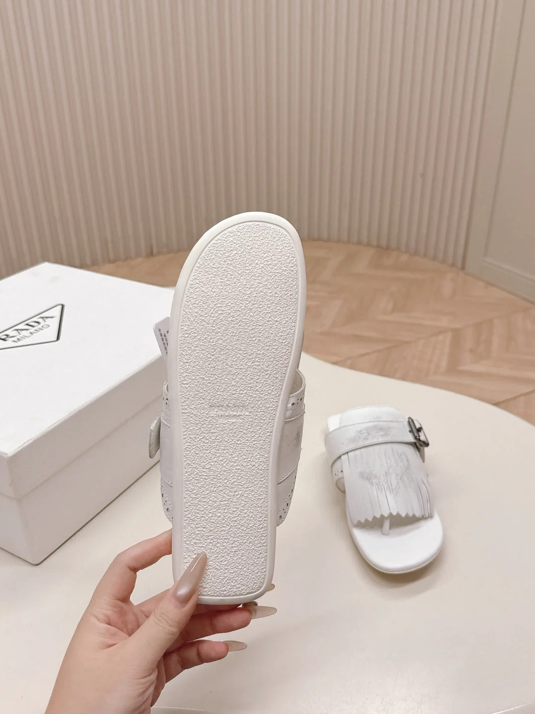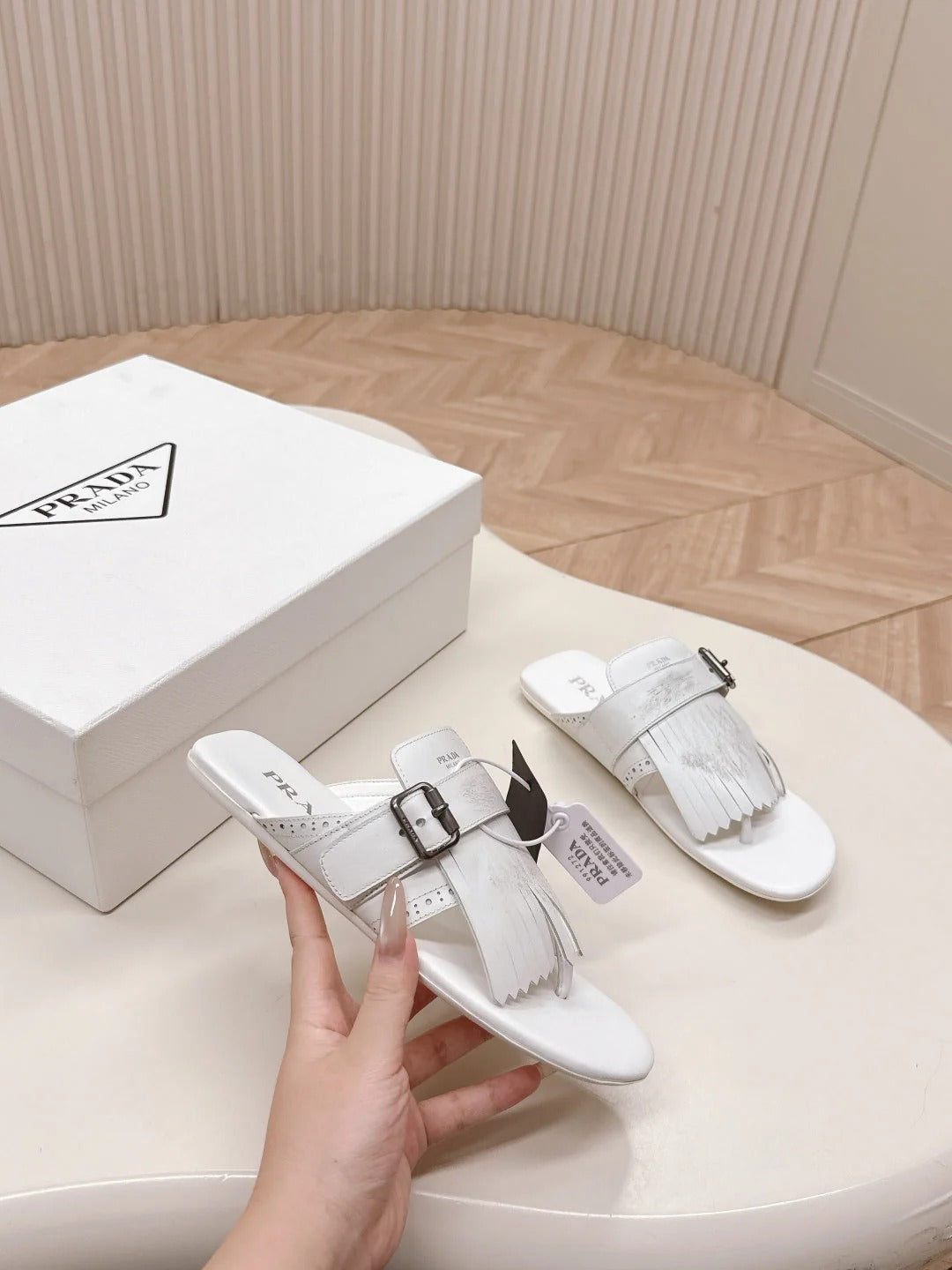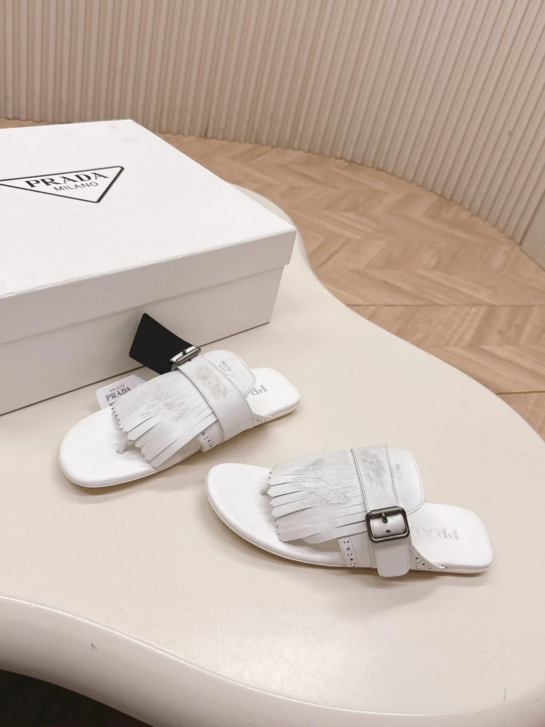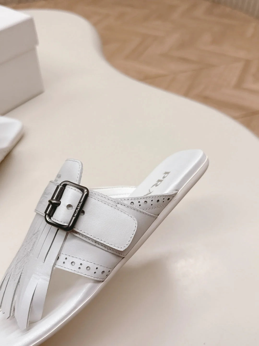 PRA 26S Thong Sandals White Calfskin 600599