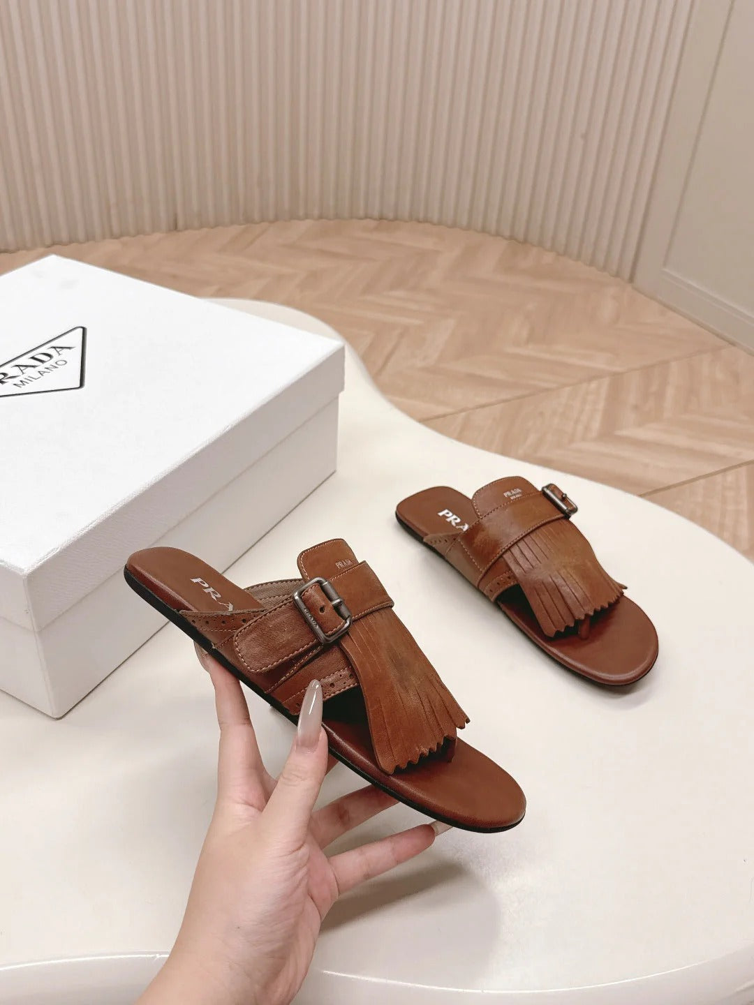 PRA 26S Thong Sandals Brown Calfskin 600598
