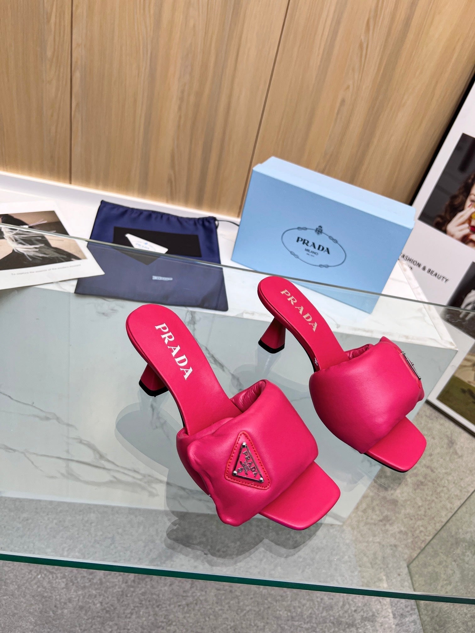 PRA TRIANGLE HEEL SATIN SLIPPERS CRIMSON