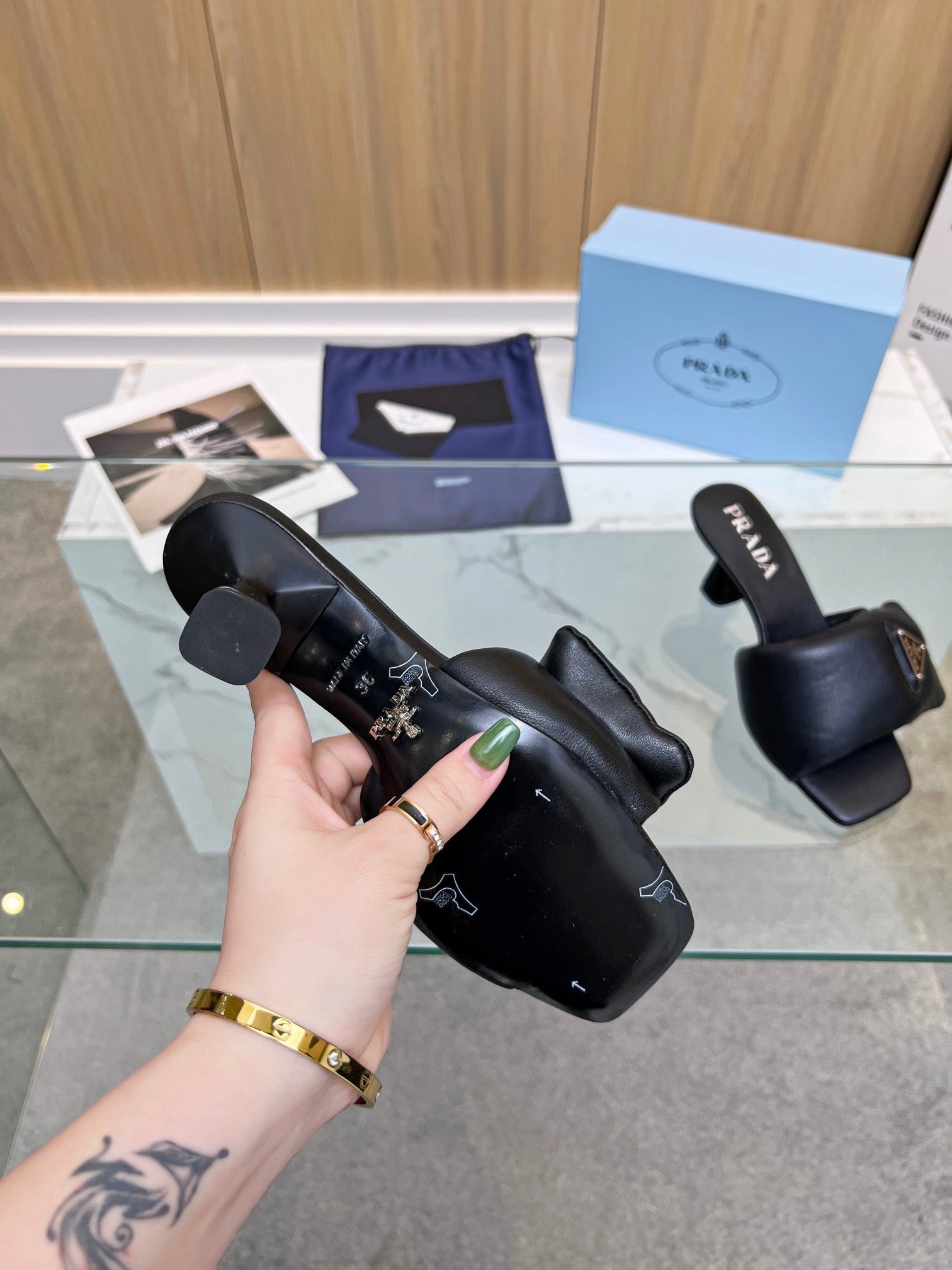 PRA SOFT PADDED NAPPA SHEARLING MULES BLACK LAMBSKIN