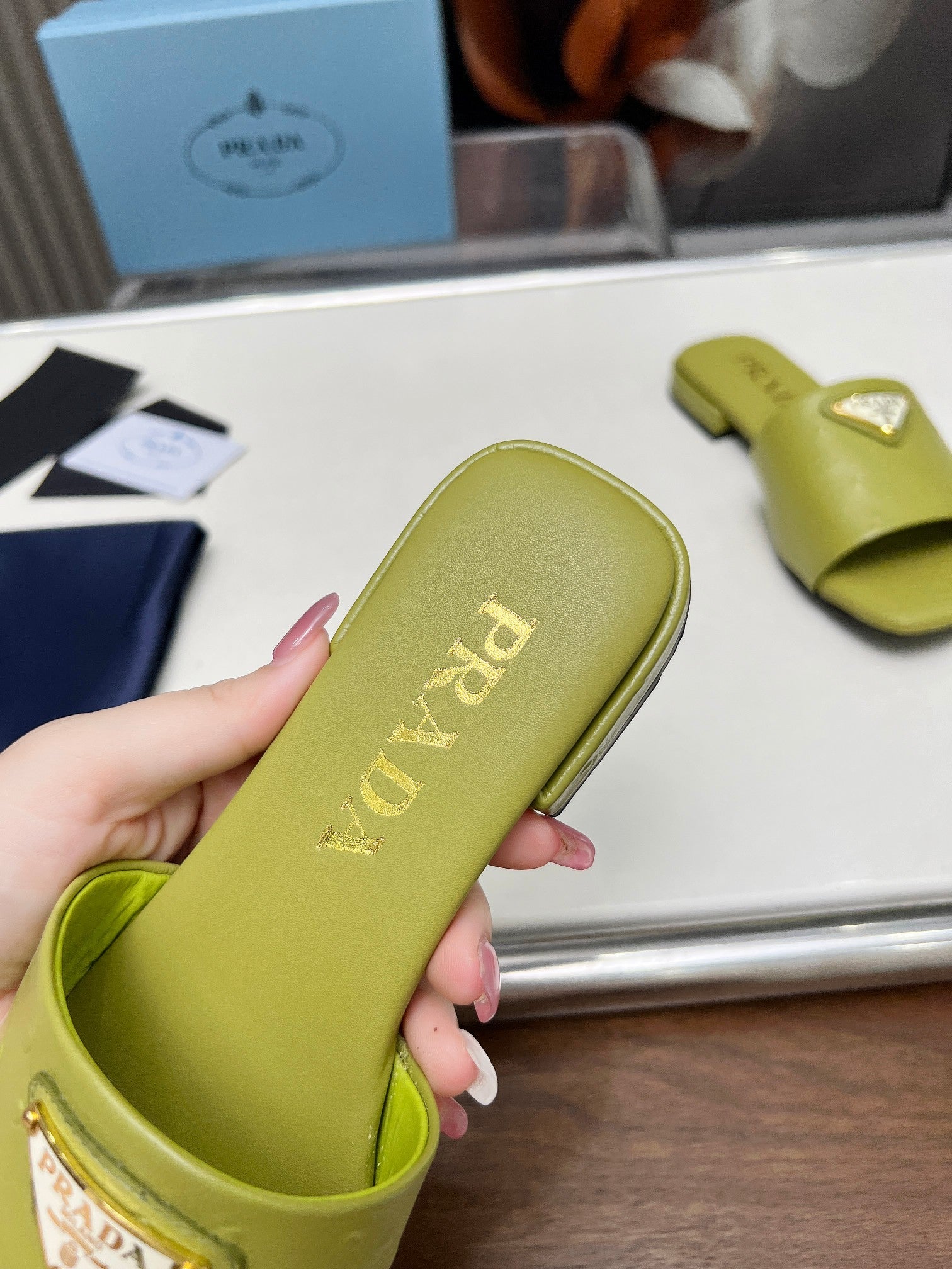PRA SAFFIANO PATENT SLIDES TUSCAN CALFSKIN