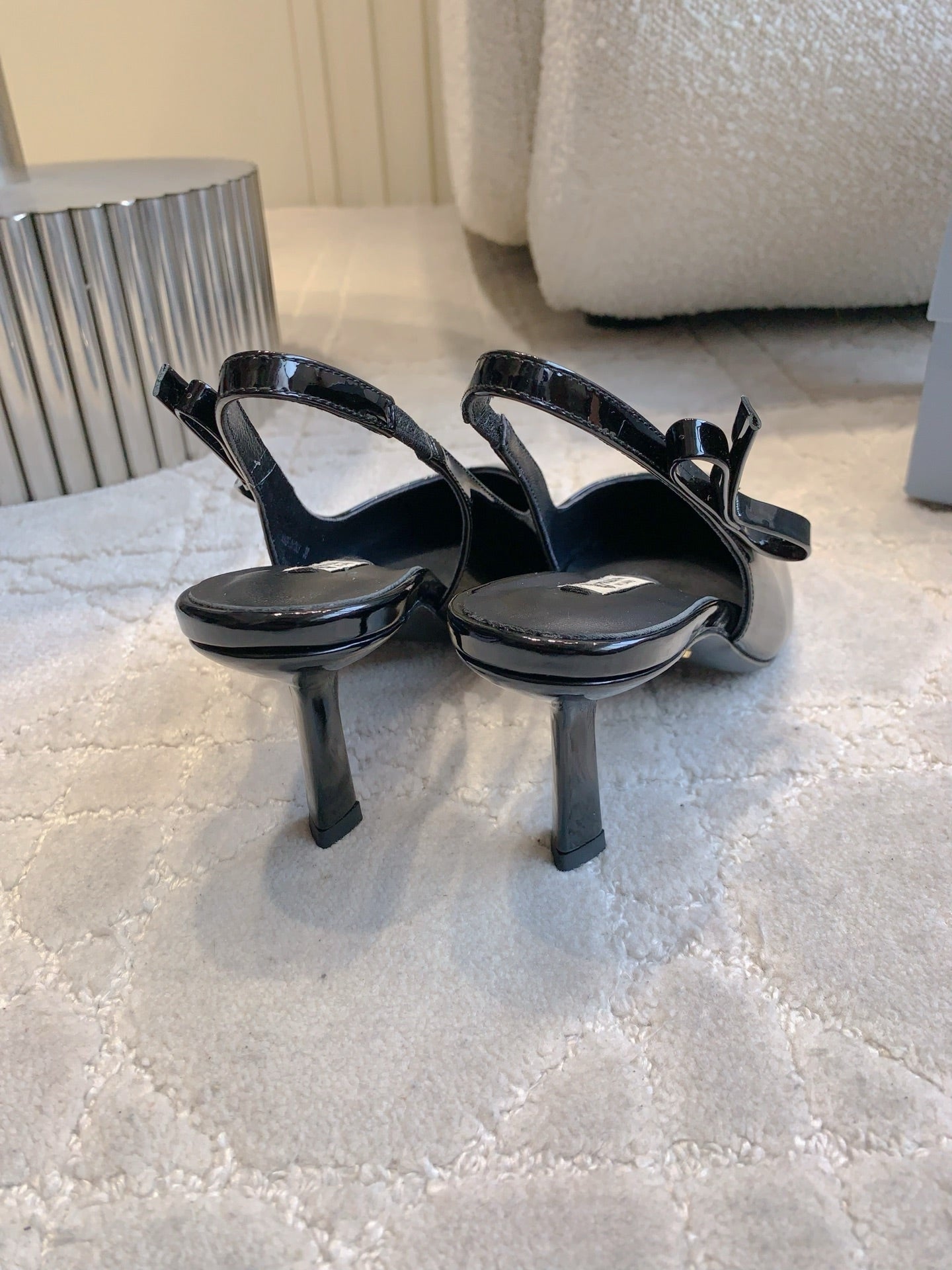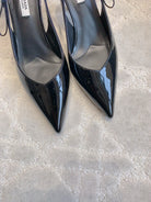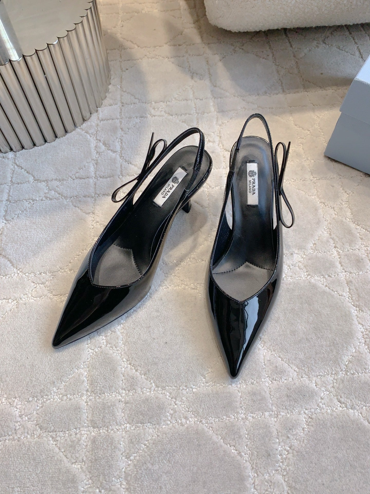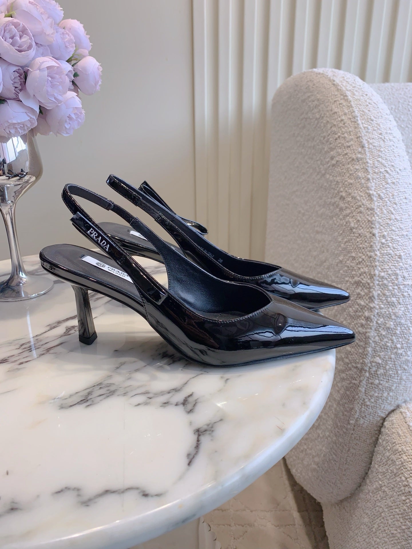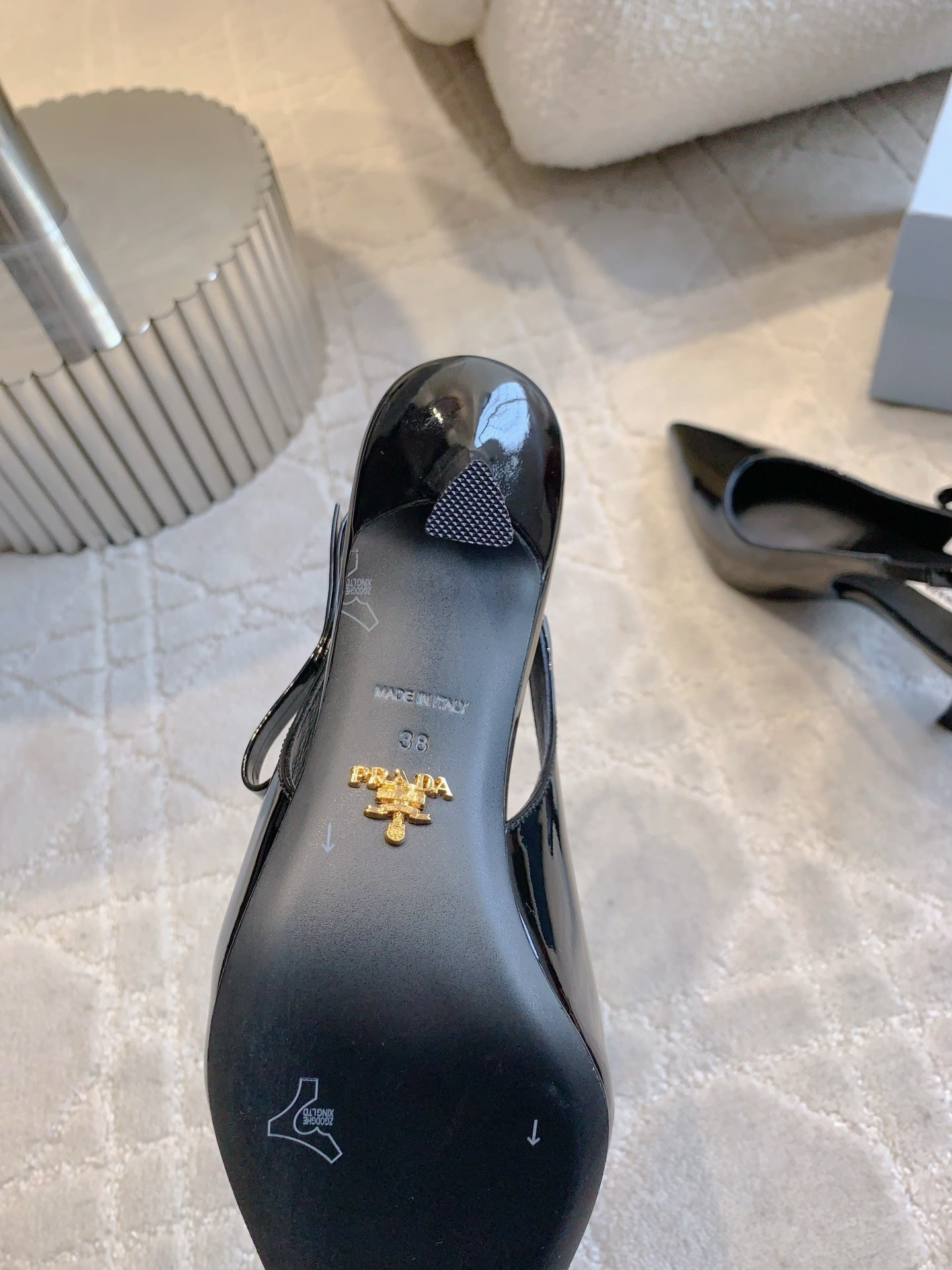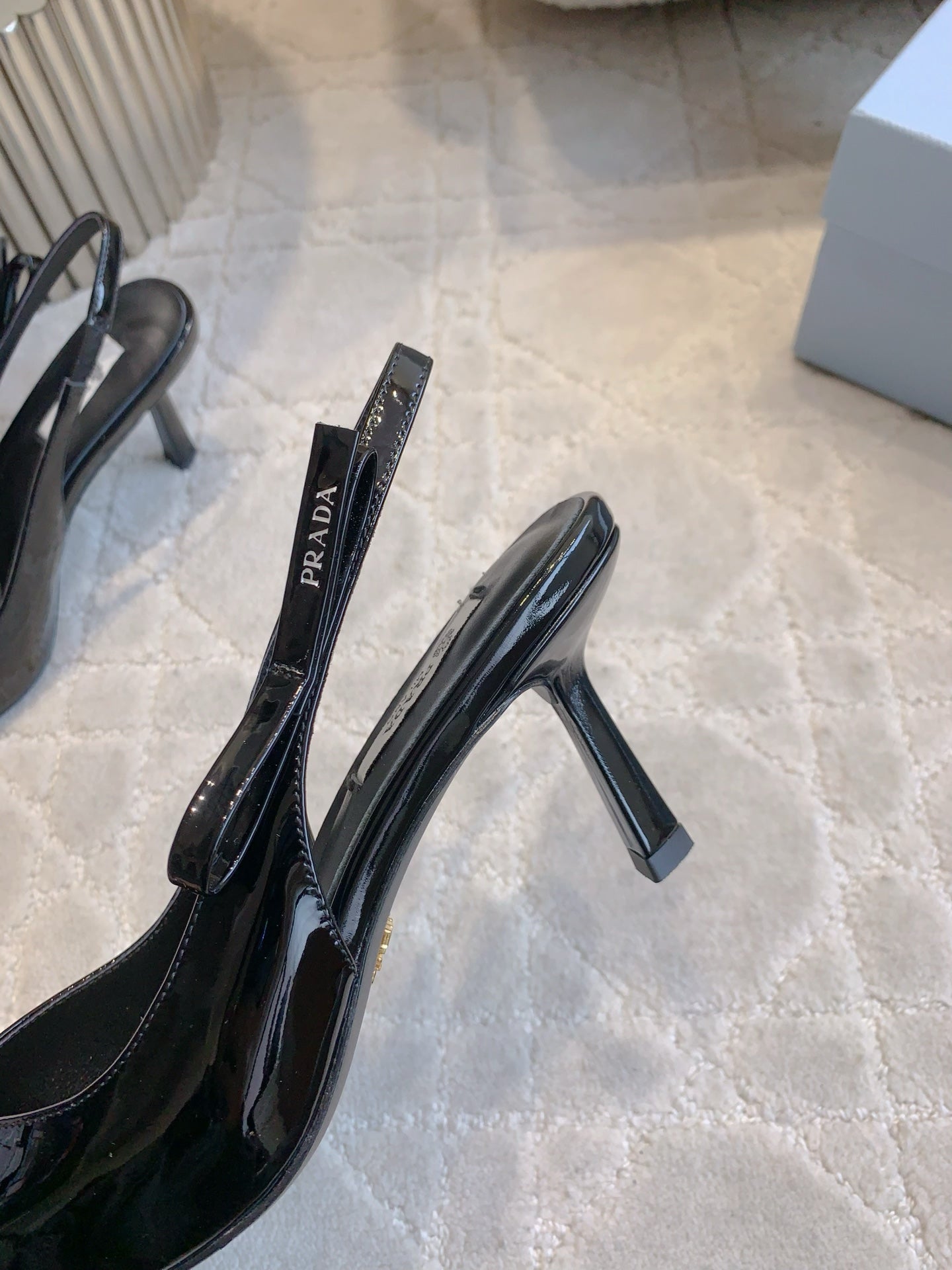 Prada 26s Open-Back High Heels Black Patent Leather 615386