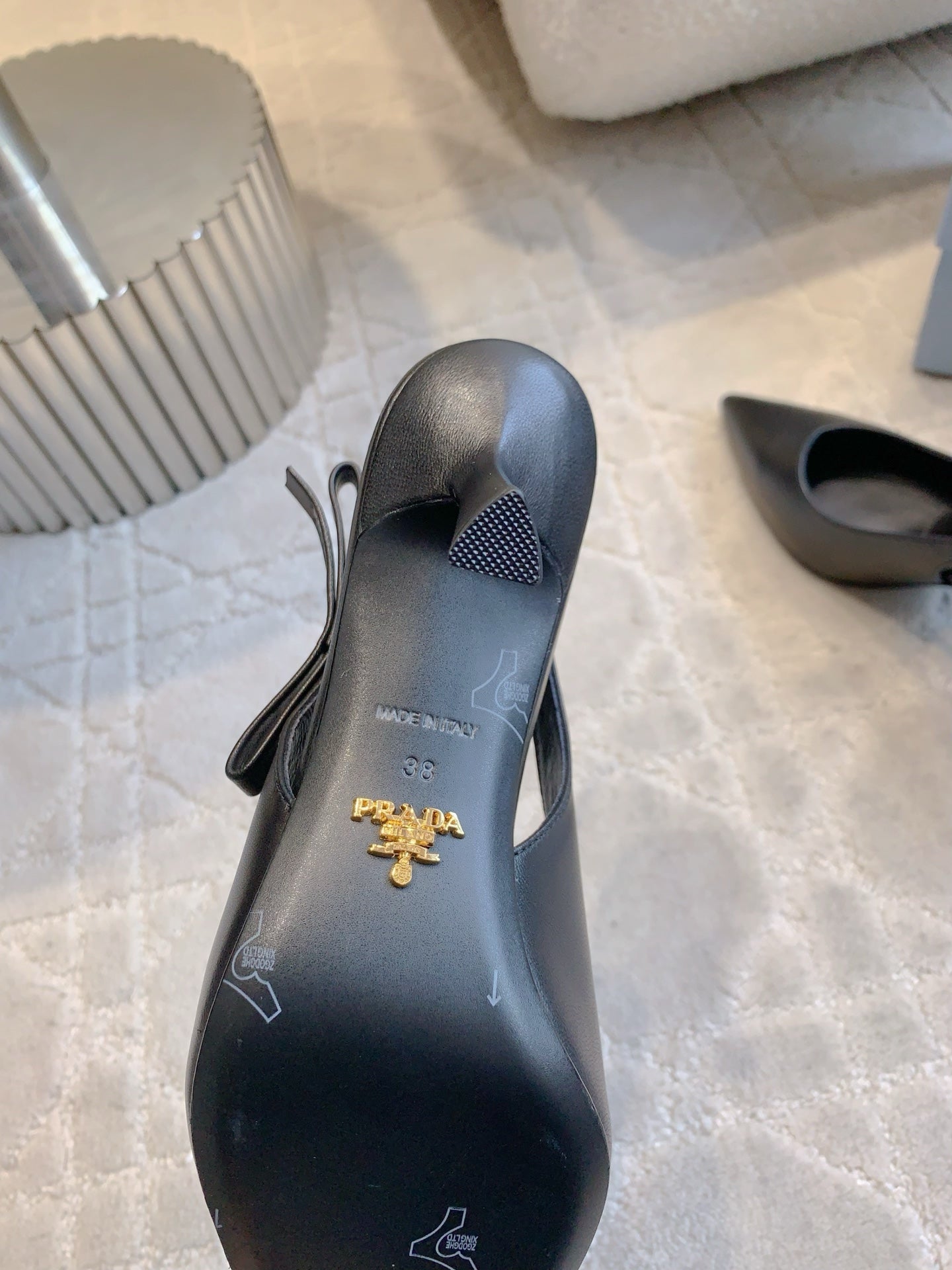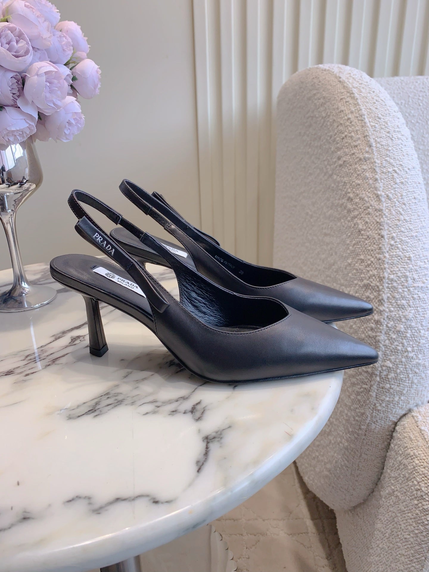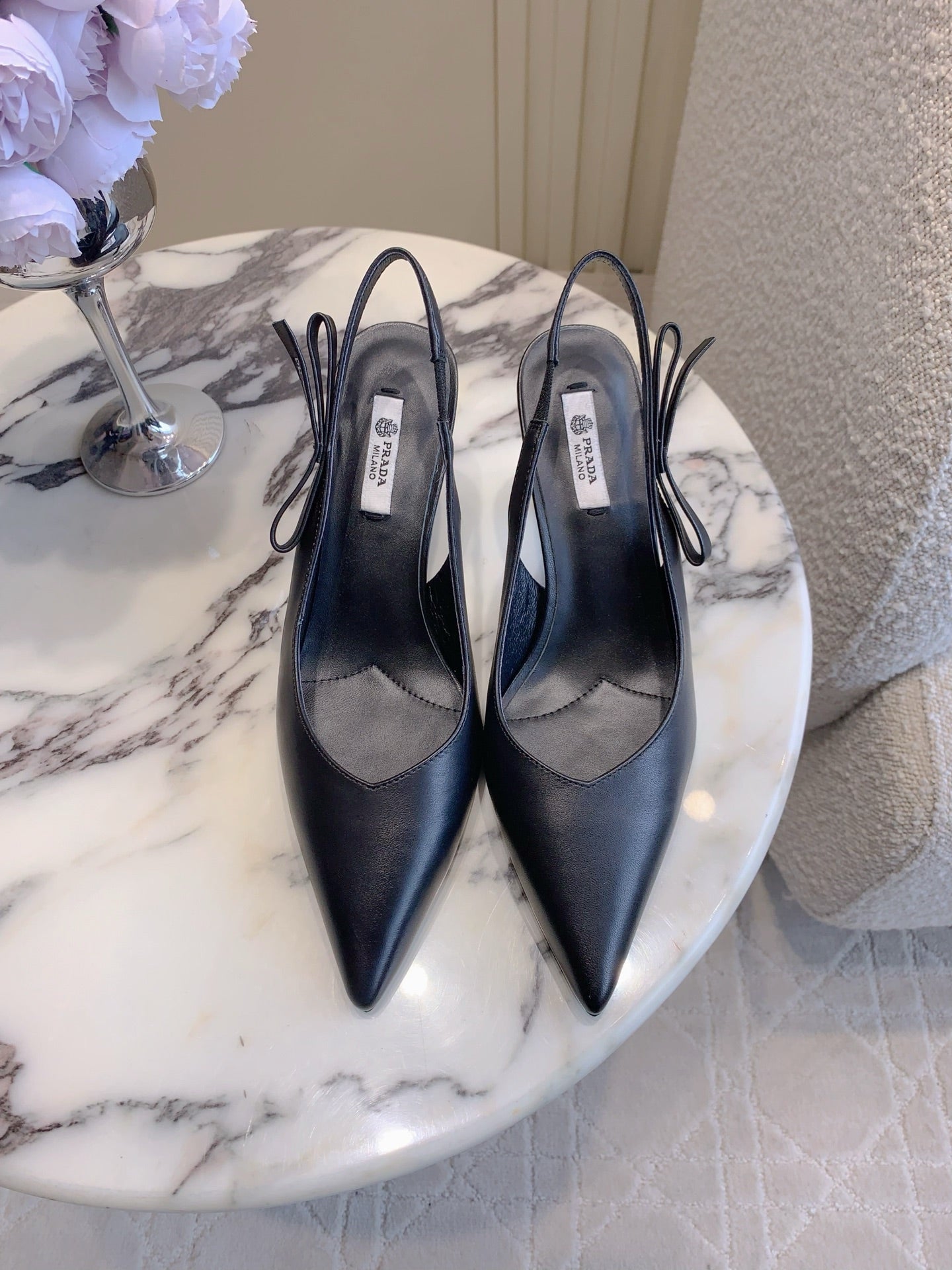 Prada 26s Open-Back High Heels Black Sheepskin 615387