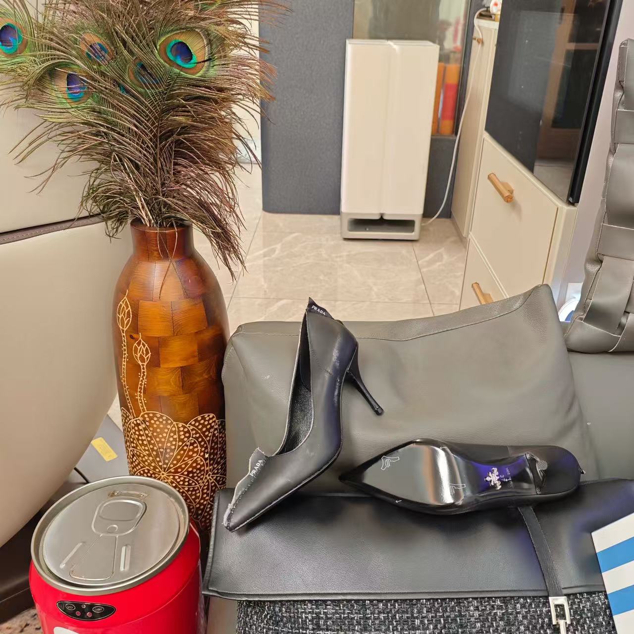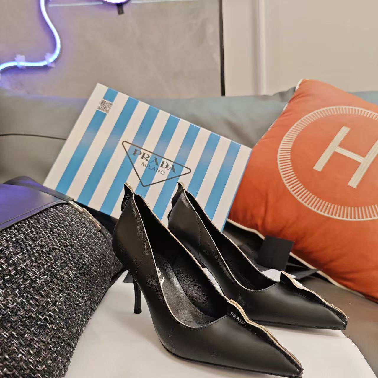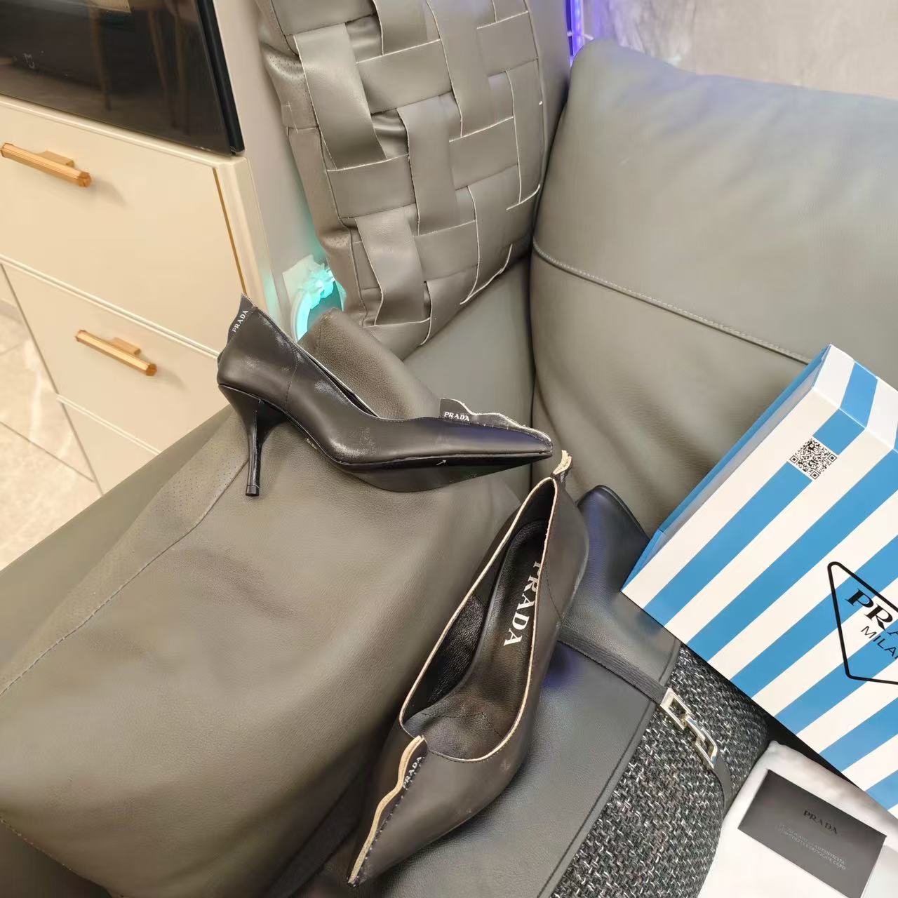 Prada Antiqued Pumps 85mm Black Tan calfskin